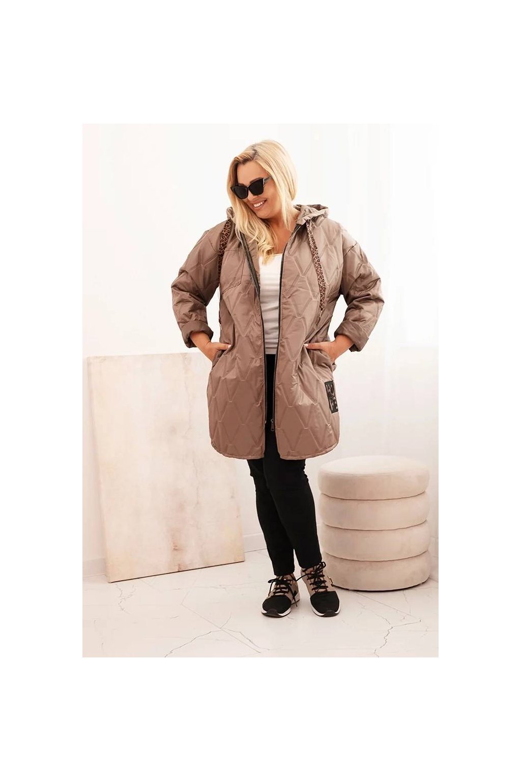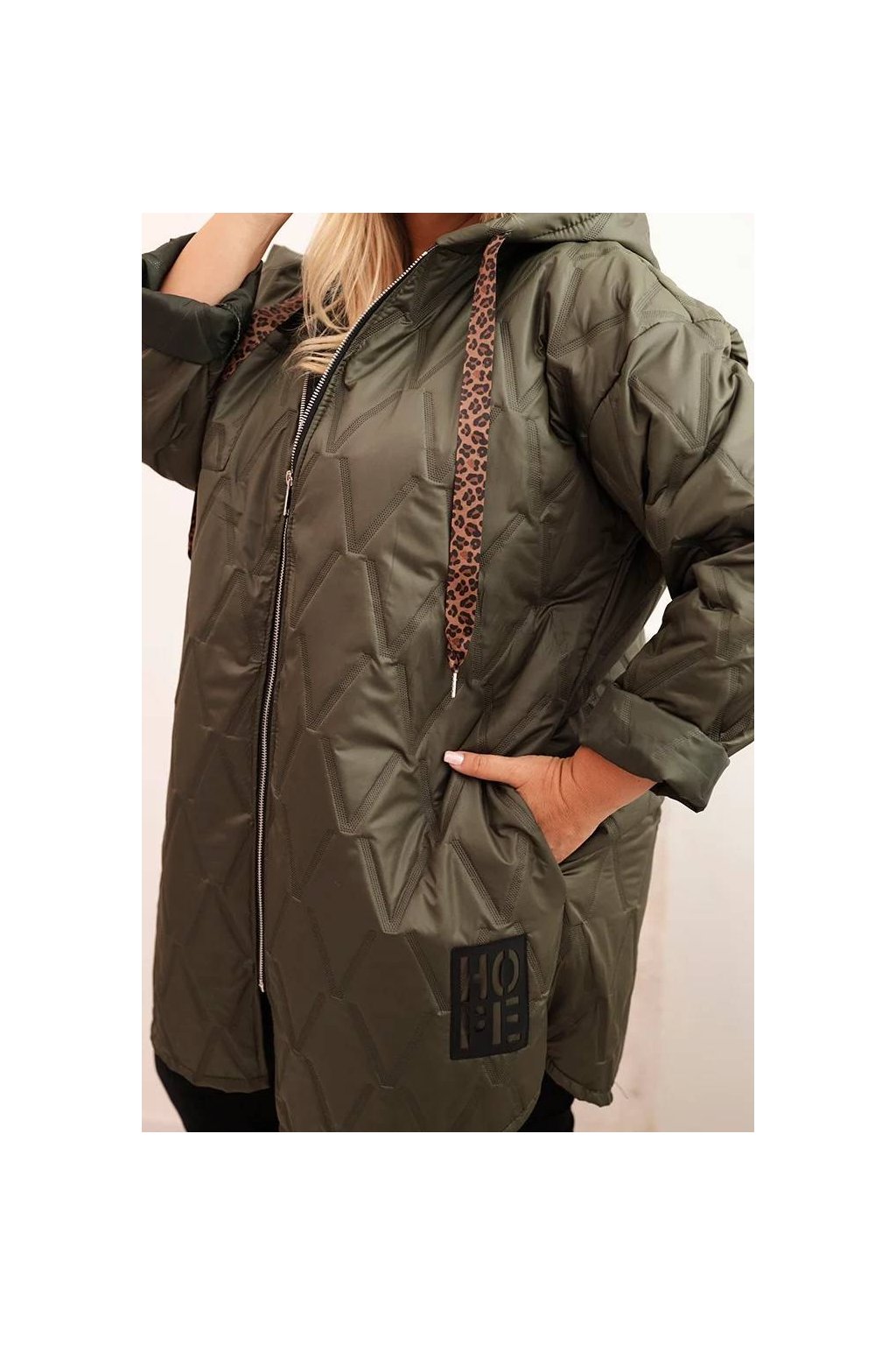 Stylová dámská prošívaná bunda ve velikosti plus size je vynikající volbou pro ženy nosící větší velikosti – od XL do 4XL. Její volný, oversized střih zajišťuje maximální komfort nošení a skvěle se přizpůsobuje postavě, neomezuje pohyb. Model se vyznačuje geometrickým prošíváním, které opticky zeštíhluje siluetu, a módní kapucí se stahovací šňůrkou v leopardím vzoru. Zip a praktická kapsa na prsou podtrhují moderní a funkční charakter bundy.
