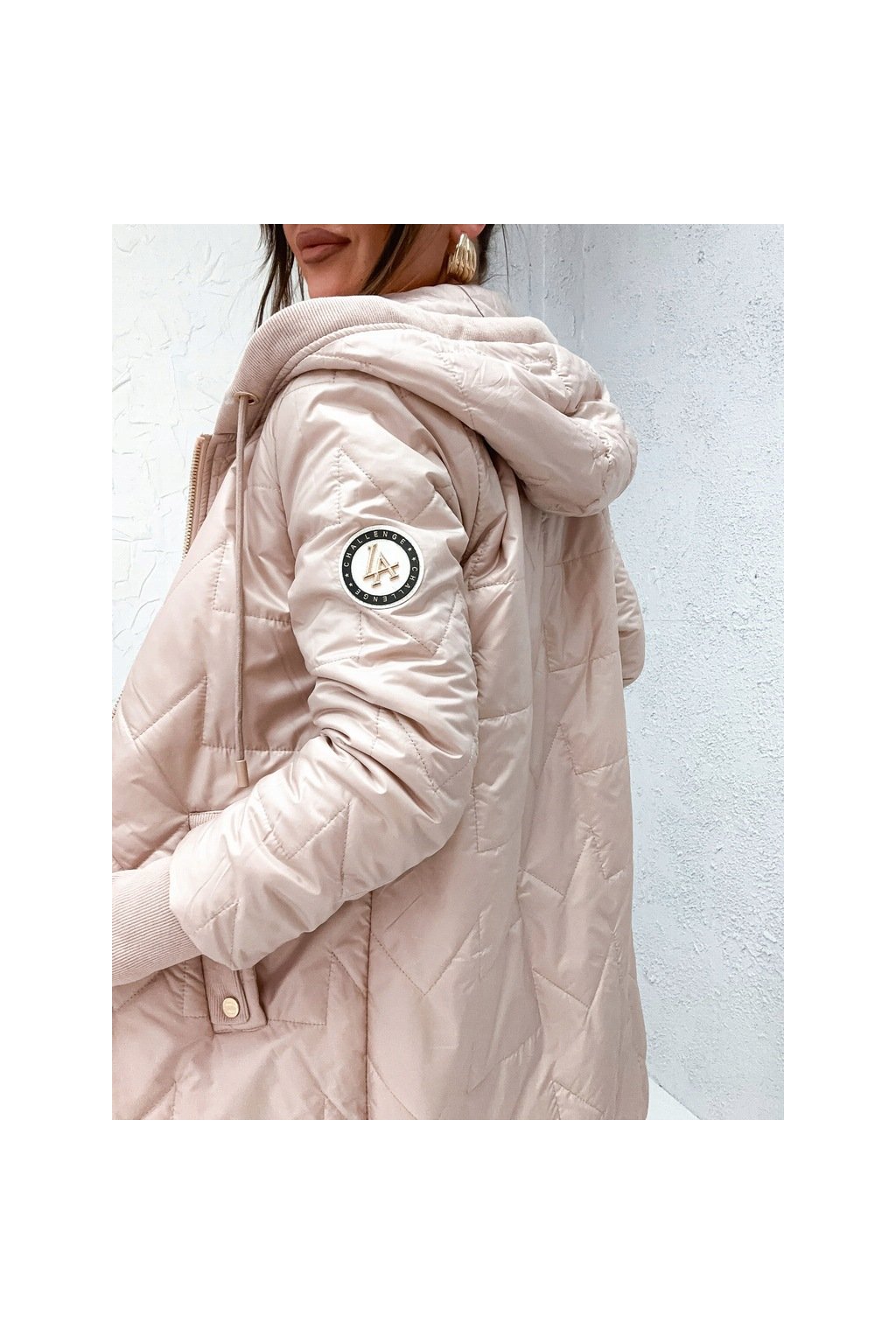 Prošívaná, asymetrická bunda s kapucí je perfektní volbou pro podzimní a zimní dny. Geometrické prošívání mu dodává jedinečný vzhled. a dlouhé rukávy s praktickými manžetami zahřejí v chladných dnech. Lemovaný model. Zapínání na zip, má kapsičky.