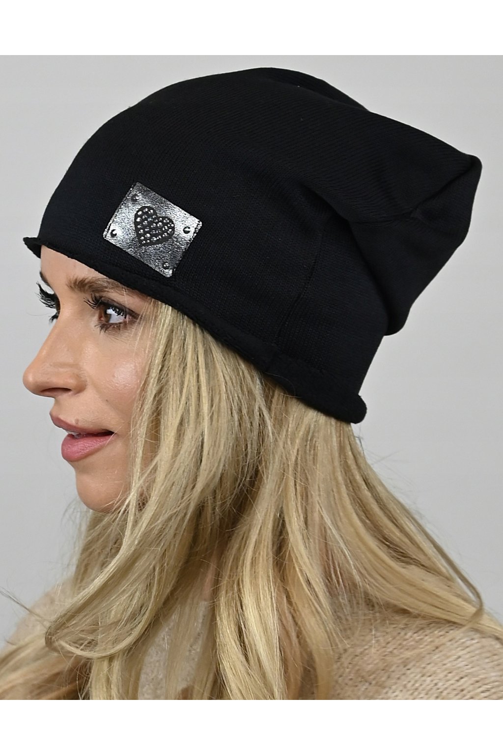 Dekorativní kovový emblém s motivem srdce dodává čepici moderní vzhled.