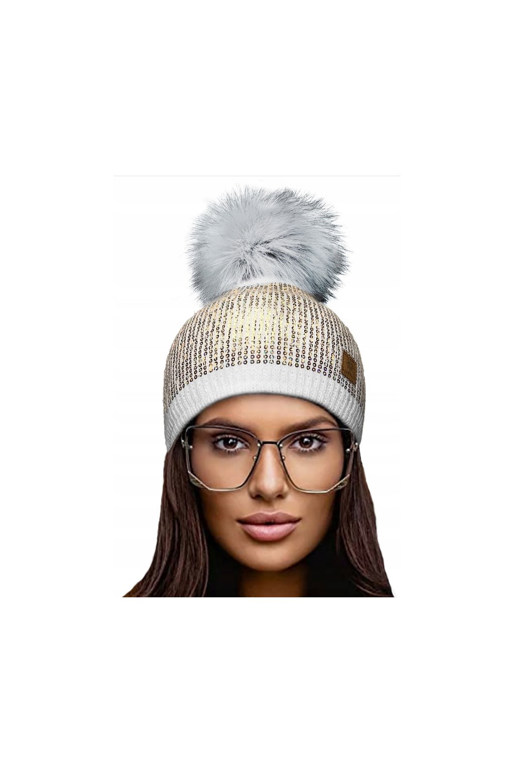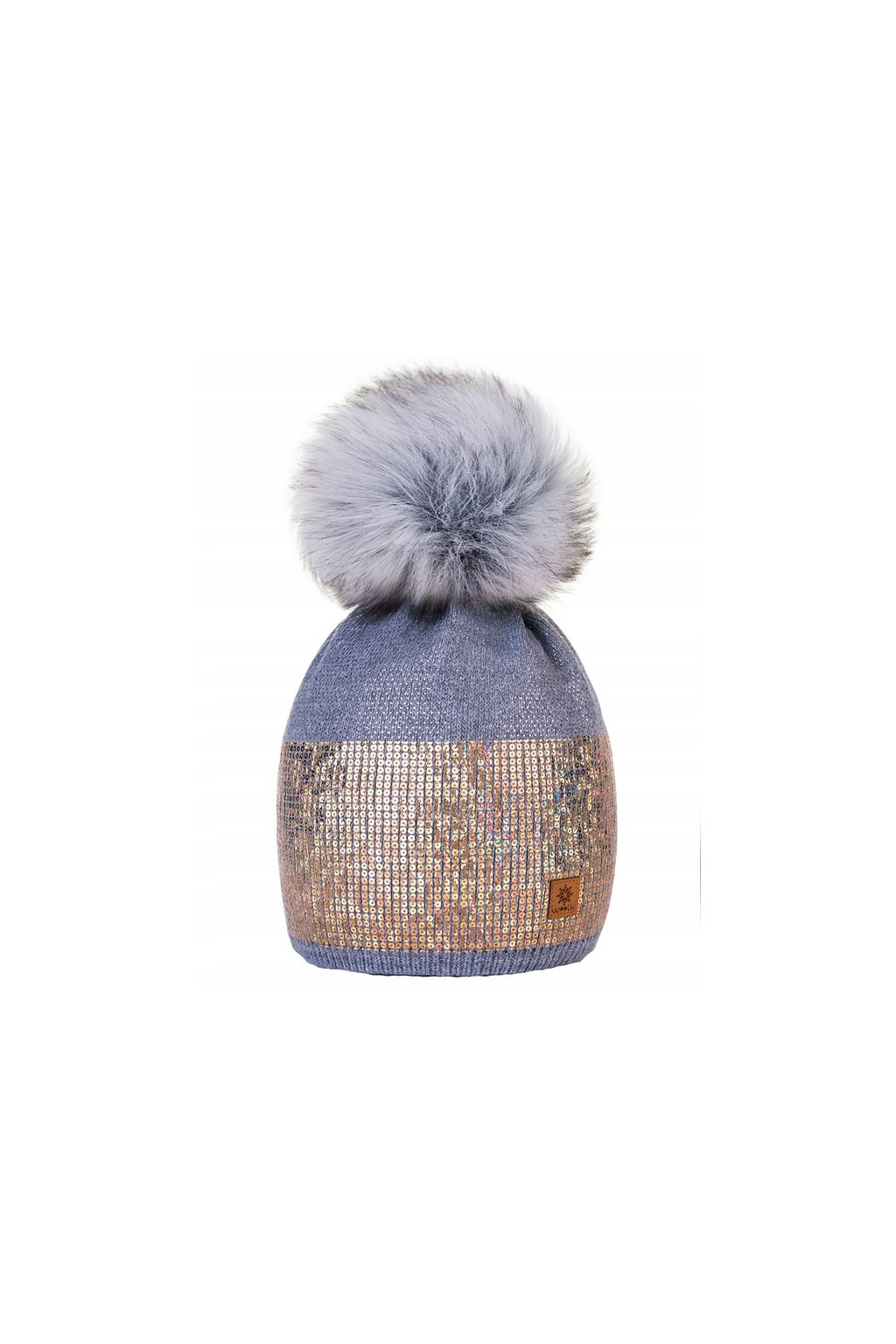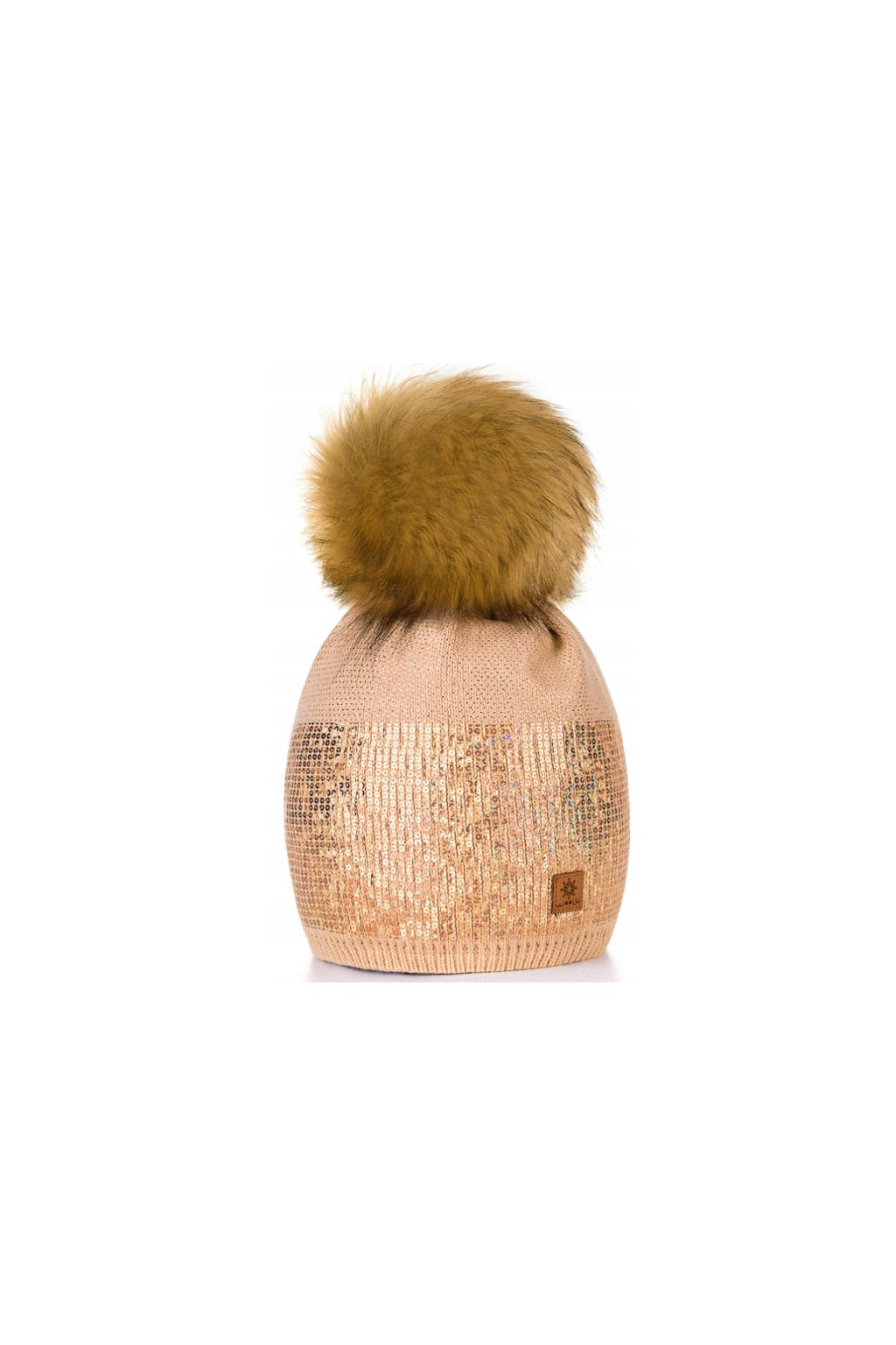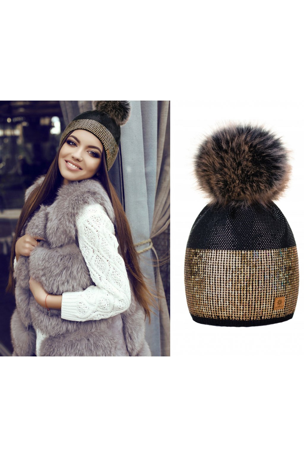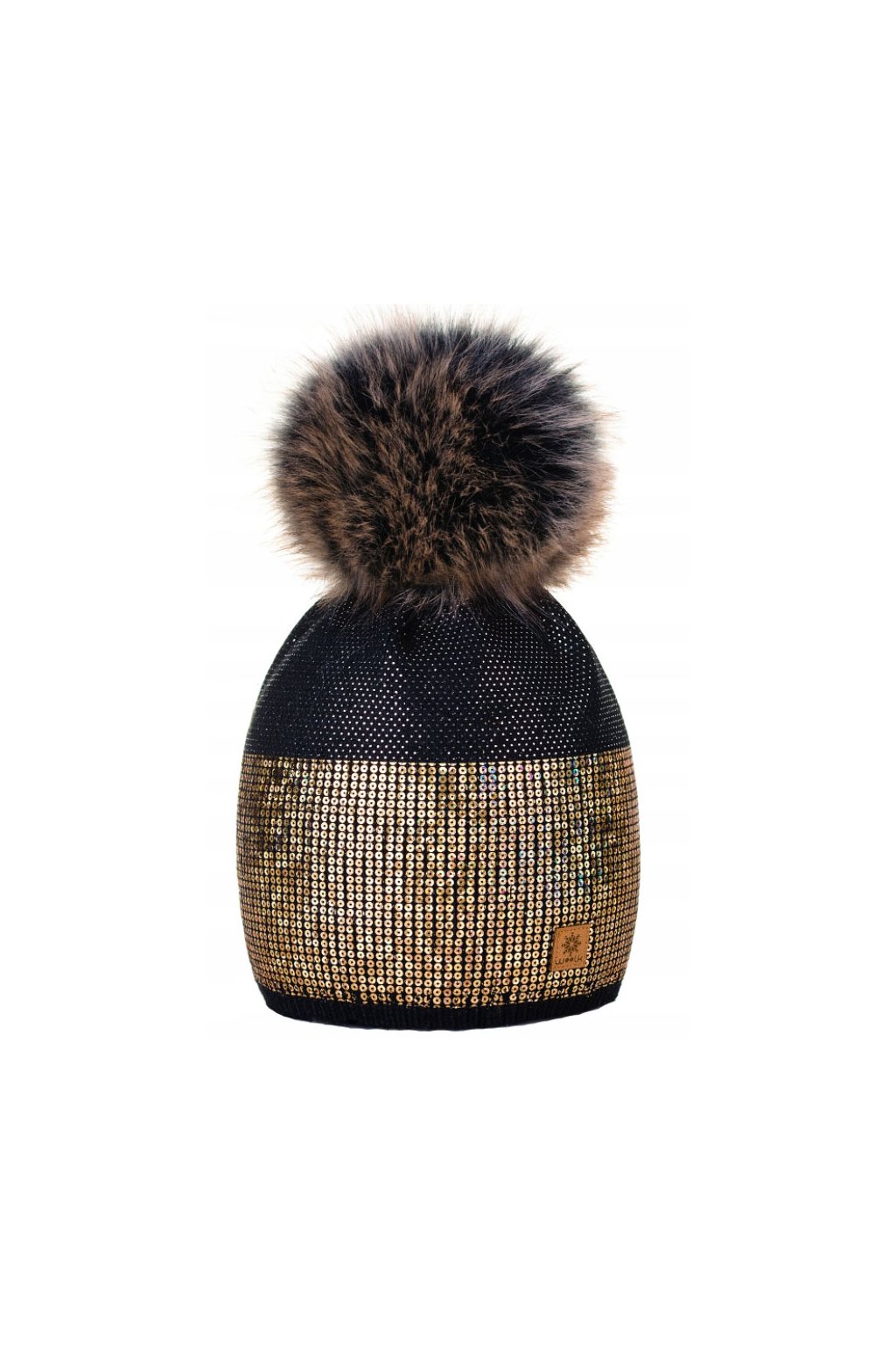 Dámská čepice Lesklá flitrová čepice bohatý styl s bambulí flísová podšívka WOOL- MONTANA