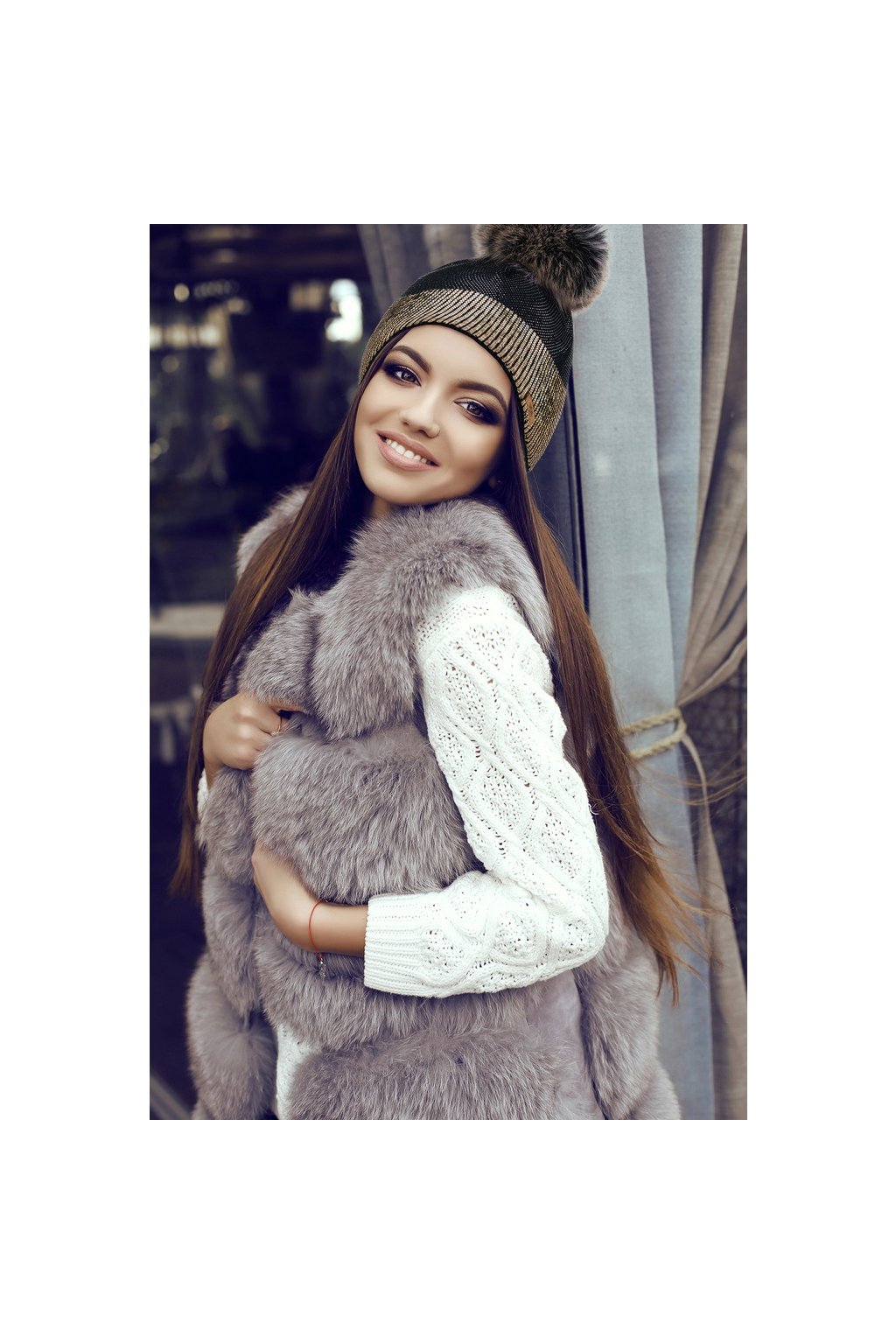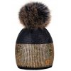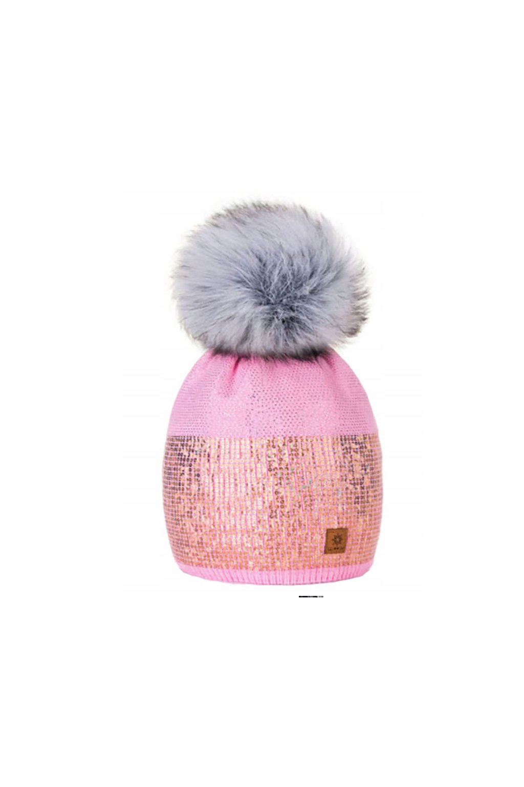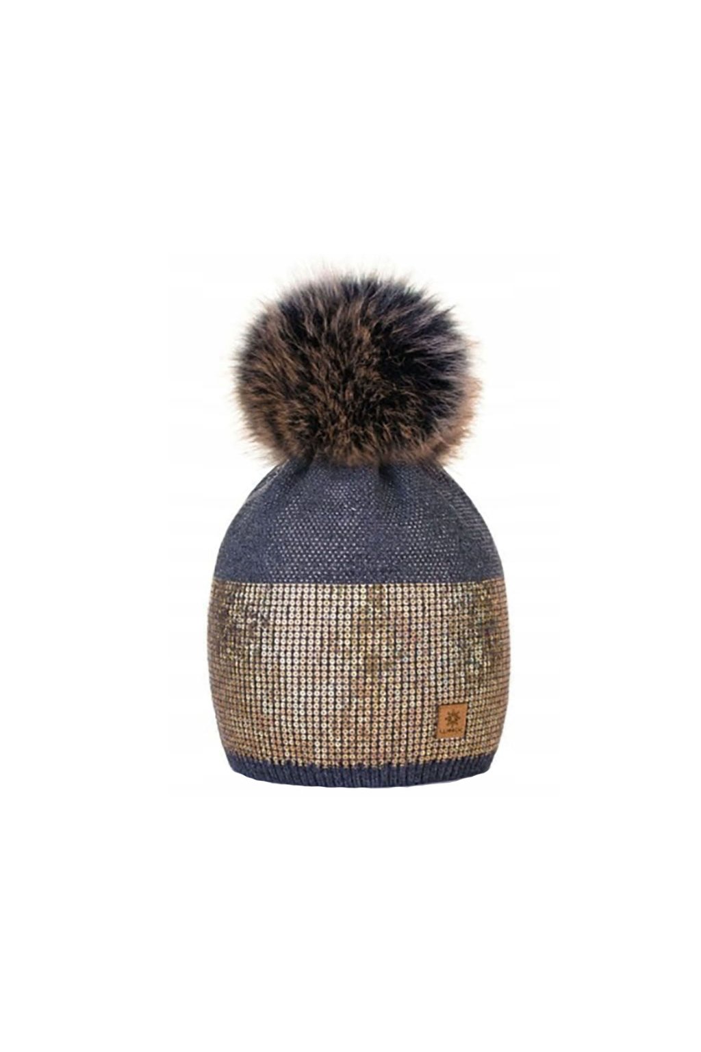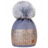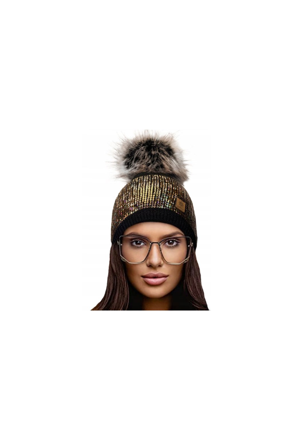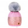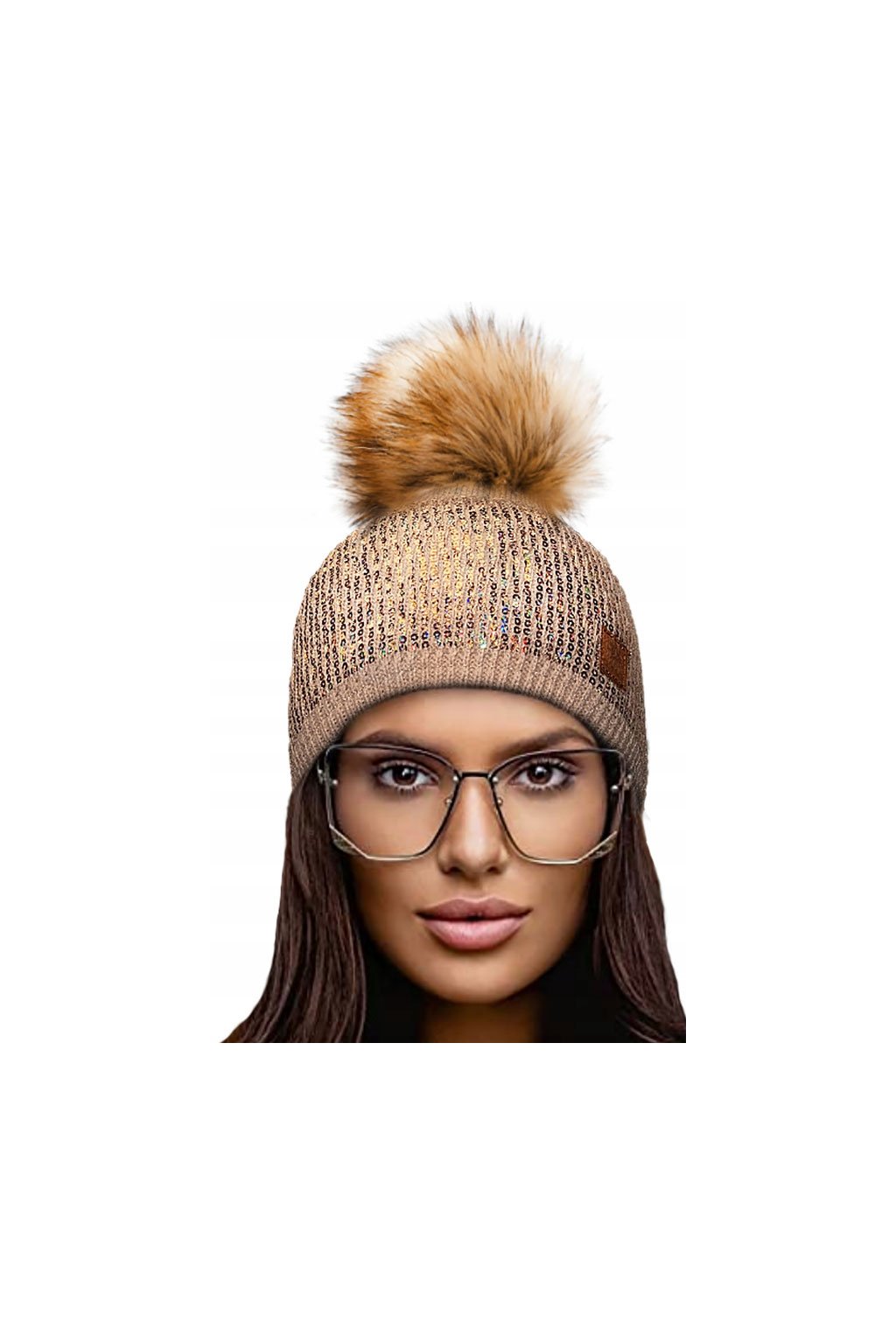 Dámská čepice Lesklá flitrová čepice bohatý styl s bambulí flísová podšívka WOOL- MONTANA
