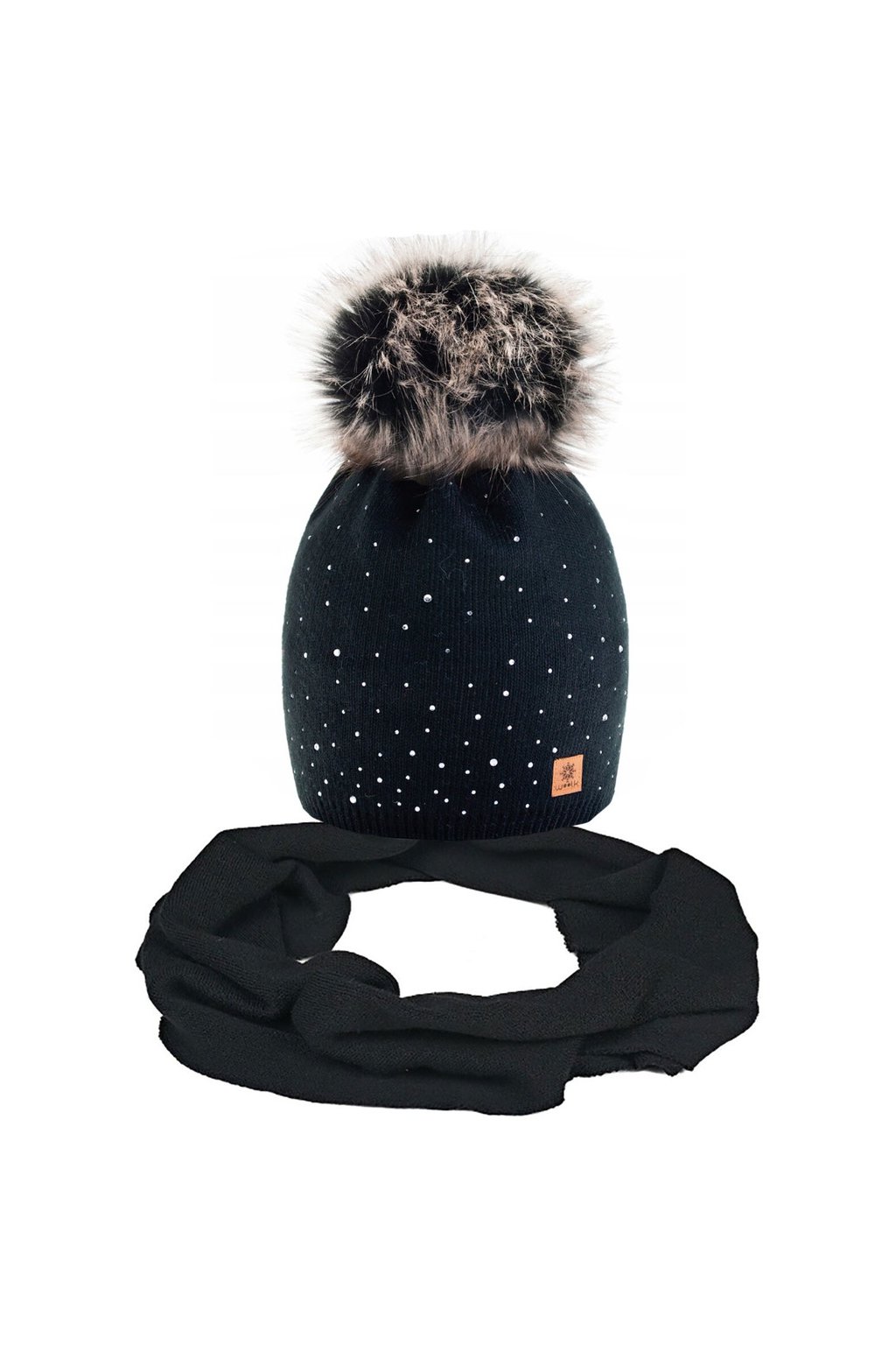 Elegantní zimní set čepice a nákrčníku VERONA je ideální volbou pro chladné dny. Čepice je zdobena jemnými kamínky, které dodávají celému modelu luxusní a ženský vzhled. Velký, nadýchaný bambule působí stylově a dodává setu moderní vzhled.