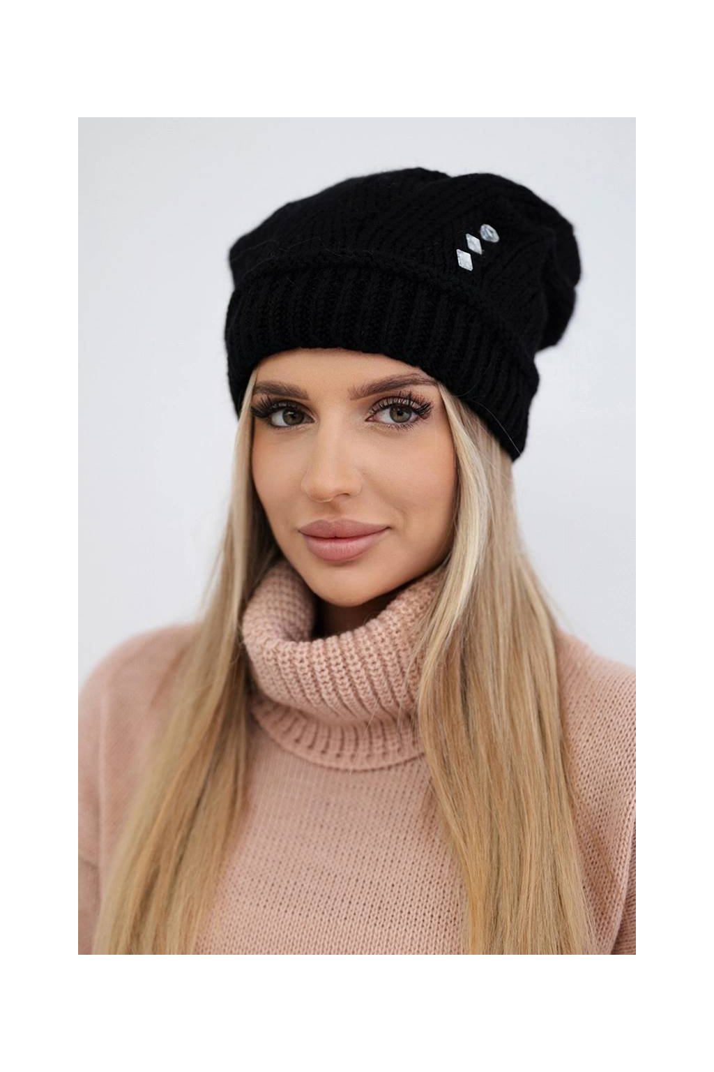 Stylová dámská zimní čepice s ozdobnými kamínky