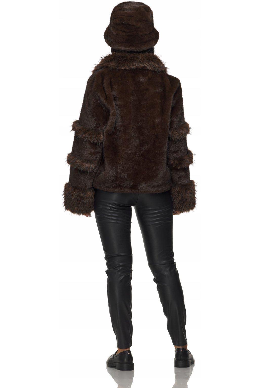 Stylová dámská čepice typu bucket hat vyrobená z měkkého, hustého a příjemného umělého kožešinového materiálu v krásném čokoládovém odstínu (tmavené konce chloupků dodávají luxusní vzhled).