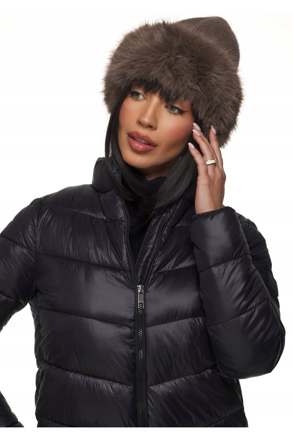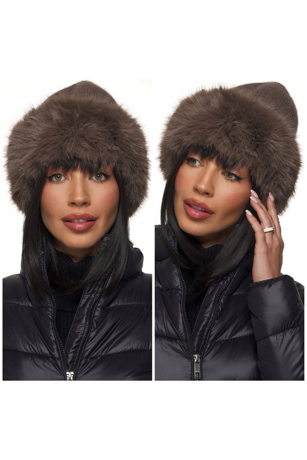 Stylová dámská zimní čepice beanie s kožešinovou podšívkou. Elegantní, hřejivá a univerzální. Skvěle ladí s šálami a kabáty z kolekce FASHIONWEEK-MODA.