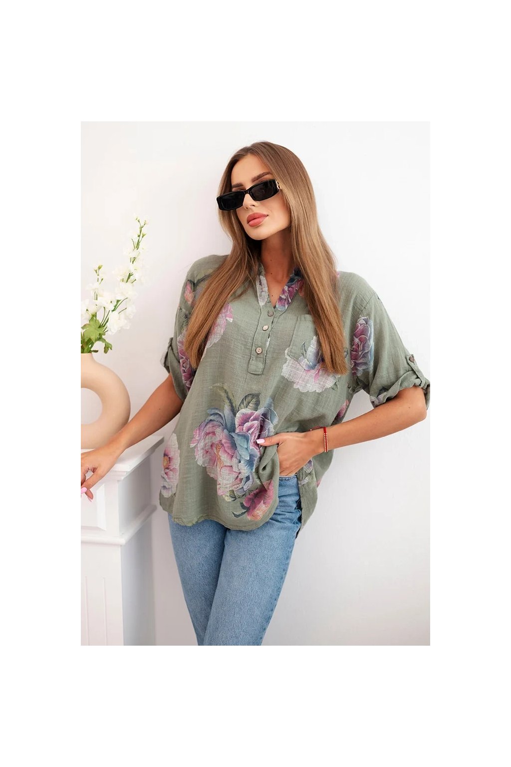Hledáte lehkou a prodyšnou halenku, která podtrhne Váš ženský styl? Tato dámská bavlněná halenka s květinovým vzorem je ideální volbou na teplé dny.