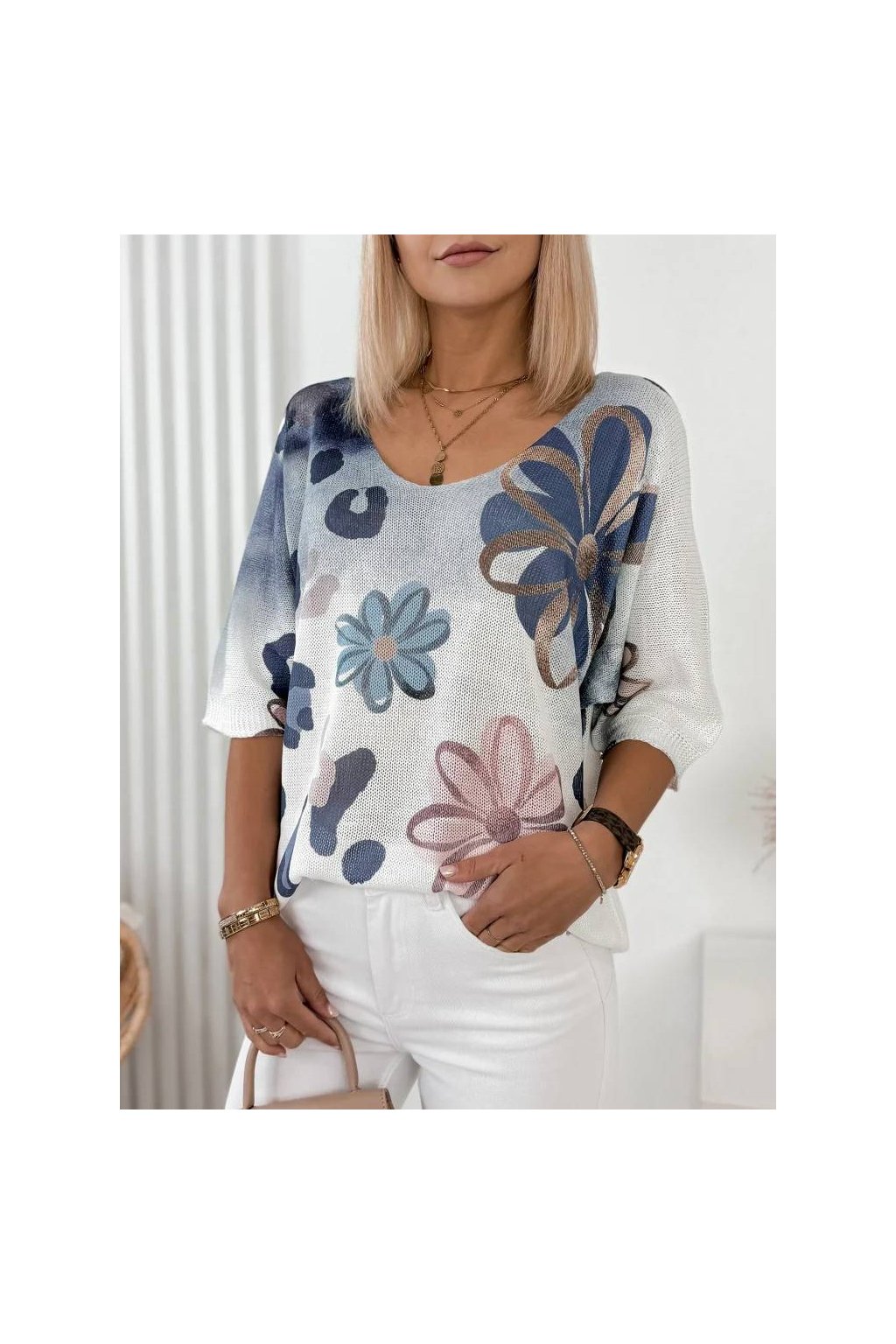 Výrazný květinový vzor dodává halence svěží, moderní vzhled a snadno oživí jakýkoliv outfit.