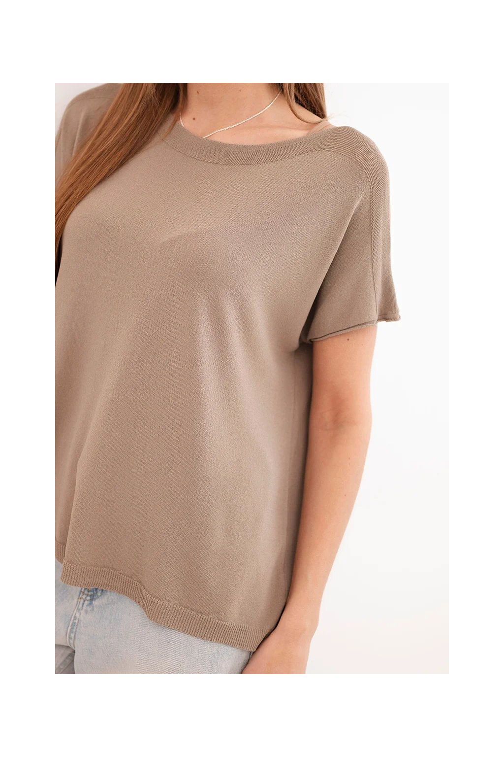 Minimalistický design v kombinaci s kvalitním materiálem zaručuje, že se halenka skvěle hodí do každodenních outfitů. Kulatý výstřih a krátké rukávy dodávají modelu lehkost a vzdušnost – perfektní na teplejší dny.