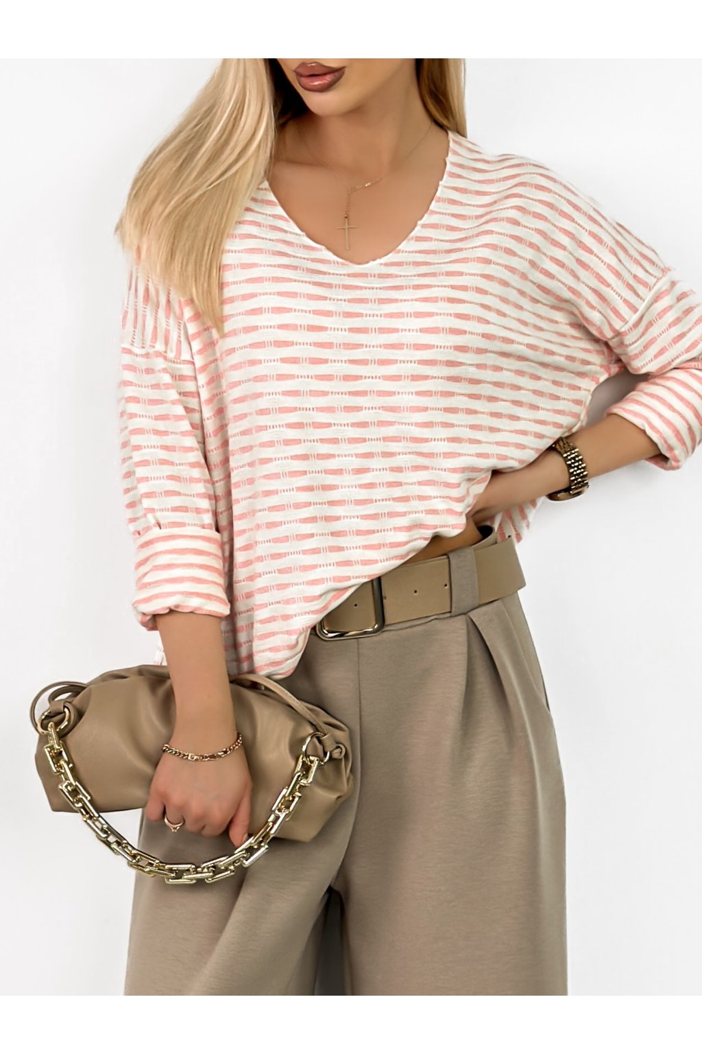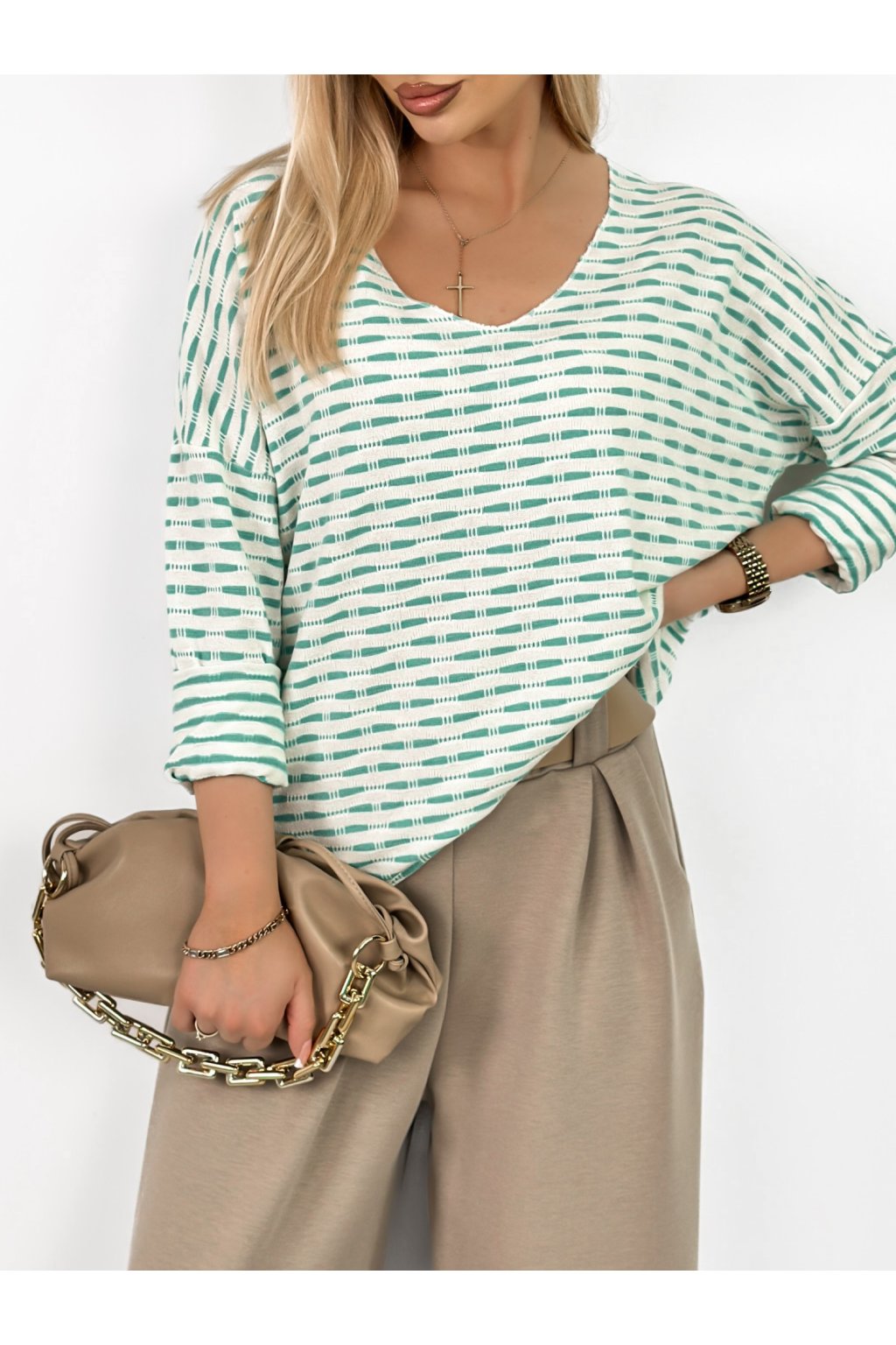 Model zaujme výstřihem do V, který opticky prodlužuje postavu a dodává ženský, elegantní vzhled. Volnější střih zajišťuje maximální komfort a lichotí různým typům postavy.