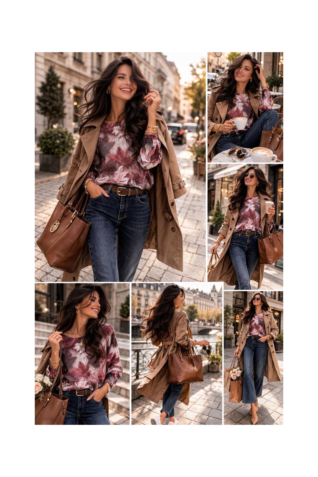 Stylový a pohodlný dámský svetr s podzimním motivem listů je ideální volbou pro každodenní nošení.