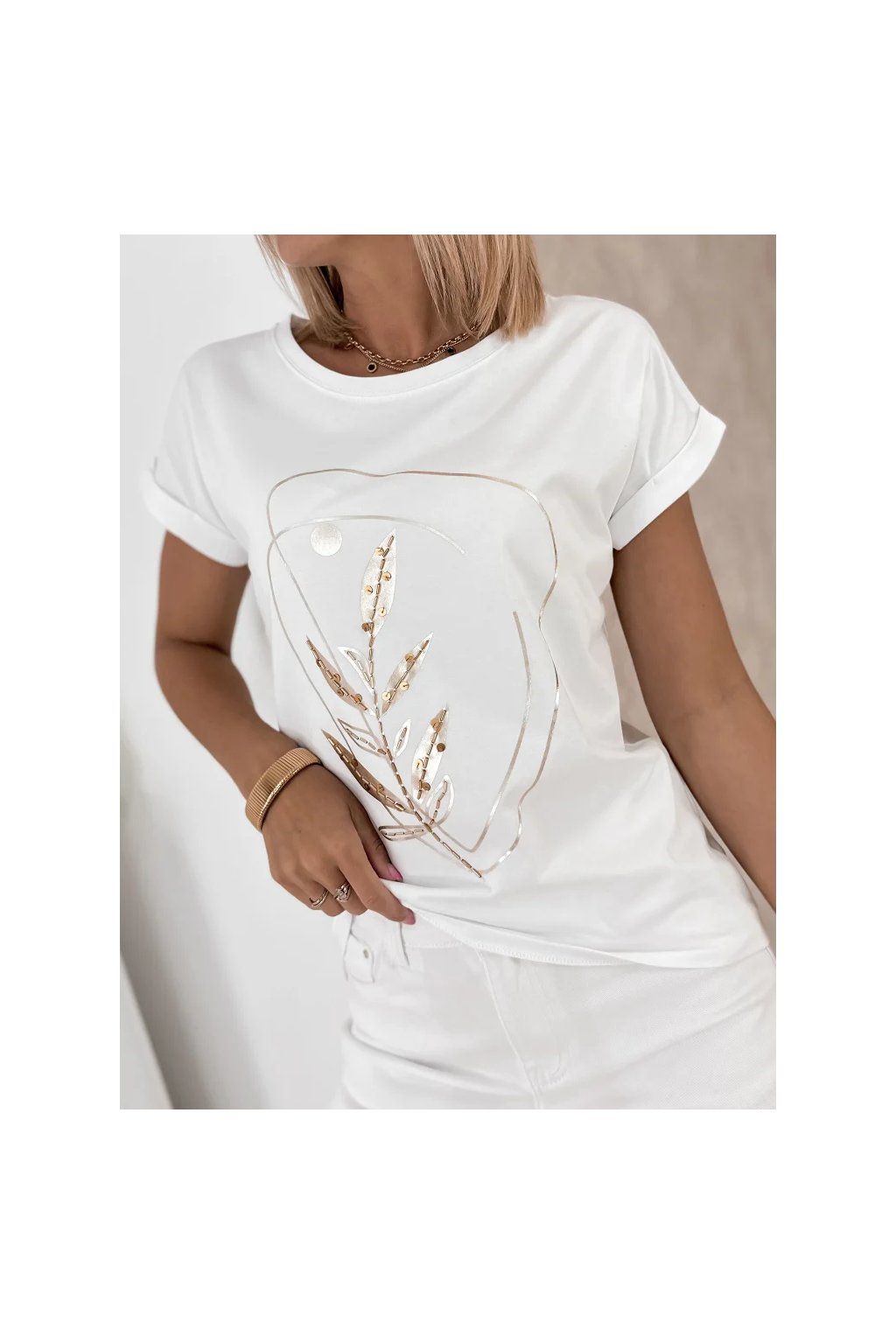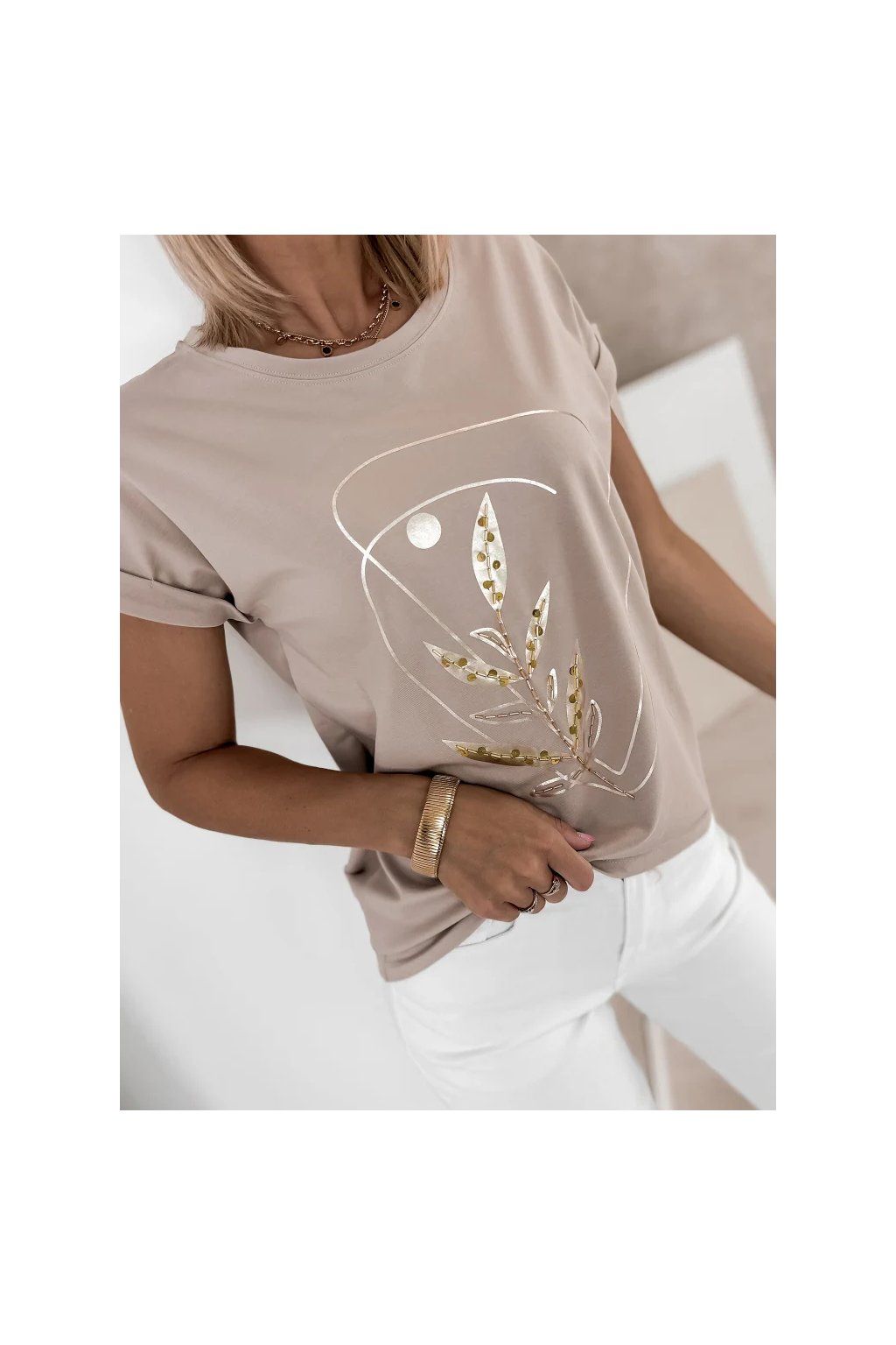 Elegantní dámské triko je ideální volbou pro každodenní outfity v moderním minimalistickém stylu. Decentní potisk s přírodním motivem dodává modelu sofistikovaný vzhled a snadno jej zkombinujete s džínami i elegantními kousky.
