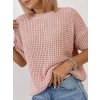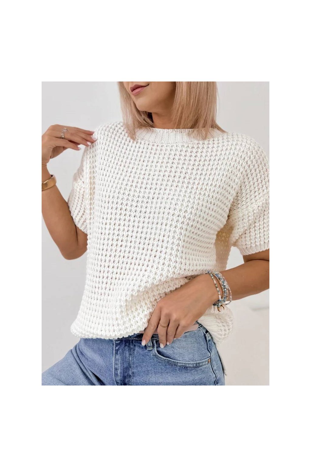 Dámský pletený svetr s krátkým rukávem je stylovým a pohodlným kouskem pro každodenní nošení. Volný střih zajišťuje maximální komfort a krásně se přizpůsobí postavě. Jemná pletená struktura dodává svetru moderní vzhled, zatímco kulatý výstřih působí nadčasově a univerzálně.
