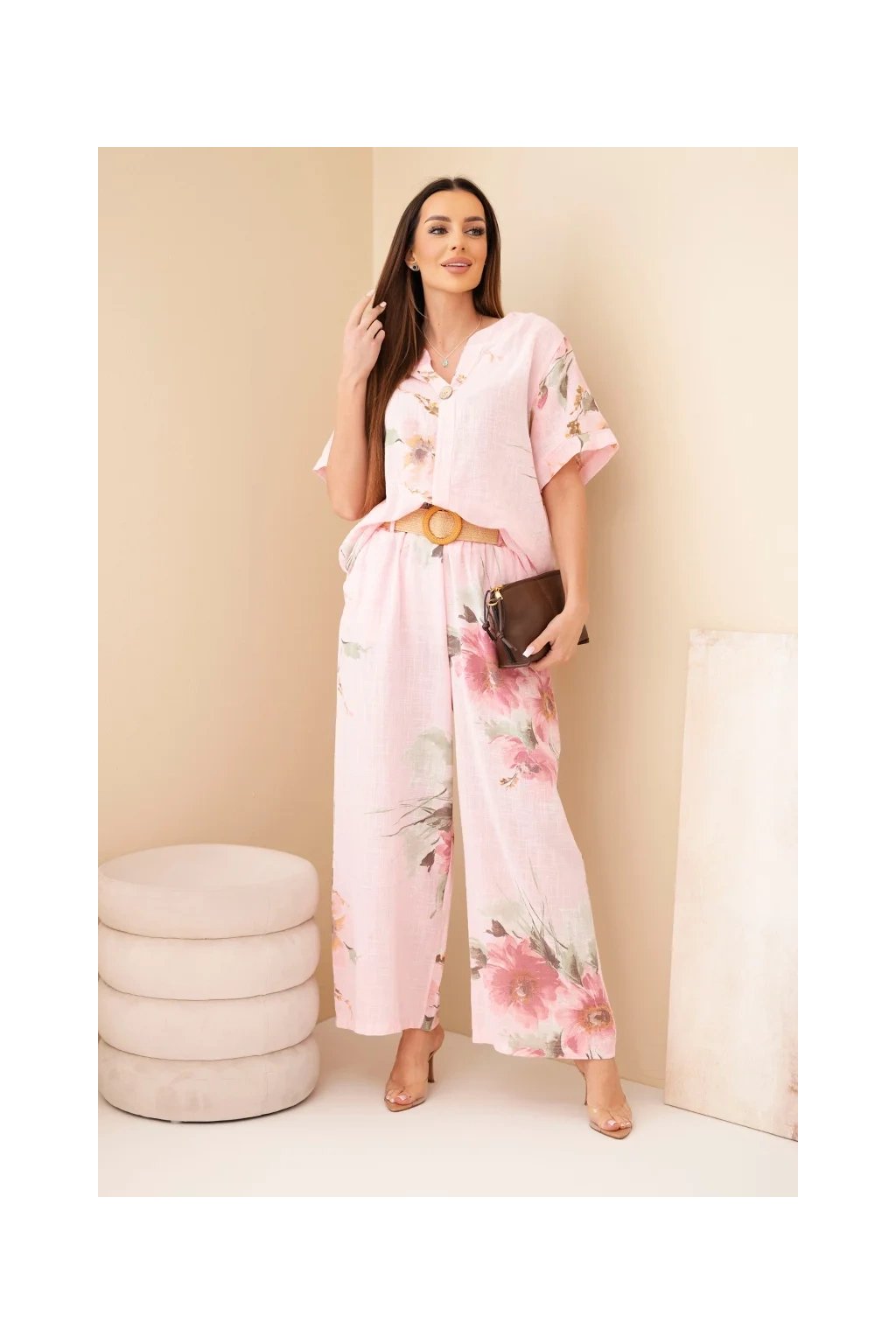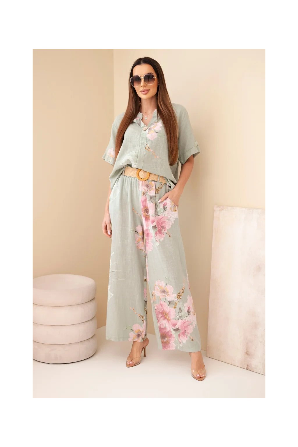 Součástí kompletu je také pásek, který krásně zvýrazní pas a dodá celému outfitu stylový vzhled.