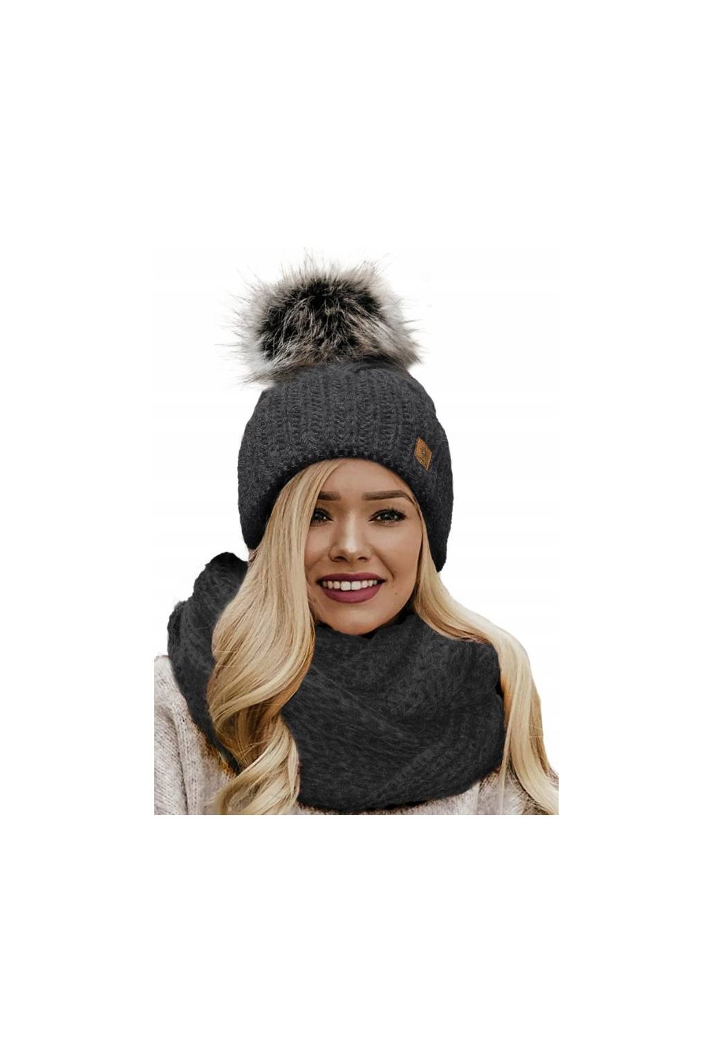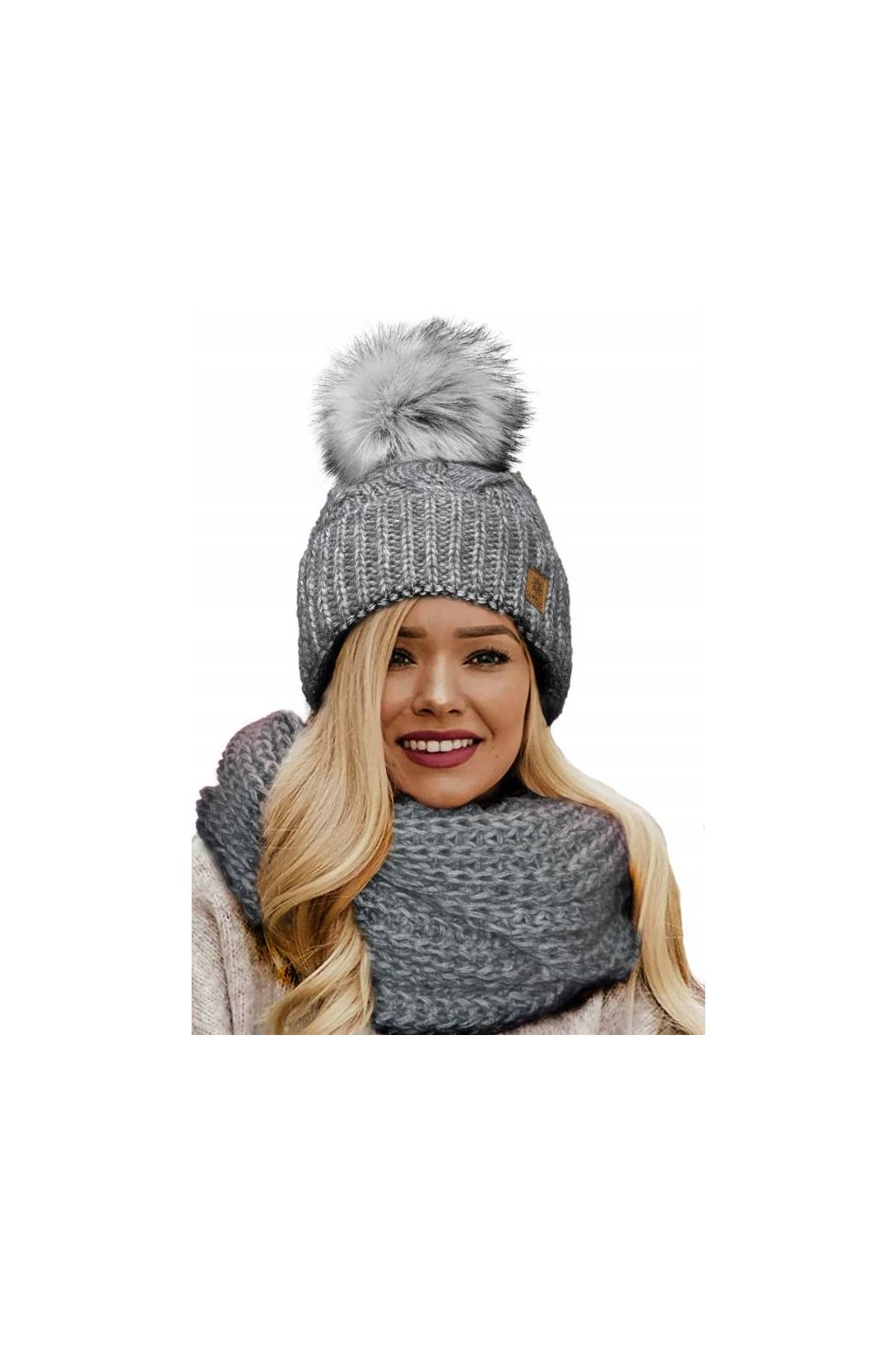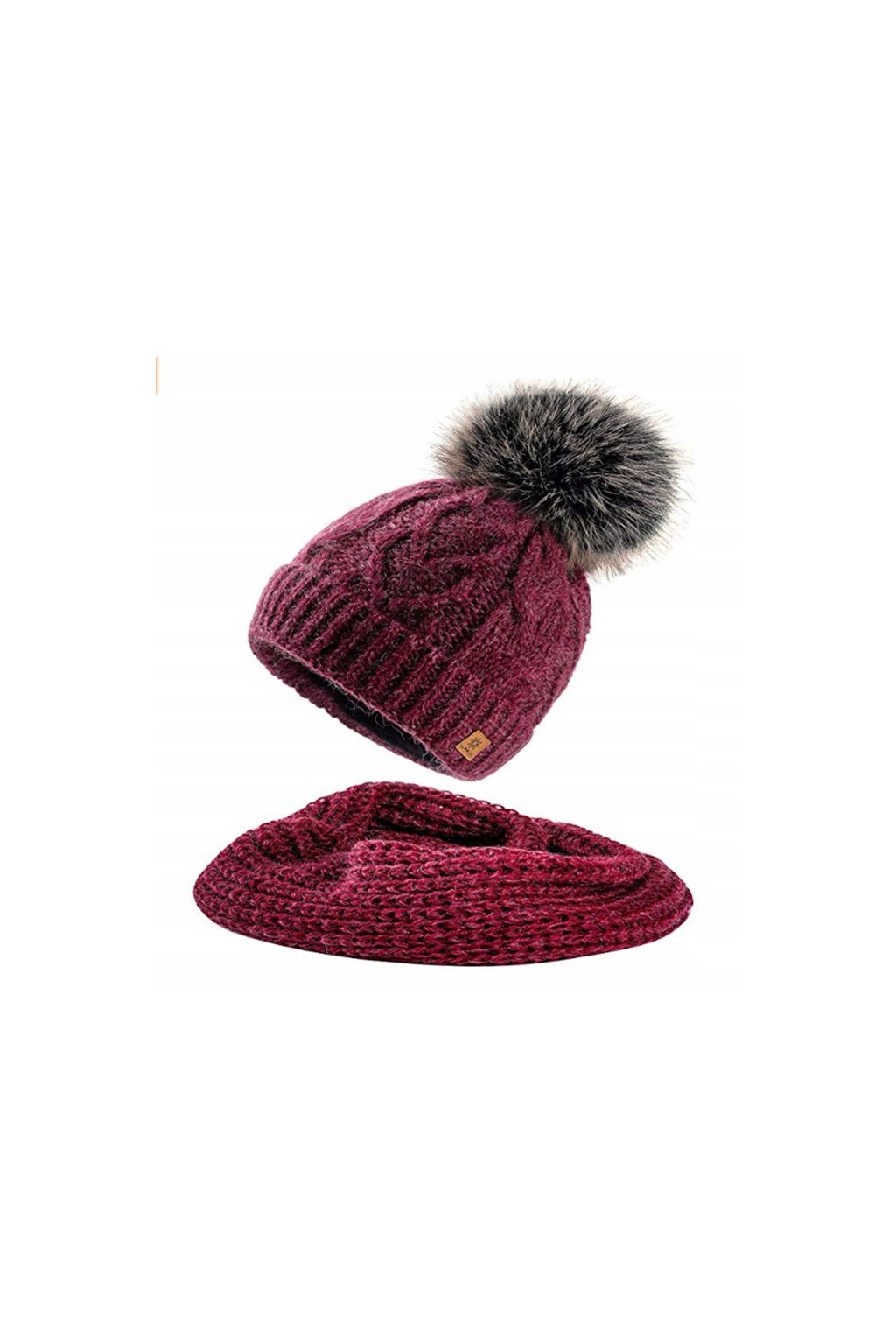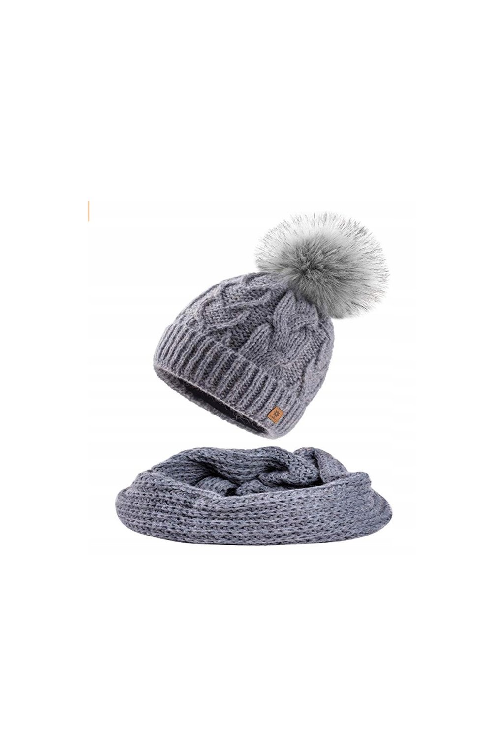 Pletená čepice je doplněna stylovou bambulí ze syntetické kožešiny a uvnitř má měkkou mikroplyšovou (mikropolarovou) opasku, která zajišťuje maximální tepelný komfort. Komín krásně ladí s čepicí a chrání krk před chladem a větrem.