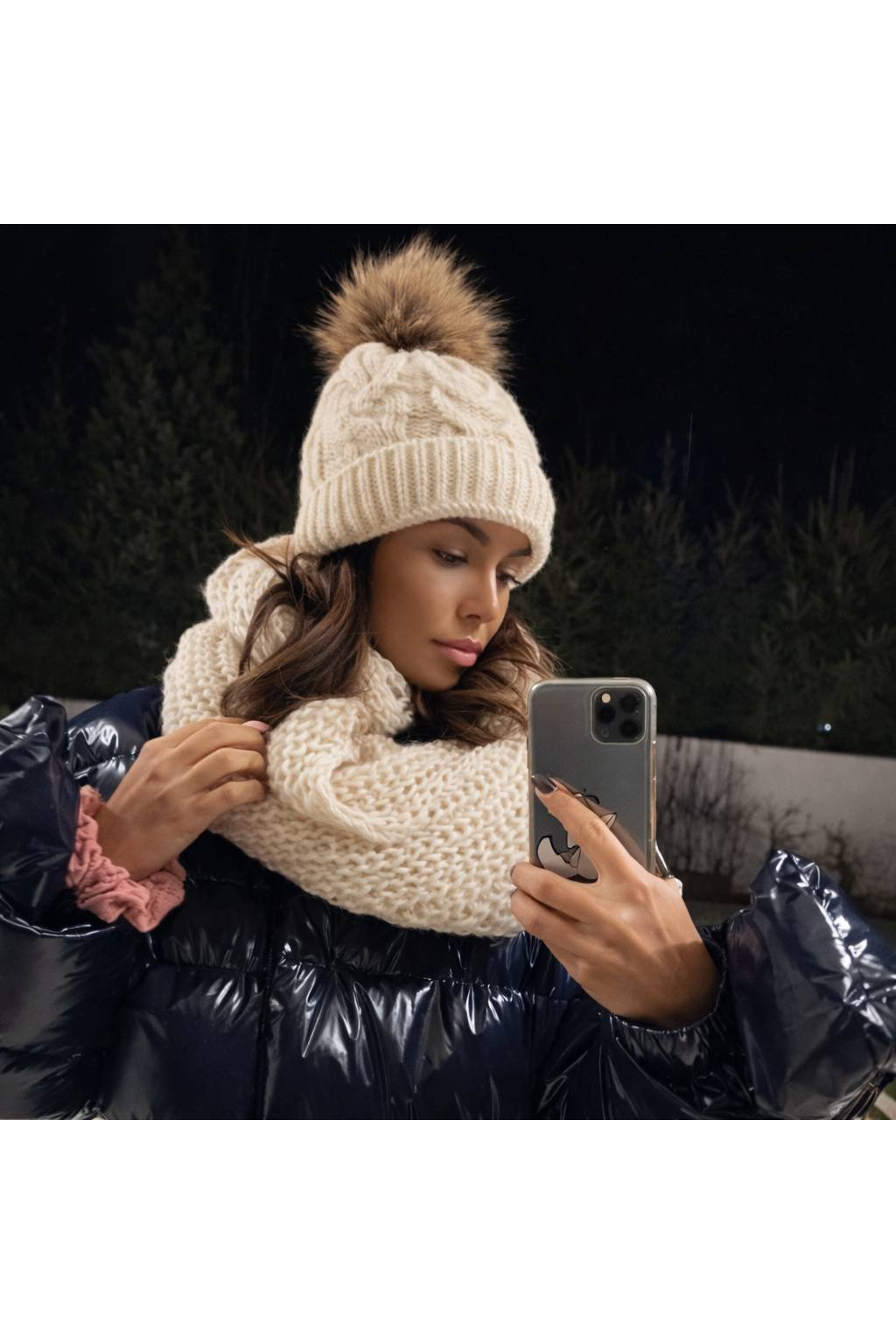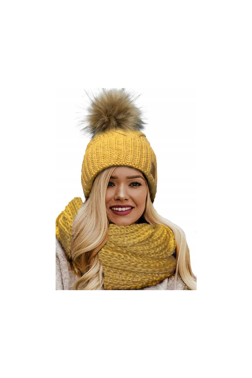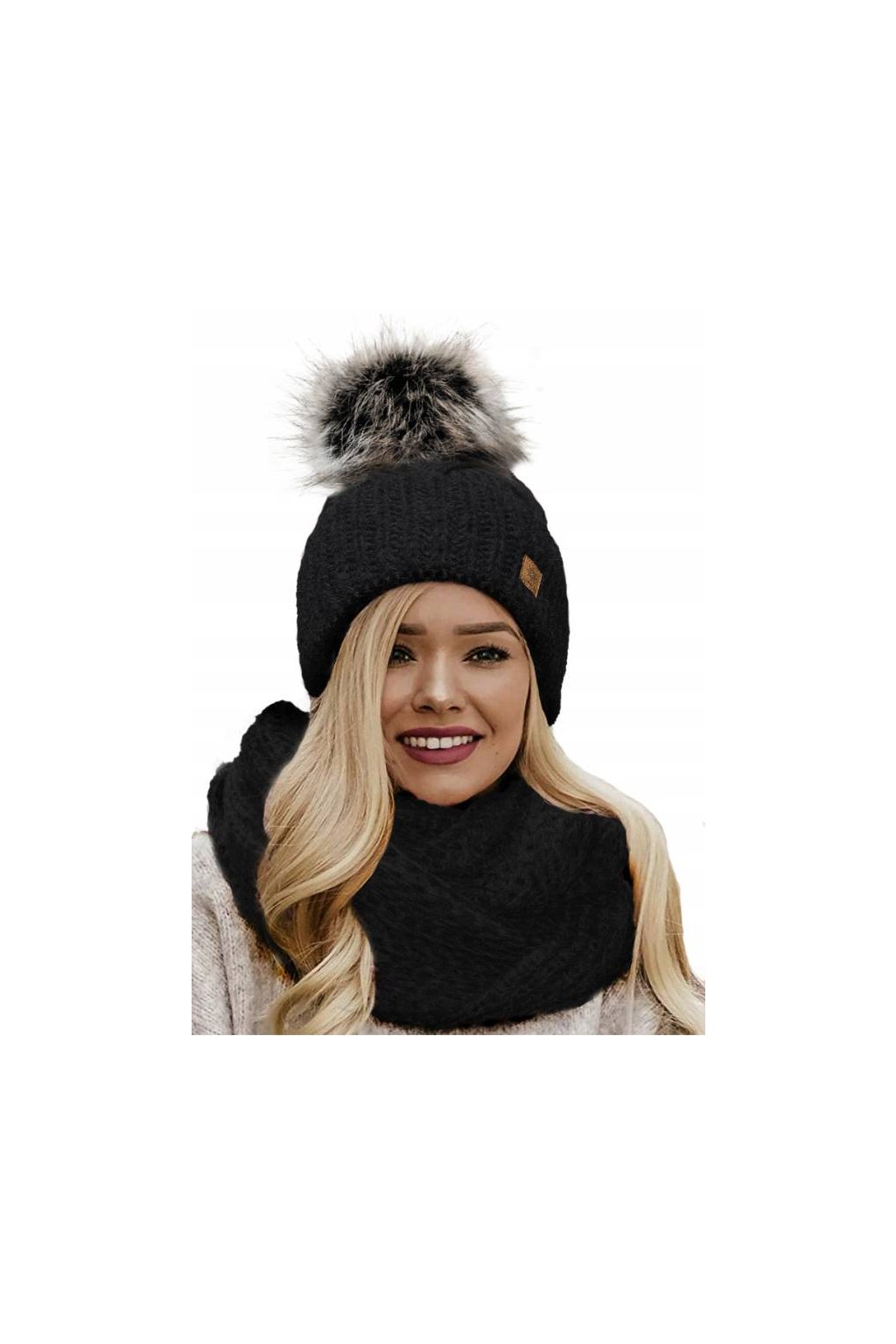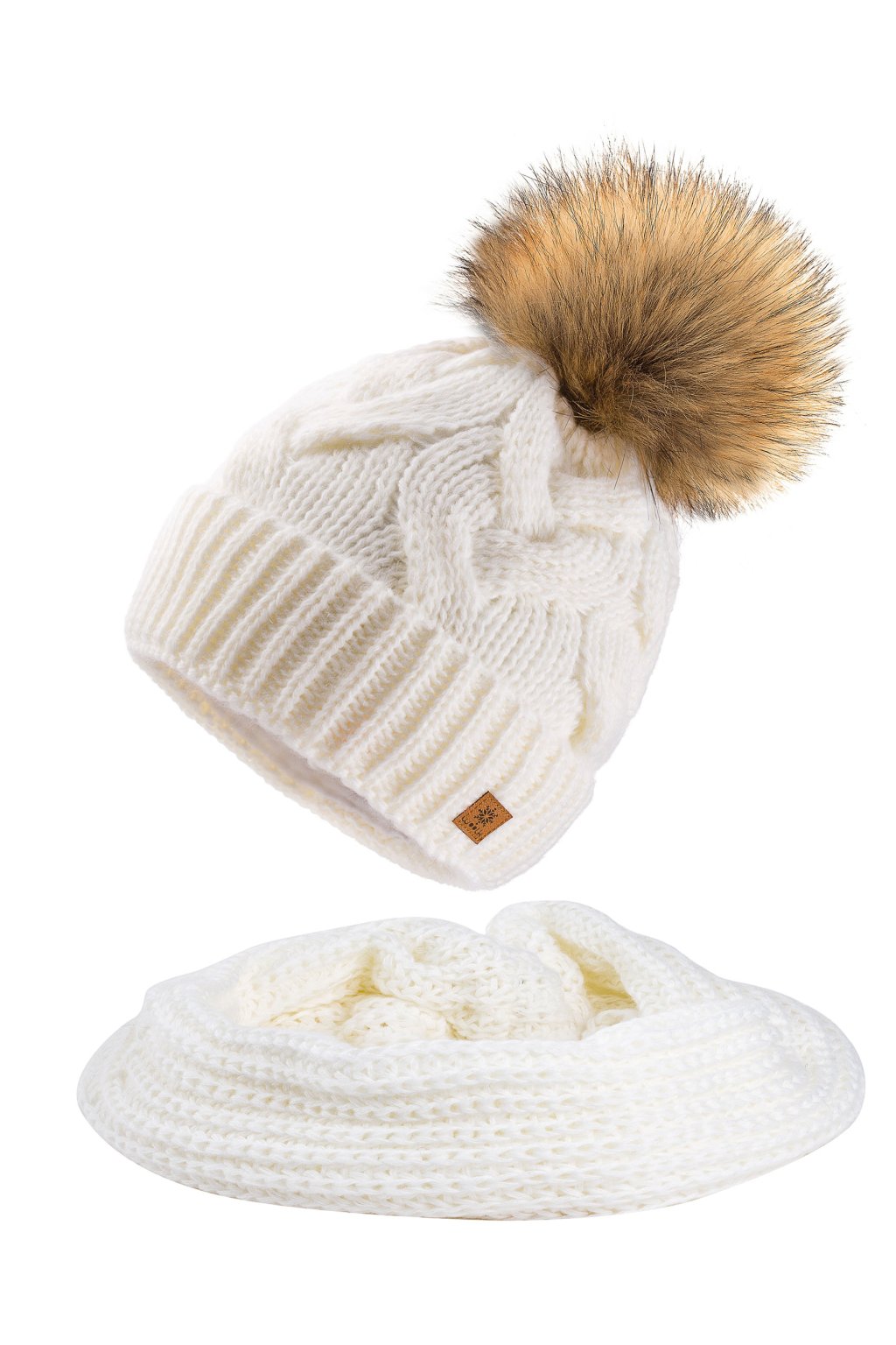 Pletená čepice je doplněna stylovou bambulí ze syntetické kožešiny a uvnitř má měkkou mikroplyšovou (mikropolarovou) opasku, která zajišťuje maximální tepelný komfort. Komín krásně ladí s čepicí a chrání krk před chladem a větrem.
