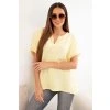 Volnější oversize střih krásně splývá na postavě a umožňuje snadné kombinování – skvěle se hodí k džínám, šortkám i sukni.