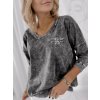 Dámská halenka ležérního střihu z kvalitního příjemného materiálu. Model s výstřihem do V . Je klasického, mírně asymetrického střihu s dlouhými rukávy.