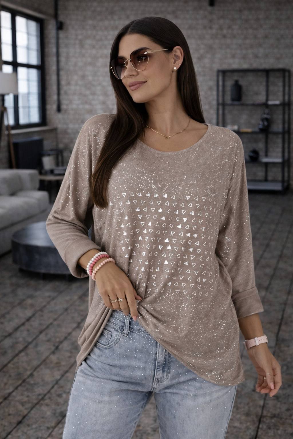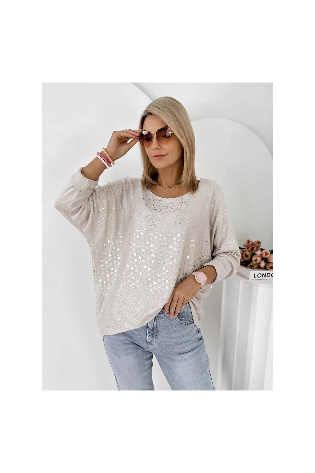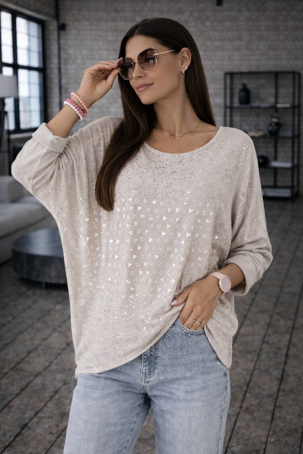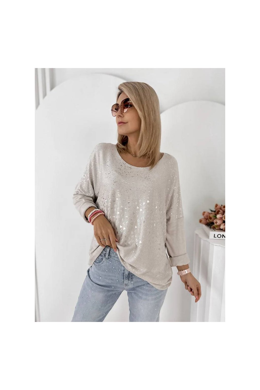 Stylová dámská halenka v oversize střihu, která zaujme jemným potiskem a decentním leskem. Volný střih poskytuje maximální pohodlí a krásně se přizpůsobí různým typům postav.