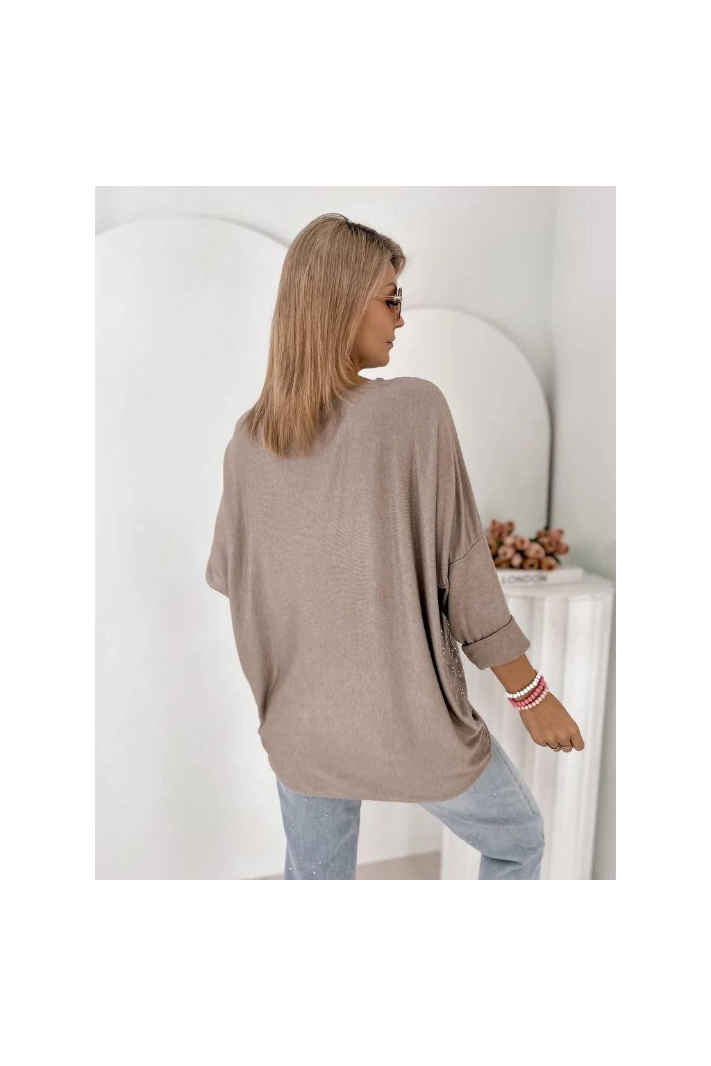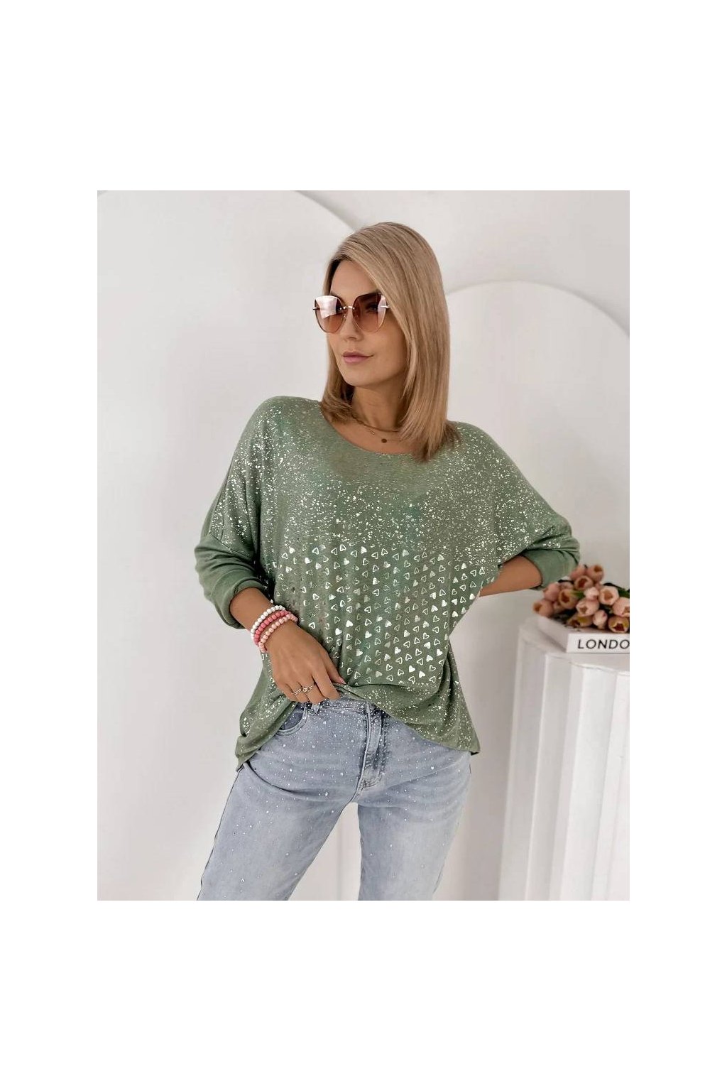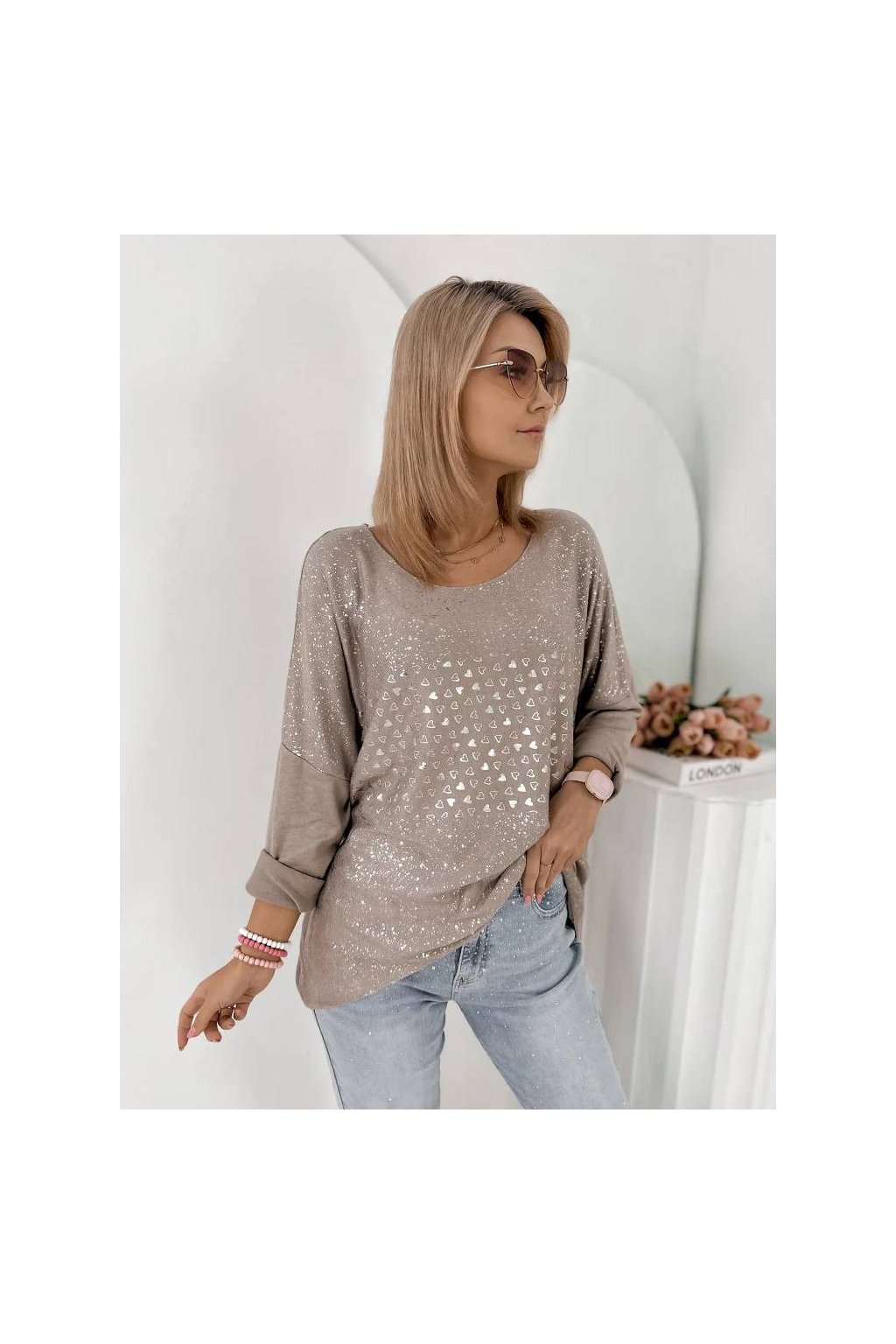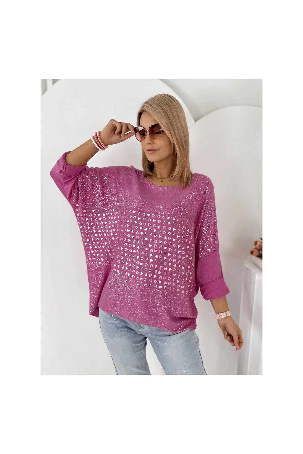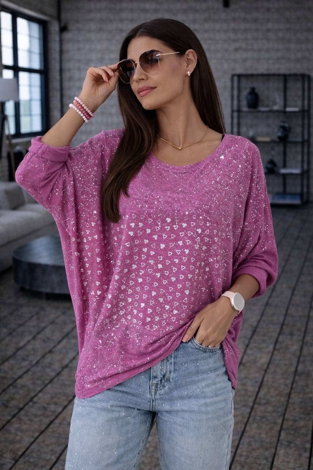 Stylová dámská halenka v oversize střihu, která zaujme jemným potiskem a decentním leskem. Volný střih poskytuje maximální pohodlí a krásně se přizpůsobí různým typům postav.
