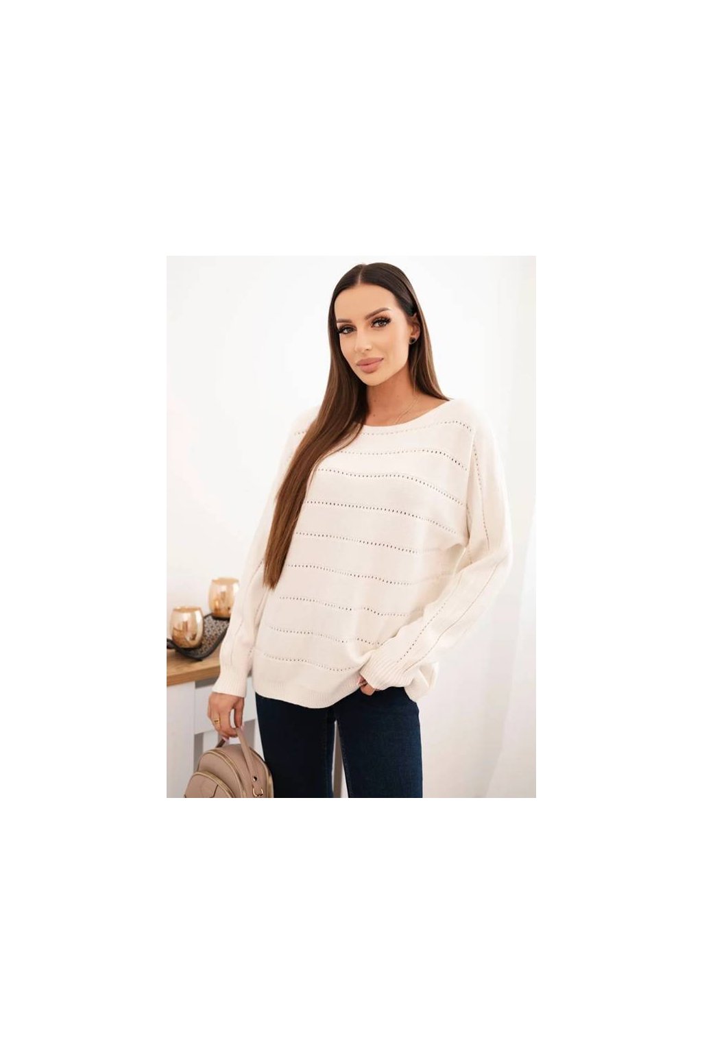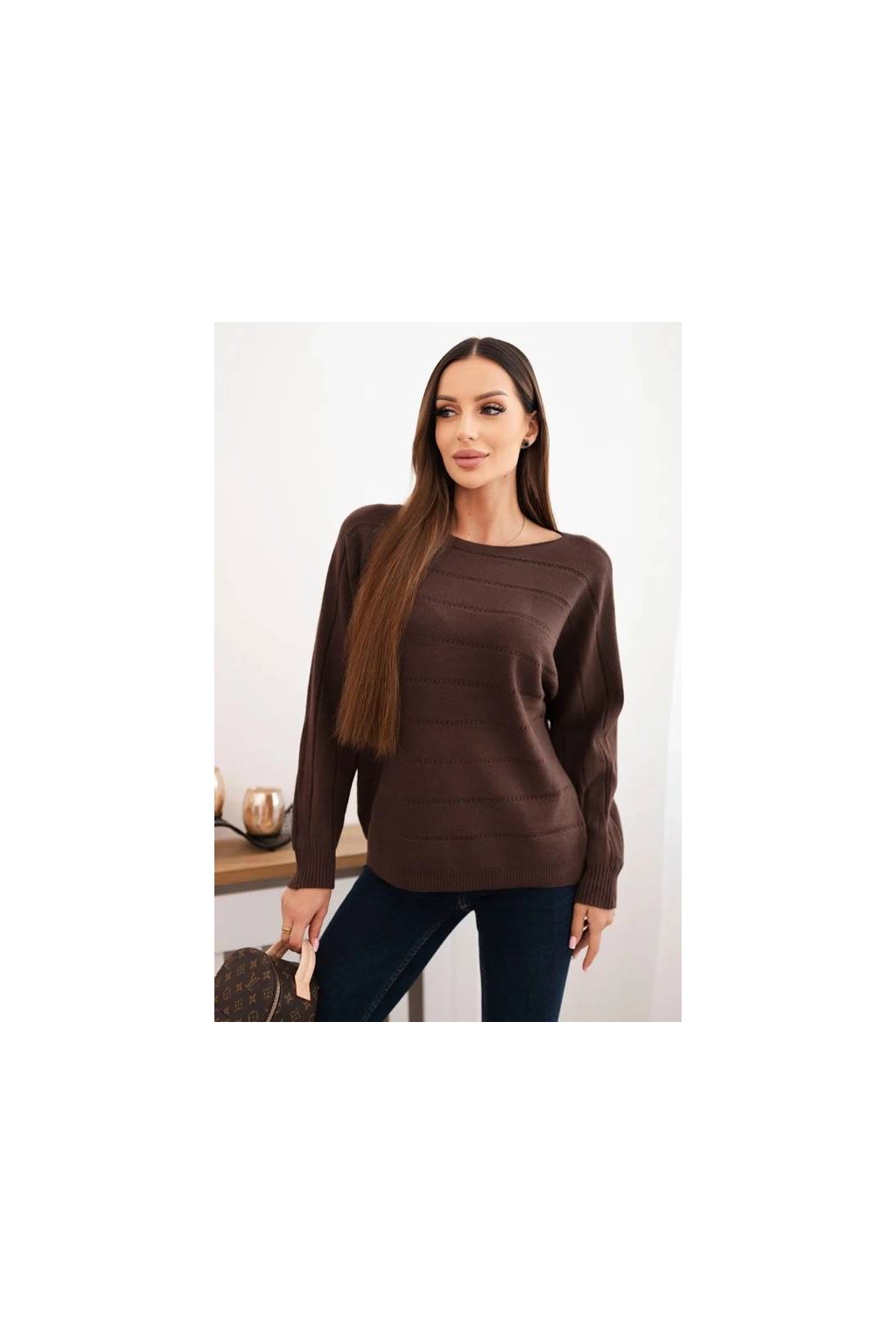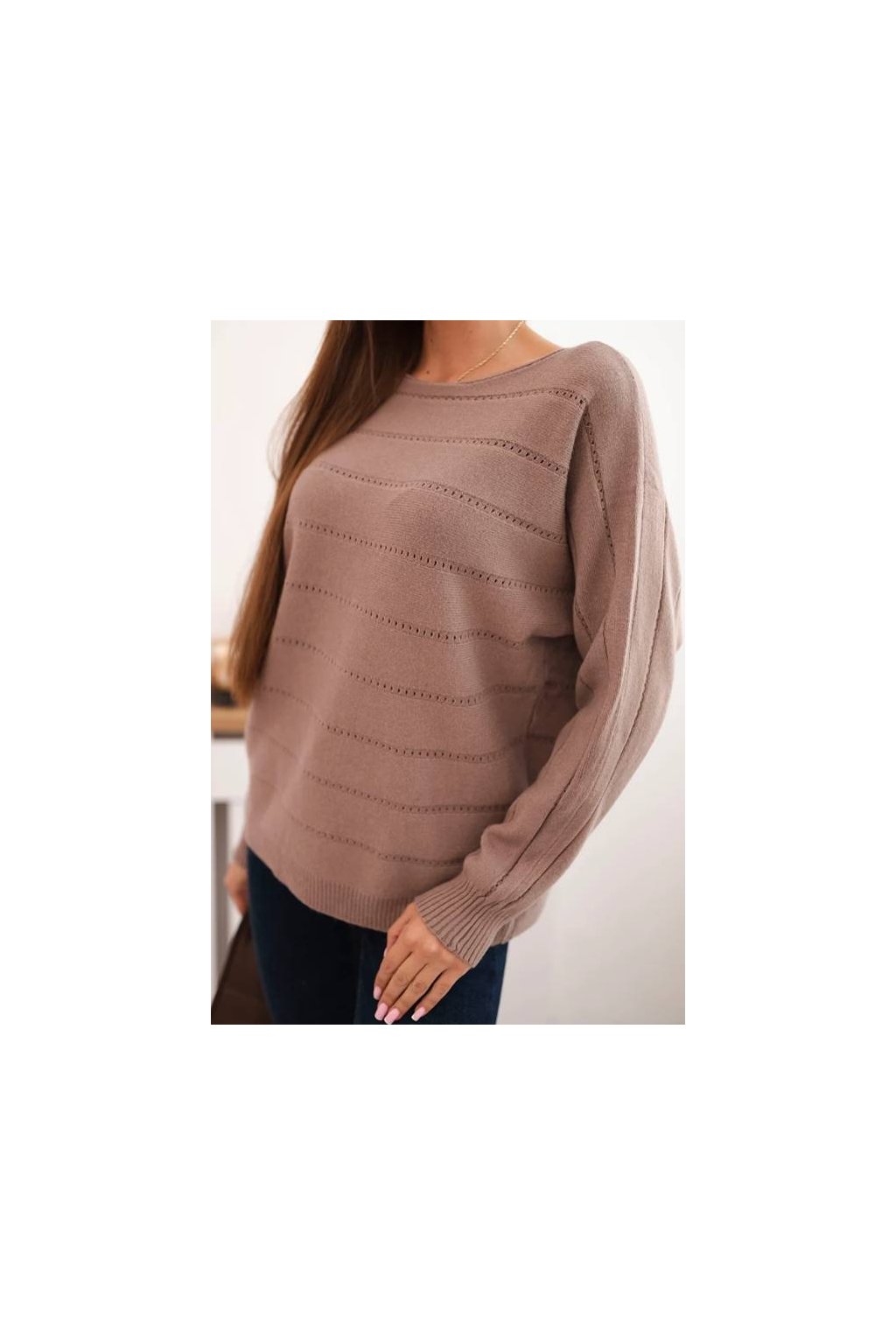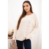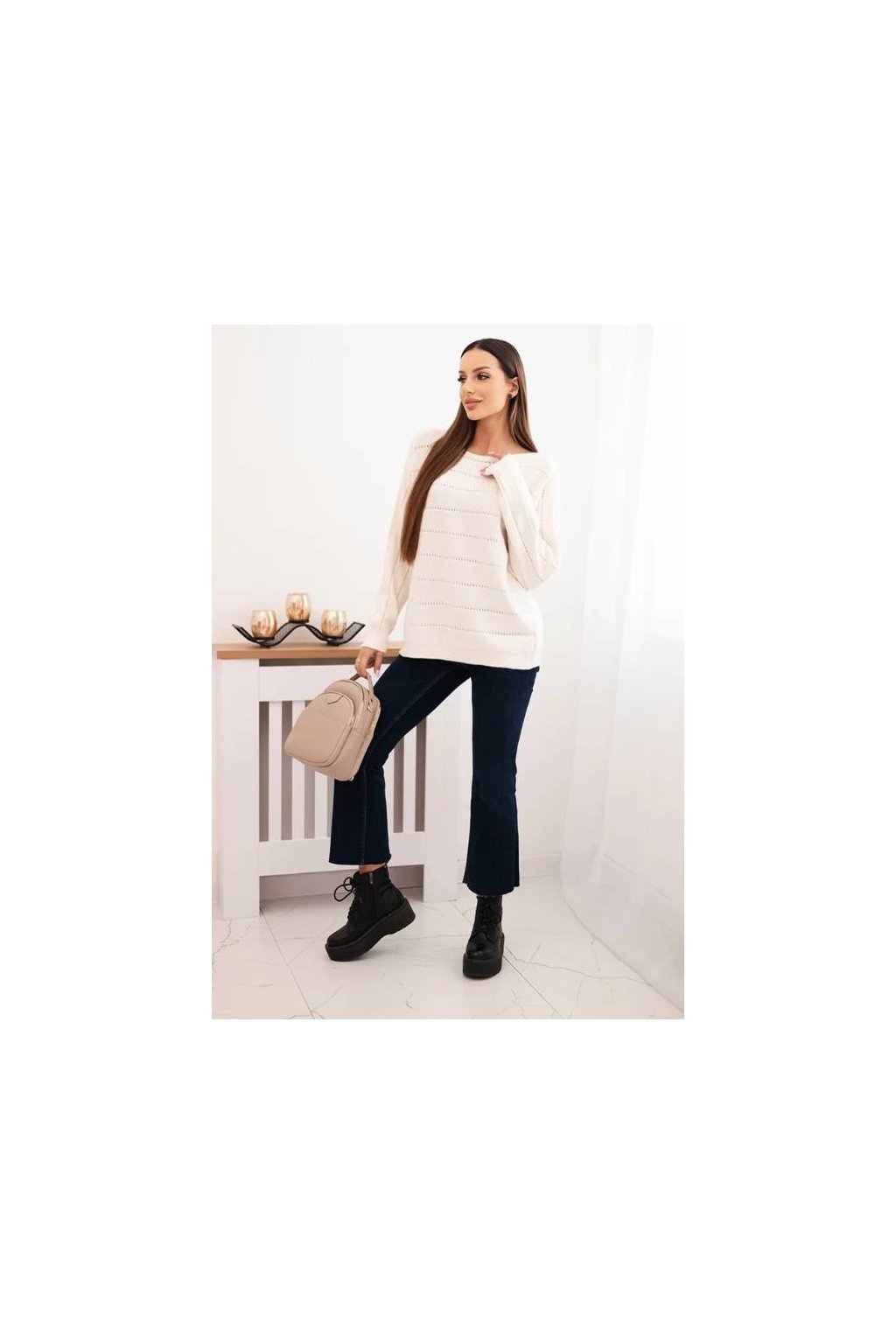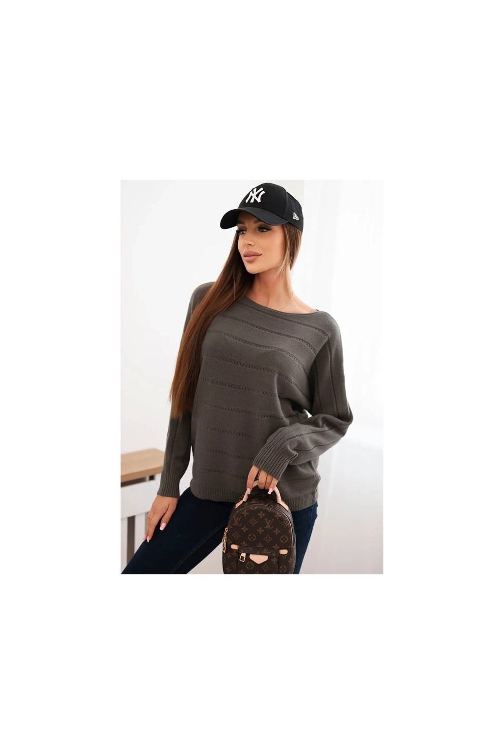 Drobný, horizontální průsvitný vzor mu dodává lehkost a činí ho velmi stylovým a moderním. Klasický střih s dlouhým rukávem a jemným výstřihem se hodí jak pro casual stylizace, tak pro ty elegantnější. Je to model, který se skvěle kombinuje s kalhotami, sukněmi nebo dokonce pod sako.