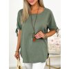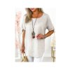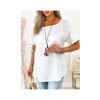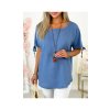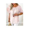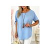 Ležérní halenka s krátkým rukávem. Přední část halenky je vyrobena z lnu, záda a rukávy z bavlny a lnu. Spodní část halenky je zaoblená, rukávy se zavazují mašlí. Součástí je efektní náhrdelník. Materiál je jemný, vzdušný a ideální pro teplé dny.