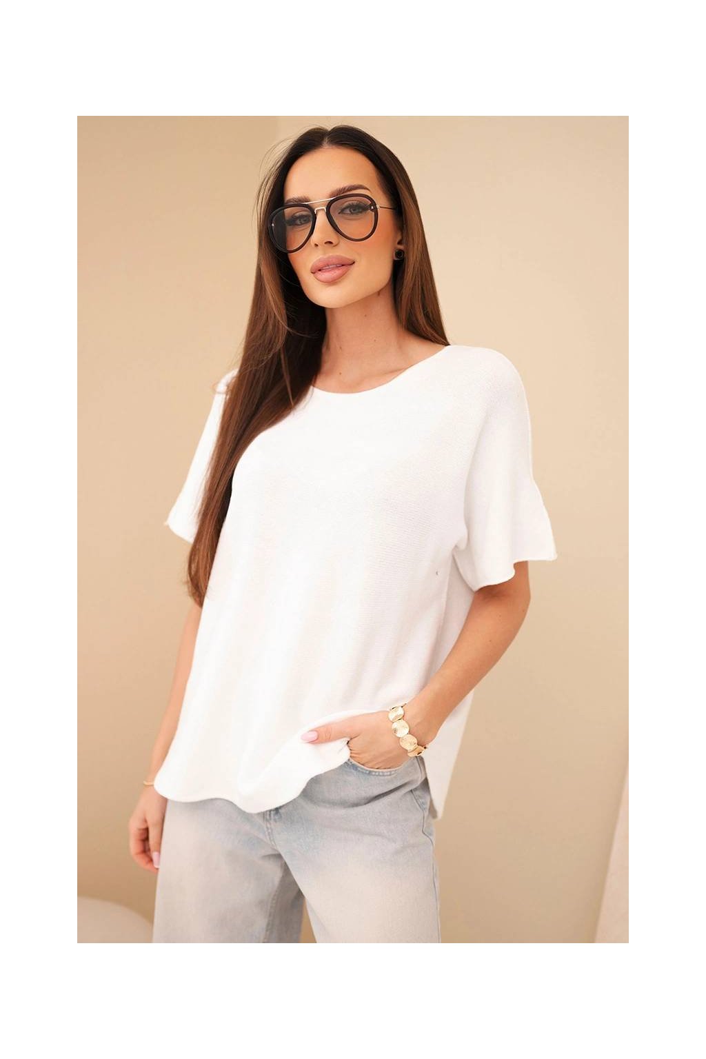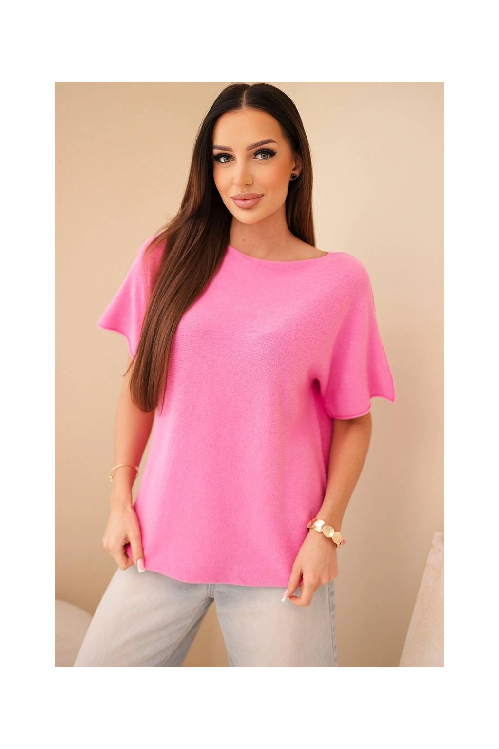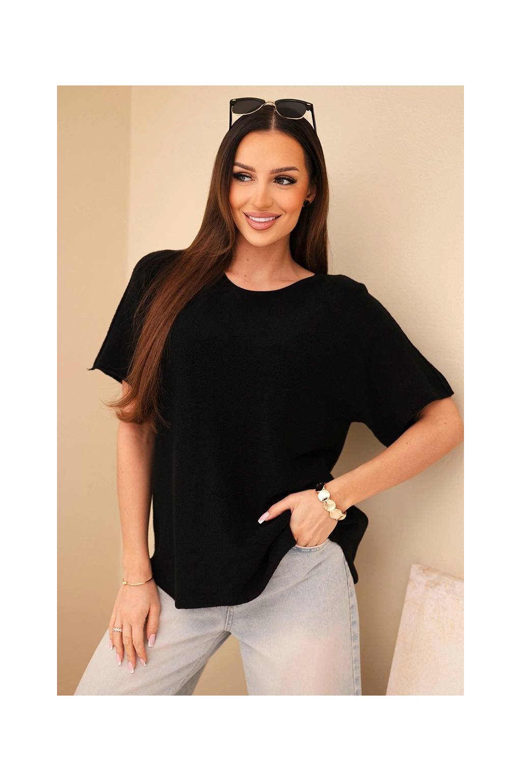 Svetrová halenka z kvalitního příjemného materiálu s příměsí P.B.T . Model s výstřihem do V ležérního střihu. Halenka oversize je dokonalým základem pro mnoho stylizac