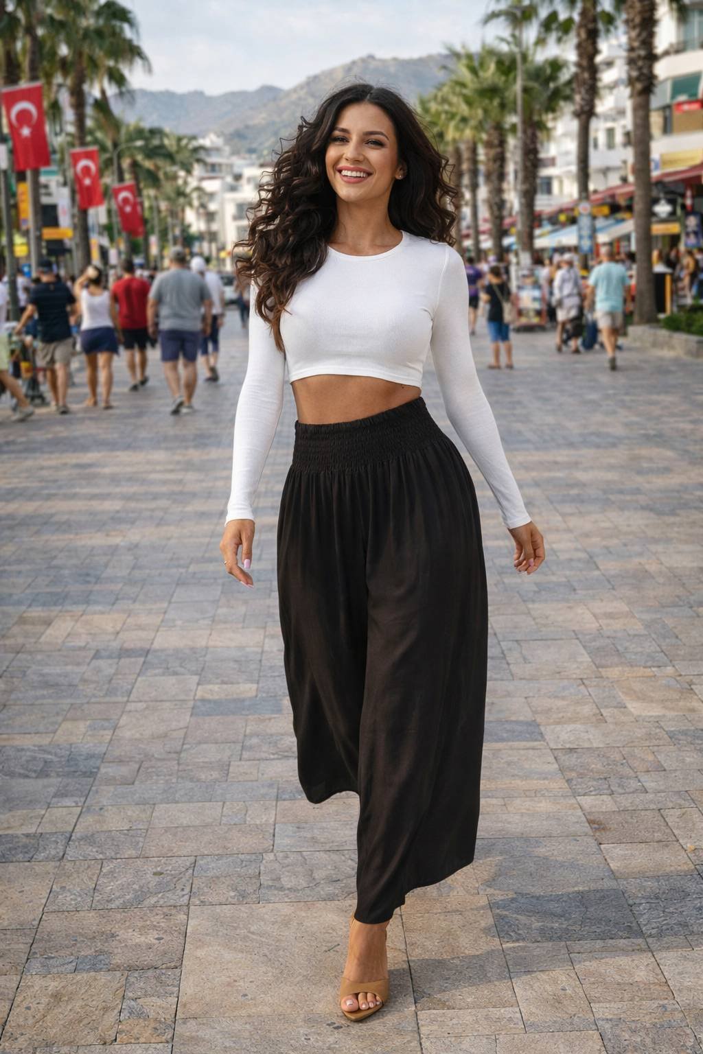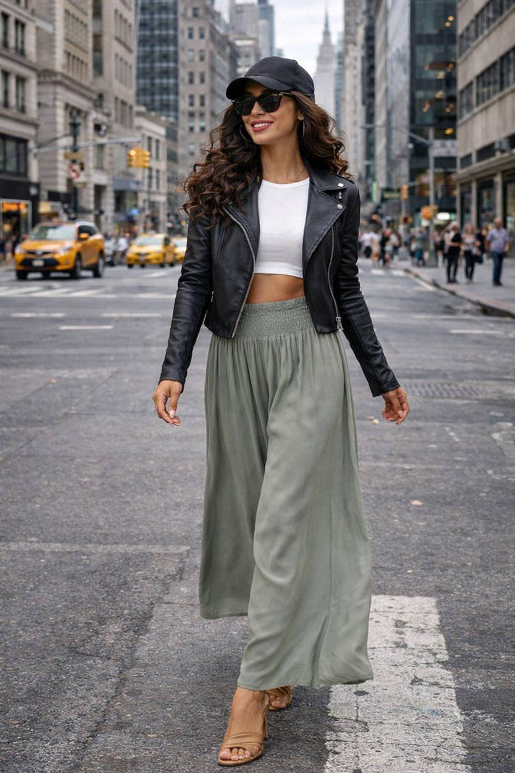 Pokud hledáte pohodlné a stylové kalhoty na každý den nebo na dovolenou, tyto dámské palazzo kalhoty jsou trefou do černého! Vyrobené ze 100% lehké, vzdušné viskózy poskytují nejen komfort při nošení, ale také krásně padnou na postavu. Široké nohavice a rozšířený střih dodávají každému pohybu lehkost a eleganci a elastický pas se skvěle přizpůsobí pasu. Ideální na procházku, nákupy i na pláž – stačí přidat jednoduchý top a je to! Univerzální model, který by neměl chybět ve vašem šatníku. Velikost je univerzální a hodí se pro ženy velikosti S, M nebo L.