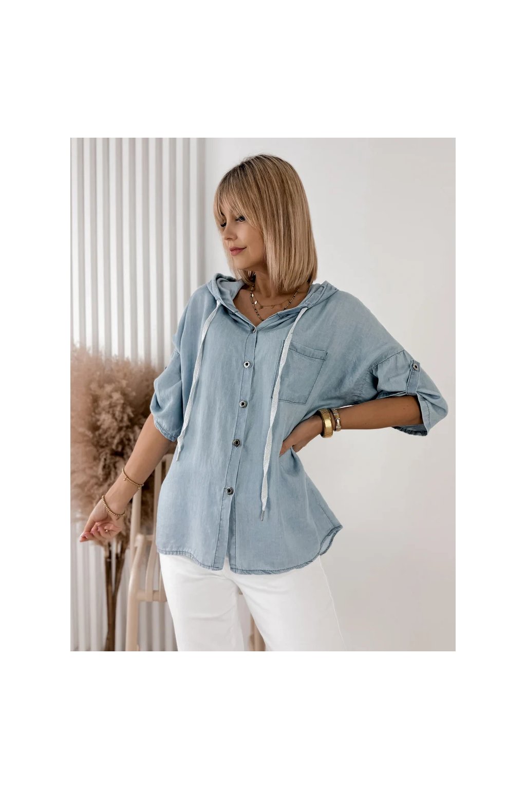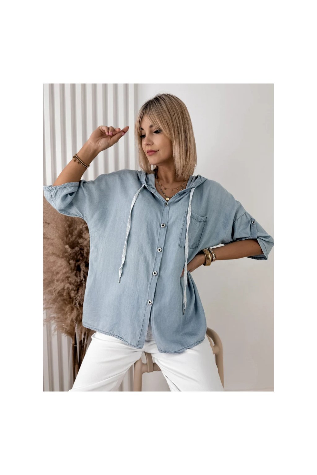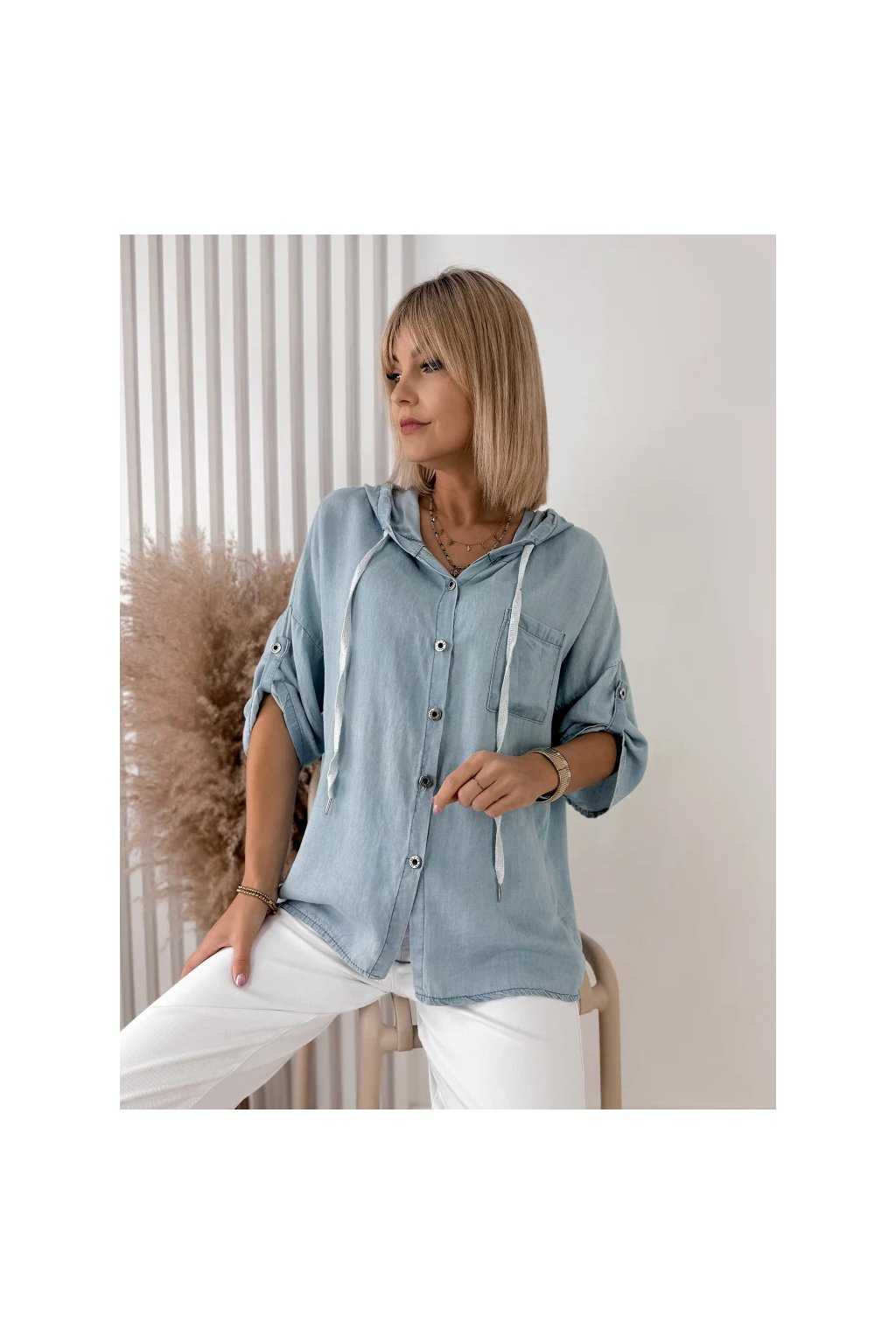 Dámská košile SARELO modrá s kapucí – italská móda