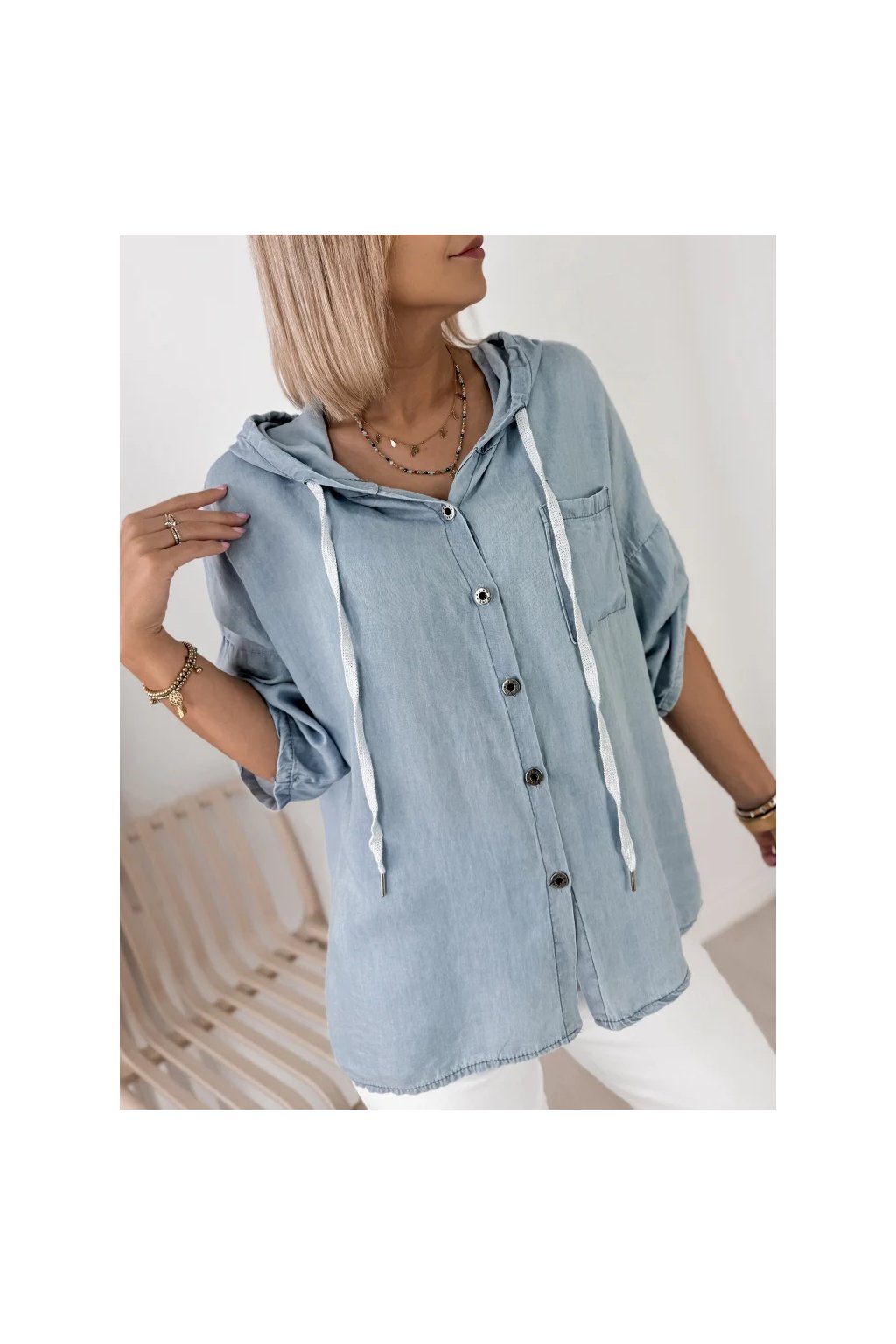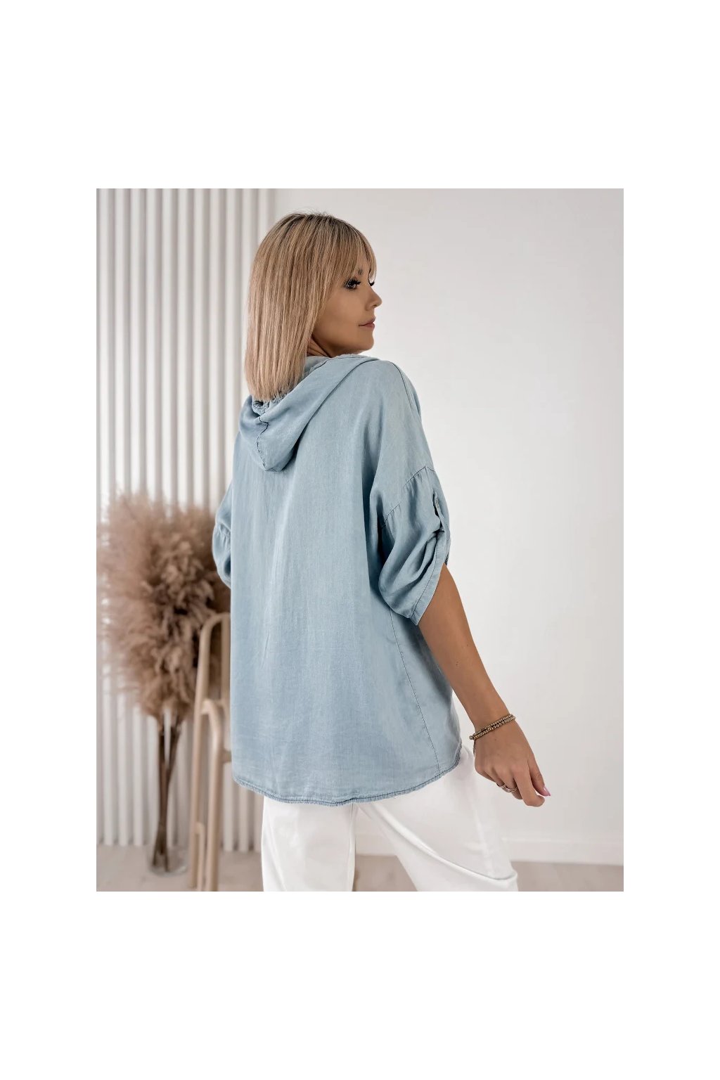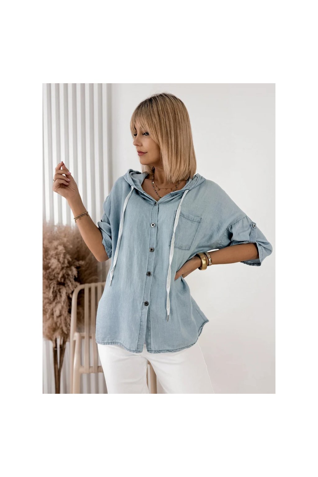 Dámská košile SARELO modrá s kapucí – italská móda