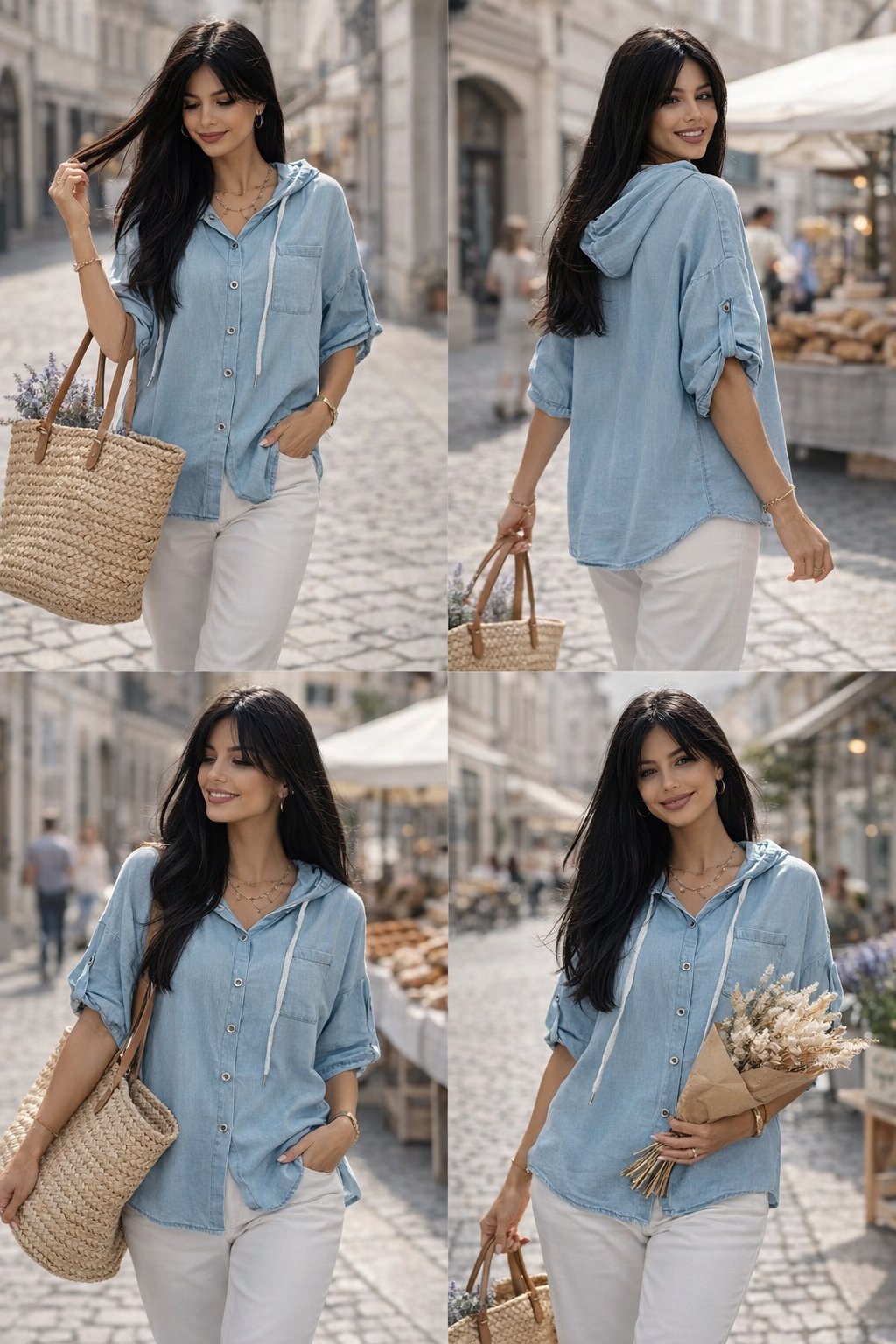 Volnější střih krásně splývá na postavě a poskytuje maximální komfort při nošení. Praktická kapuce se šňůrkami, zapínání na knoflíky a moderní design vytvářejí stylový outfit vhodný jak do města, tak na volný čas.