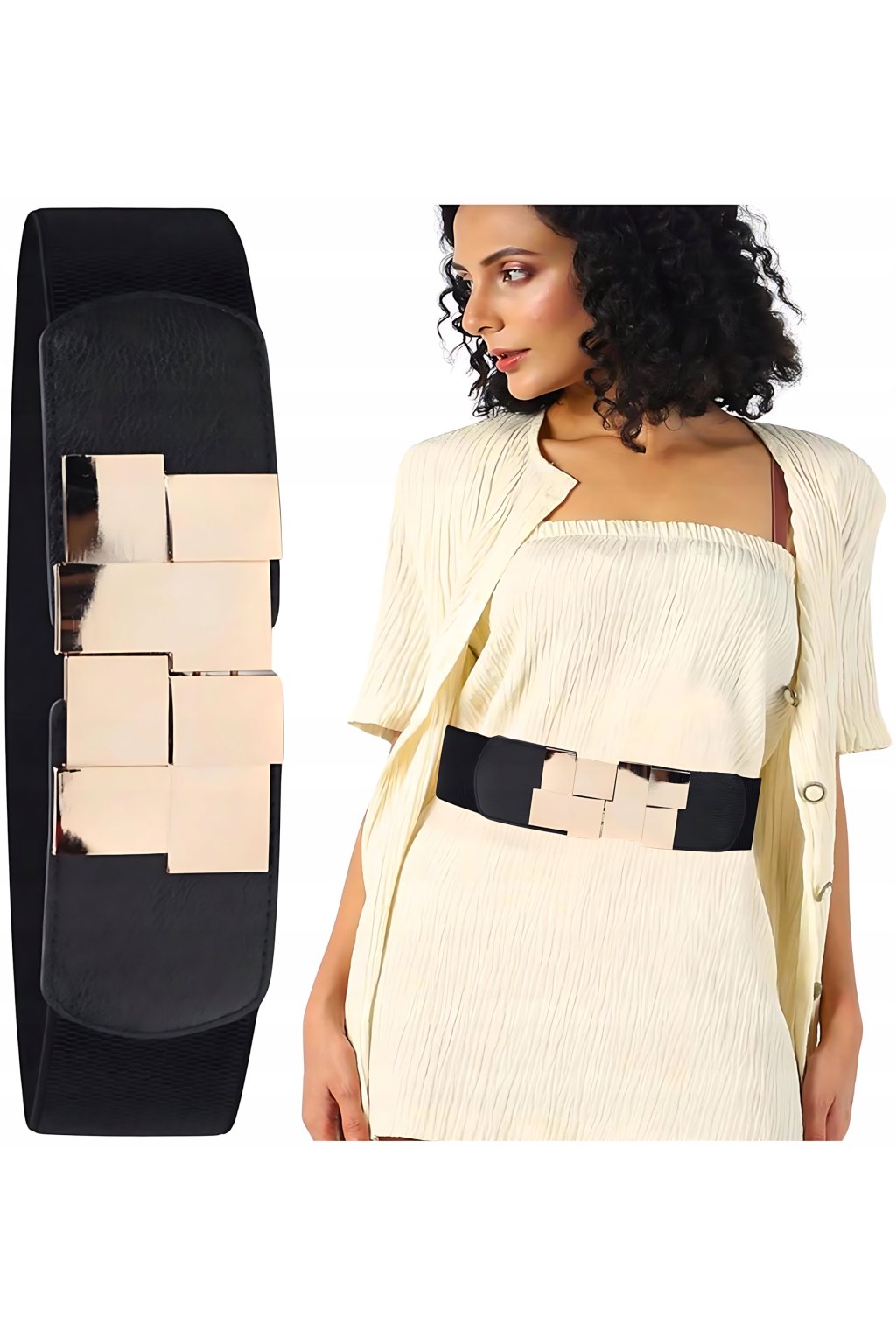 Dámský široký společenský pásek, černý, elastický -velký výběr