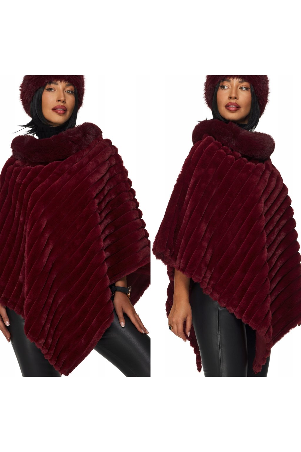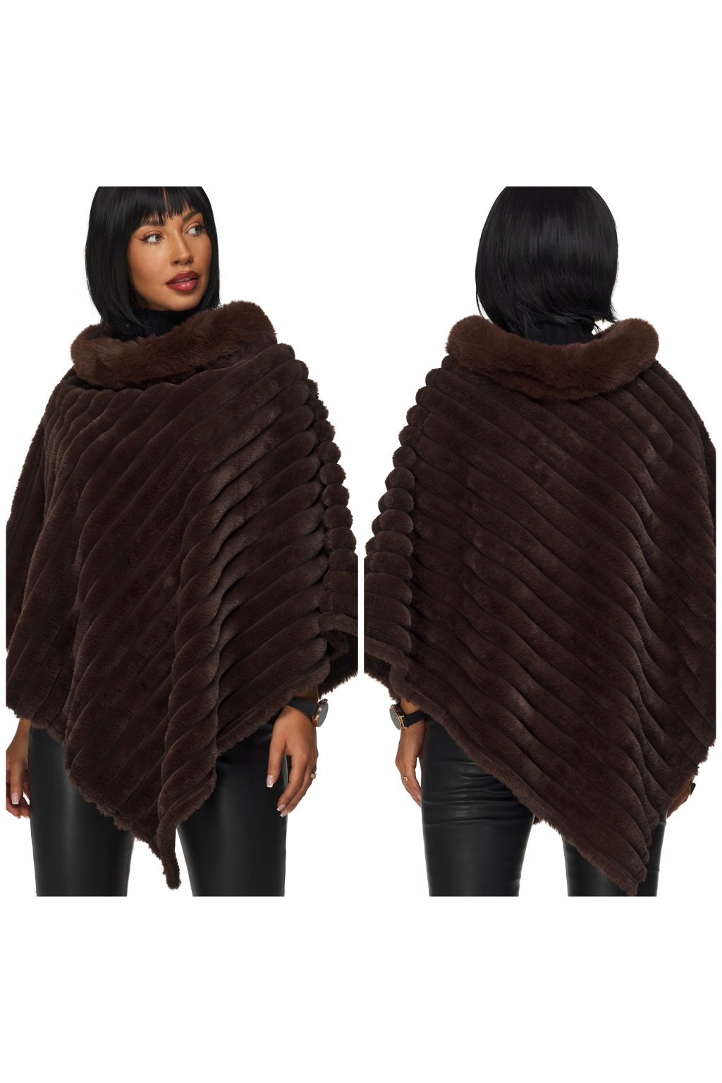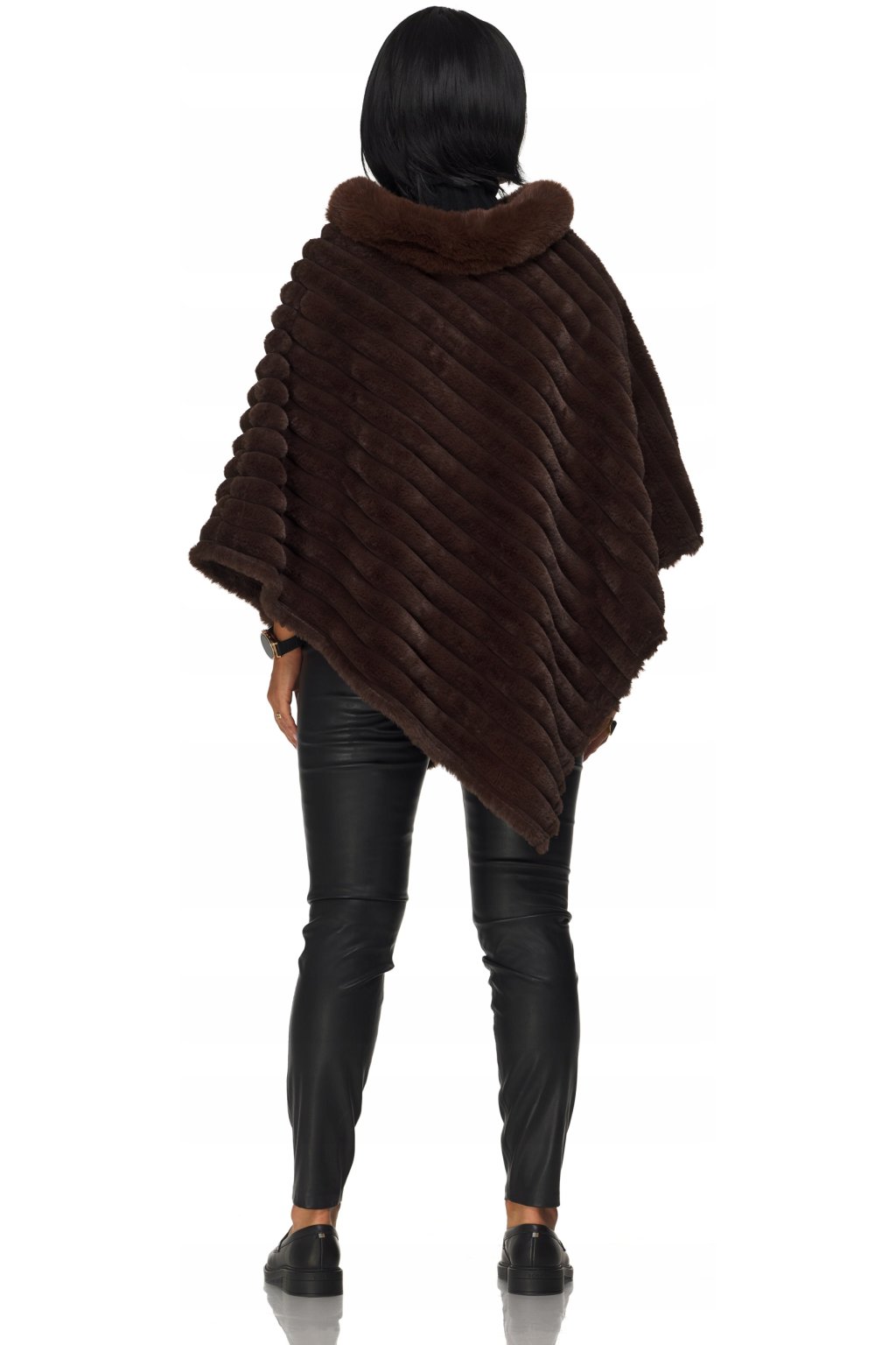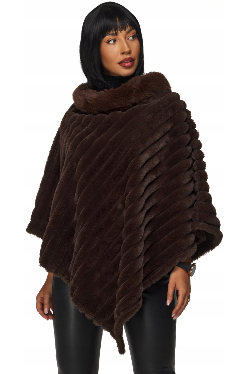 Extrémně teplé a efektivní dámské pončo, s trojúhelníkovým zakončením.Volný střih, s volně padajícím materiálem. Kožešina je hustá, masitá, vytváří efekt silných diagonálních pruhů. Límec lemovaný nadýchanou kožešinou.Pončo z kvalitní umělé kožešiny.Dokonalé pro ležérní i elegantní styly.Lze použít jako bolerko k šatům. Perfektní jako pelerína místo svetru i do chladnějších dnů přes bundu. Pončo bude dokonalým doplňkem podzimních a zimních stylizací.