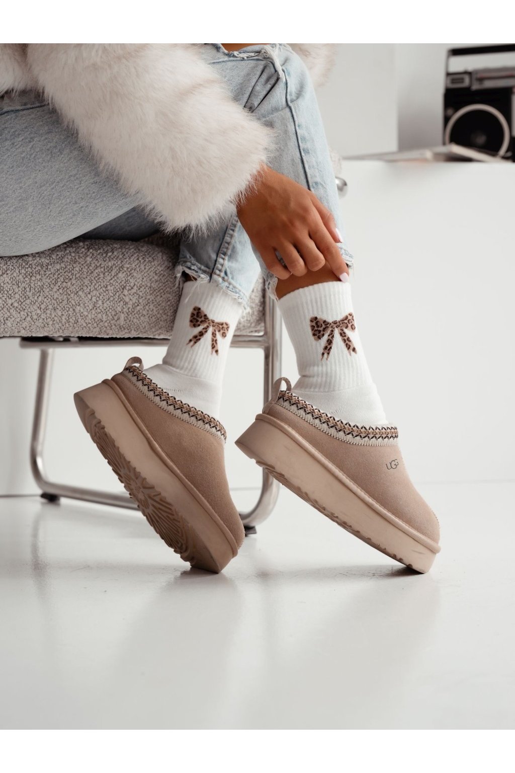 Dámské froté ponožky s mašlí nebo proužky v leopardím vzoru