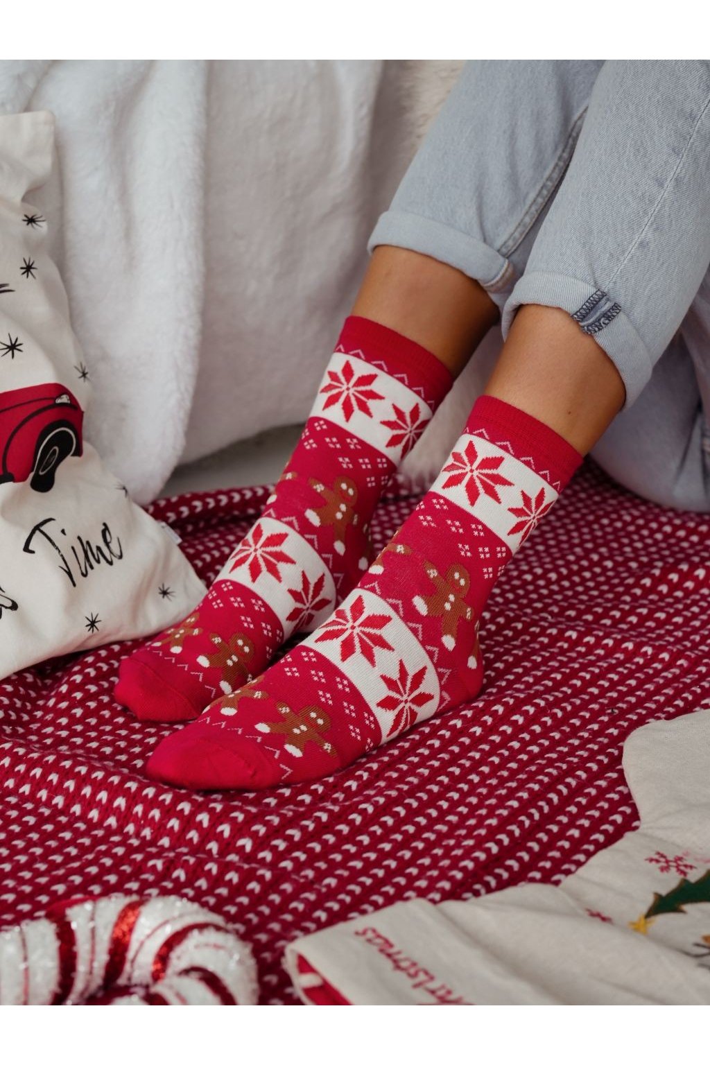 Ponožky s vánoční tématikou - veselé ponožky. Vánoční bavlněné ponožky, které jsou vyrobeny z velmi kvalitní bavlny. Ponožky jsou ozdobeny Měkké na dotek, zajišťující vysoký komfort nošení.