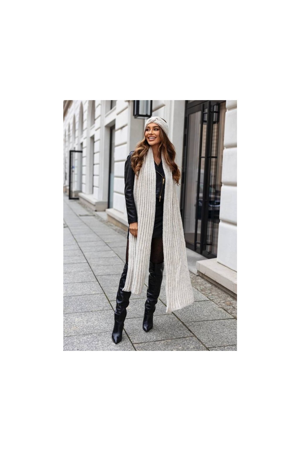Elegantní dámská sada na zimu – měkká pletená šála a čelenka. Stylový a hřejivý komplet, ideální pro chladné dny. Skvělý tip na dárek.