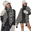 Dámský dlouhý oboustranný teplý vlněný šátek s bambulkami se srdíčkovým vzorems kožešinovými bambulkami