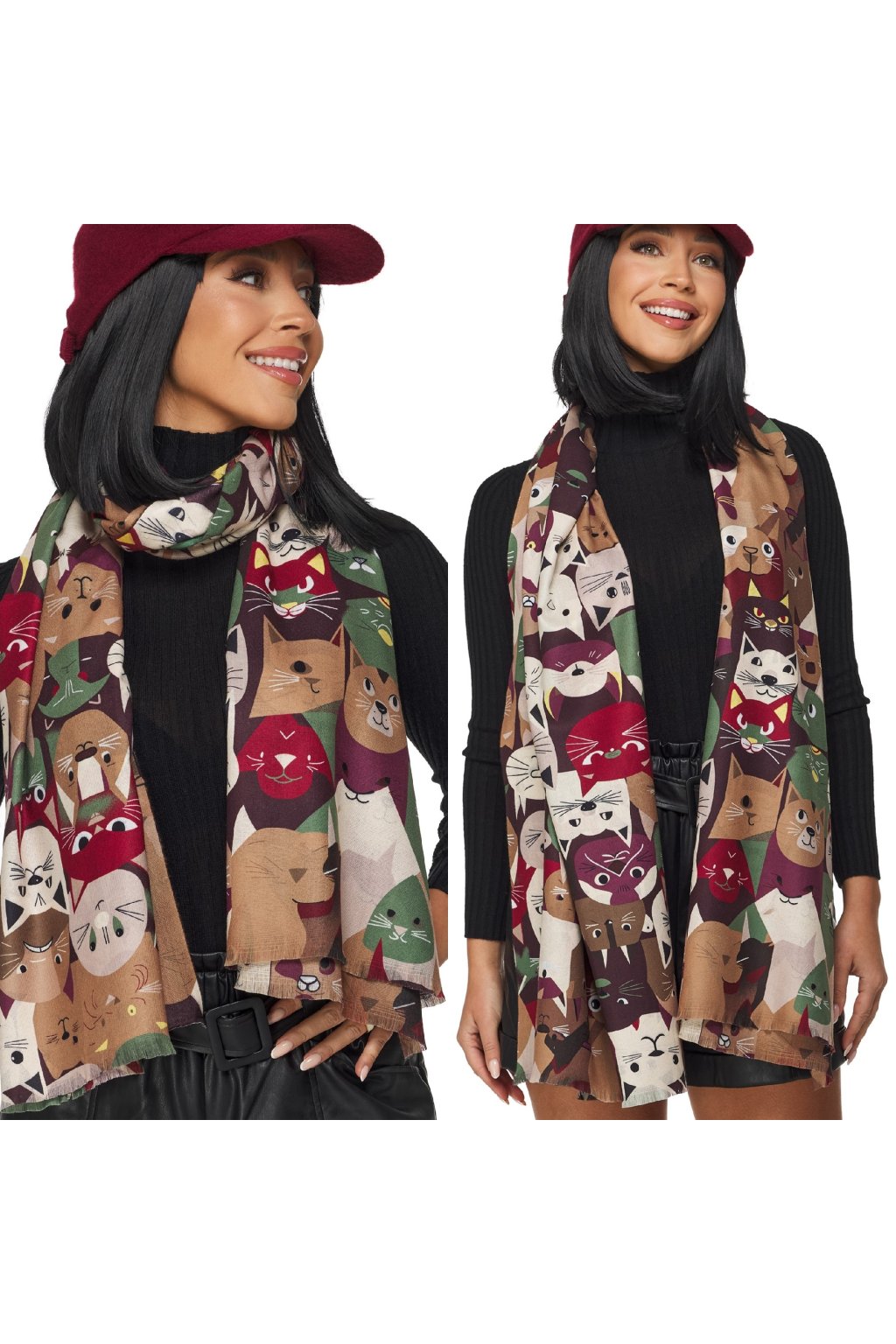Dámský šátek z měkkého, silnějšího materiálu s kočičím vzorem.