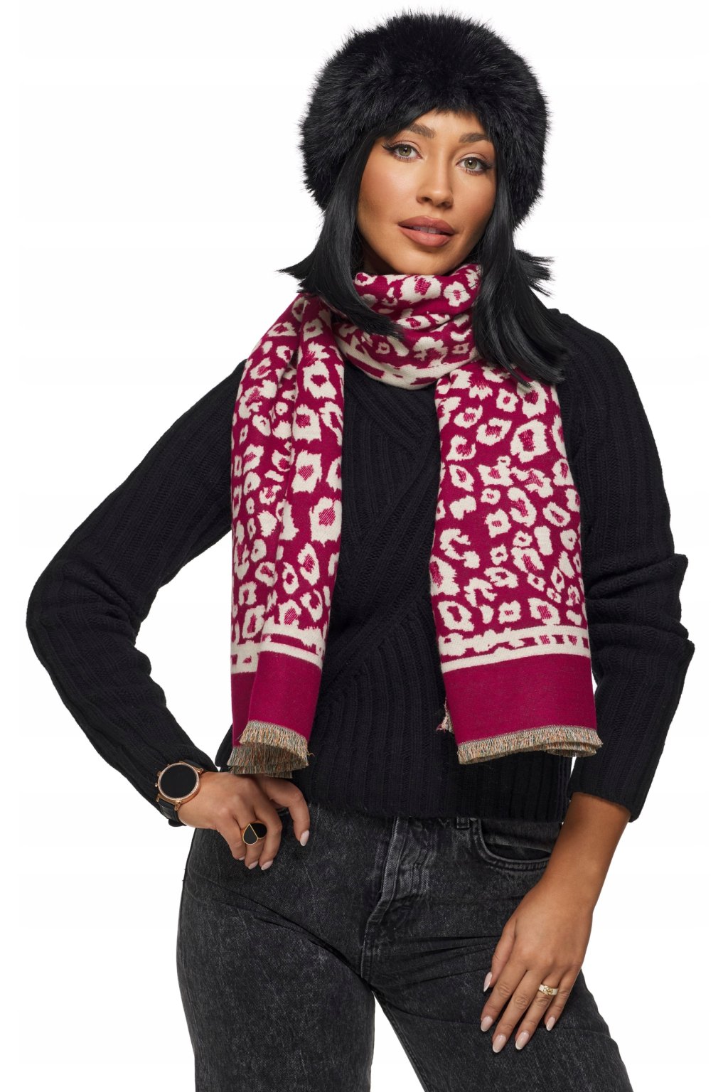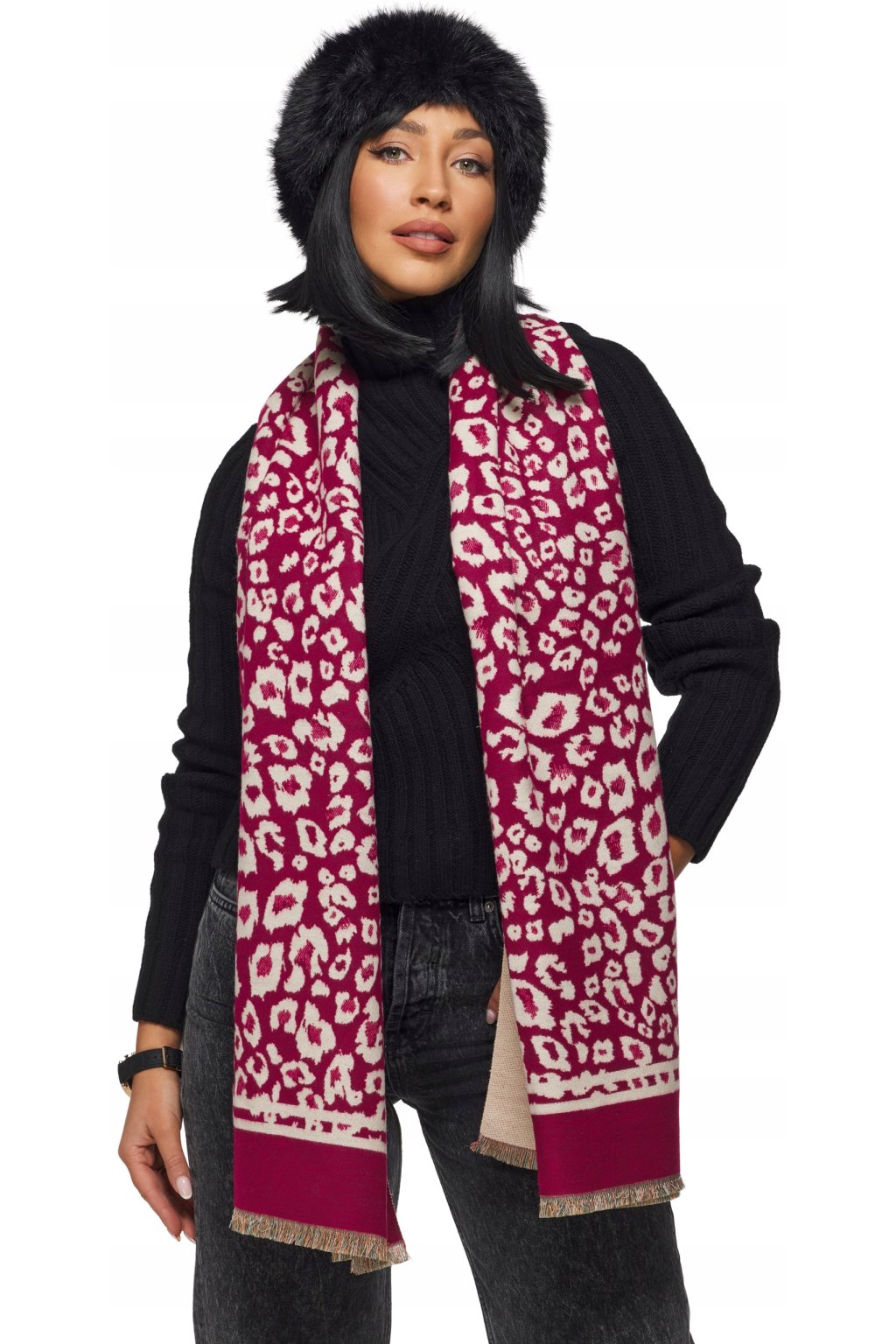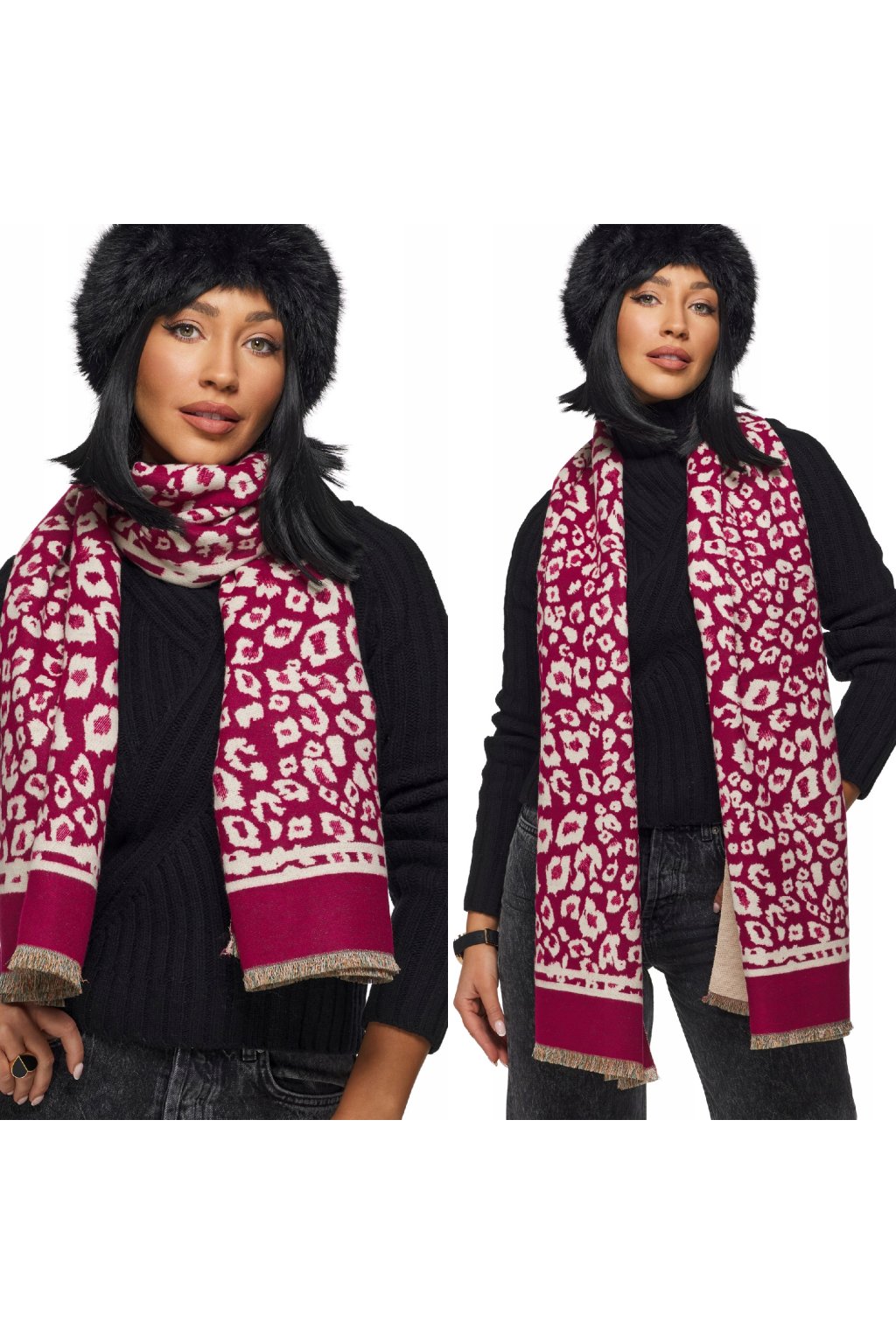 Oboustranný design s třásňovými detaily. Materiál je hřejivý, příjemný na dotek.Šátek je dlouhý, což dává mnoho možností stylingu.Bude perfektní pro ležérní styl.