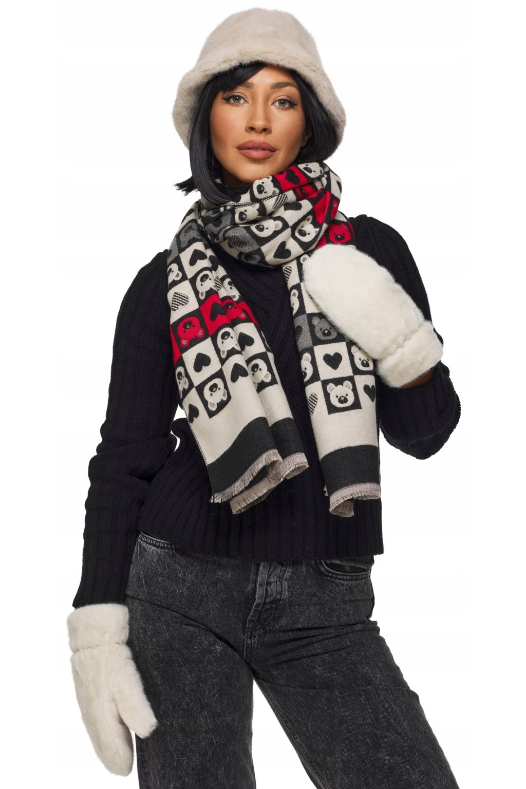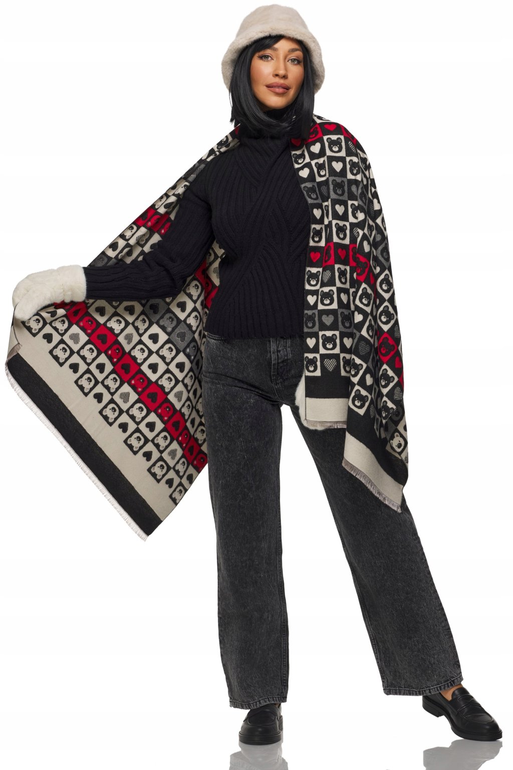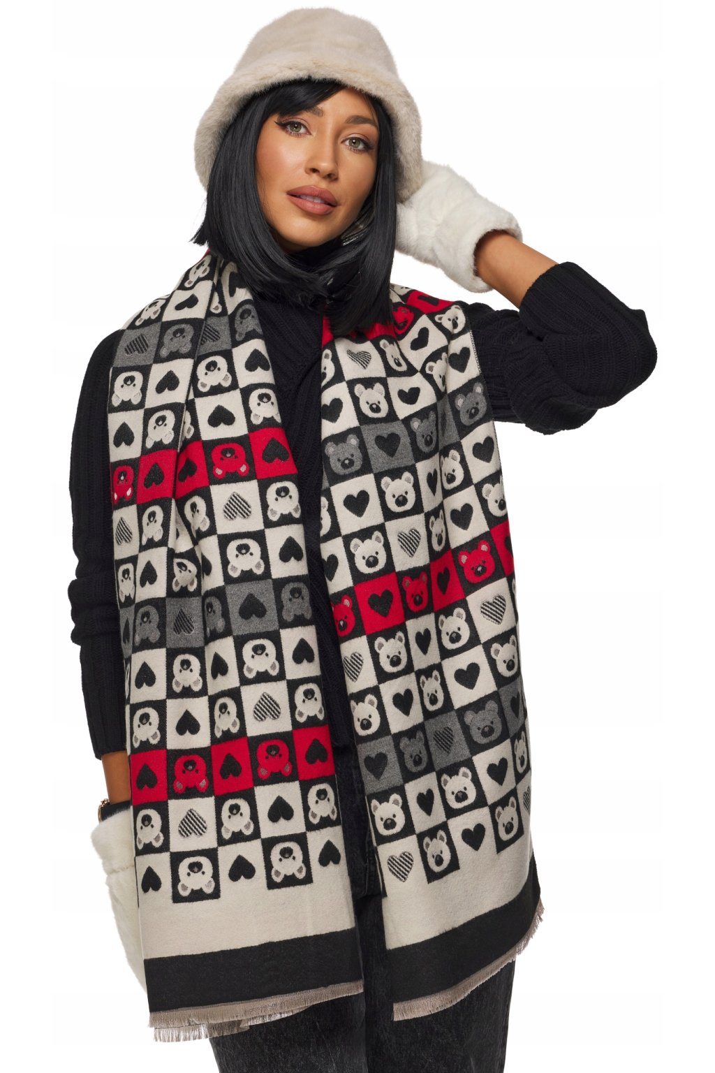 Oboustranný design s třásňovými detaily. Materiál je hřejivý, příjemný na dotek.Šátek je dlouhý, což dává mnoho možností stylingu.Bude perfektní pro ležérní styl.