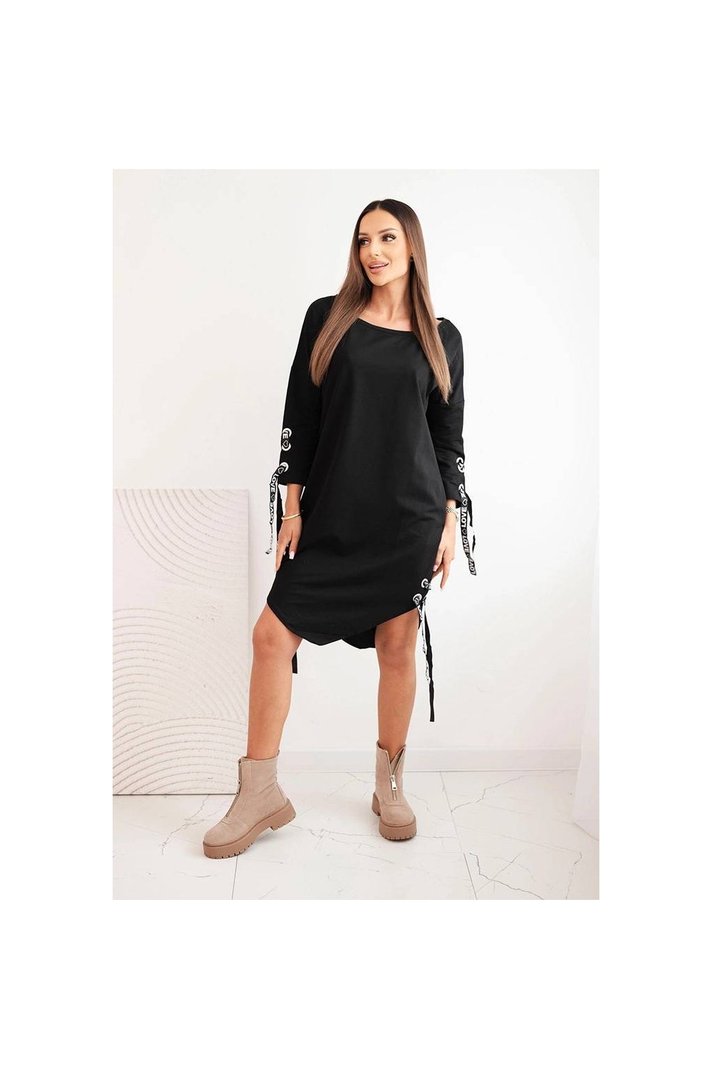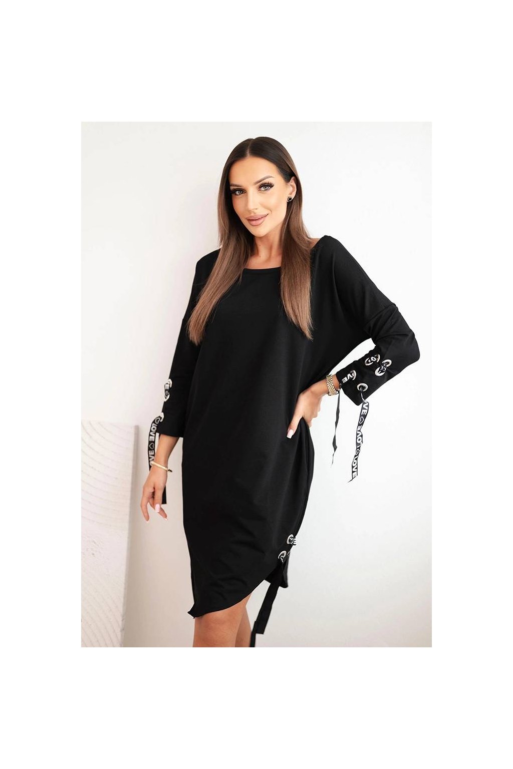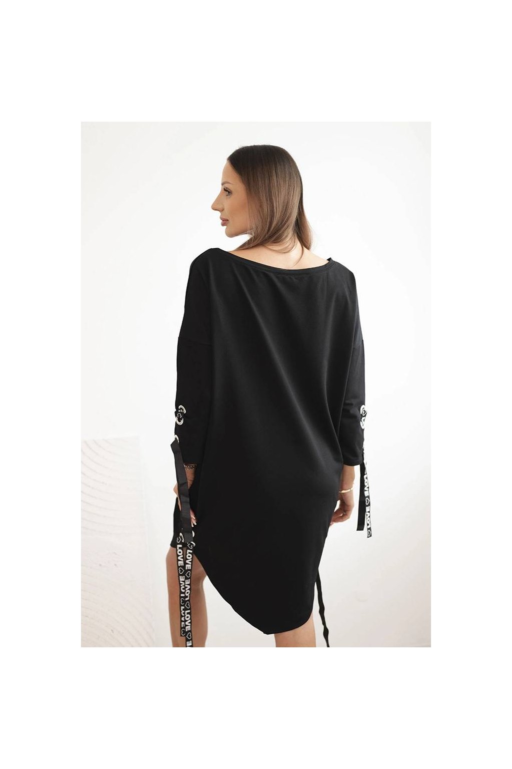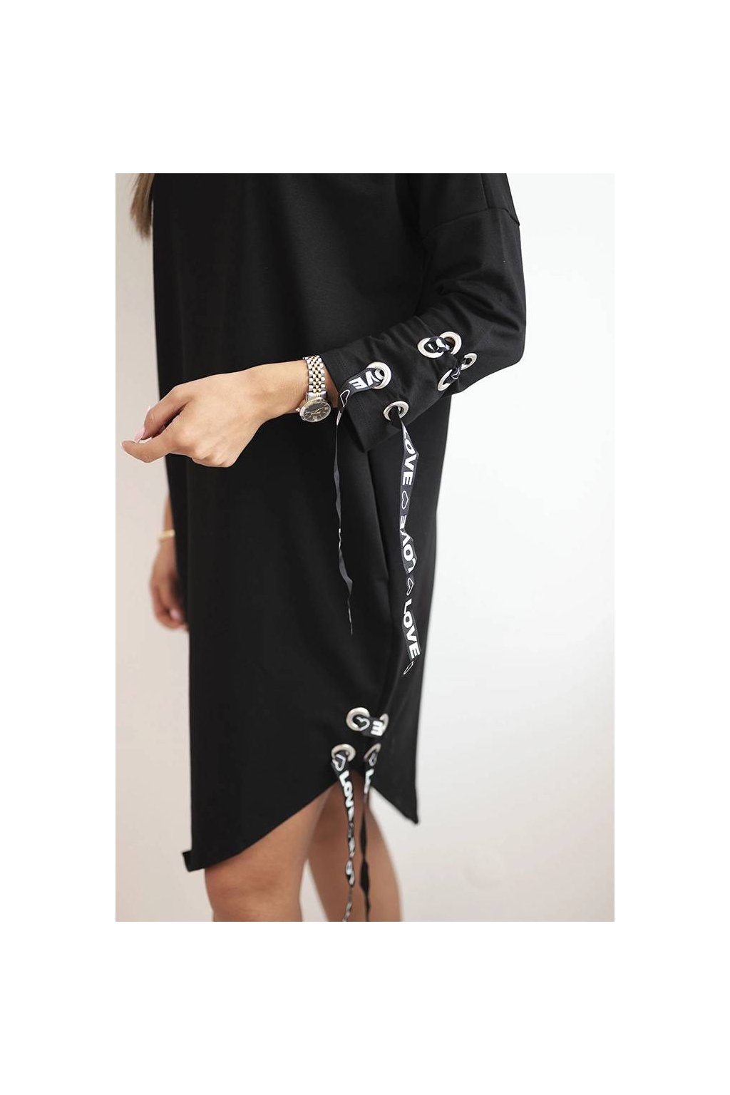Hledáte pohodlné, ale zároveň módní šaty na každý den? Tyto dámské šaty s asymetrickým spodním lemem a ozdobnými páskami "LOVE" jsou kombinací ležérnosti, stylu a originálního designu. Délka zakrývající boky a volný střih zajišťují, že skvěle sedí na postavě a poskytují plný komfort nošení. Rukáv 3/4 dodává celku lehký, neformální charakter – ideální jak na procházku, nákupy, tak na setkání s přáteli.