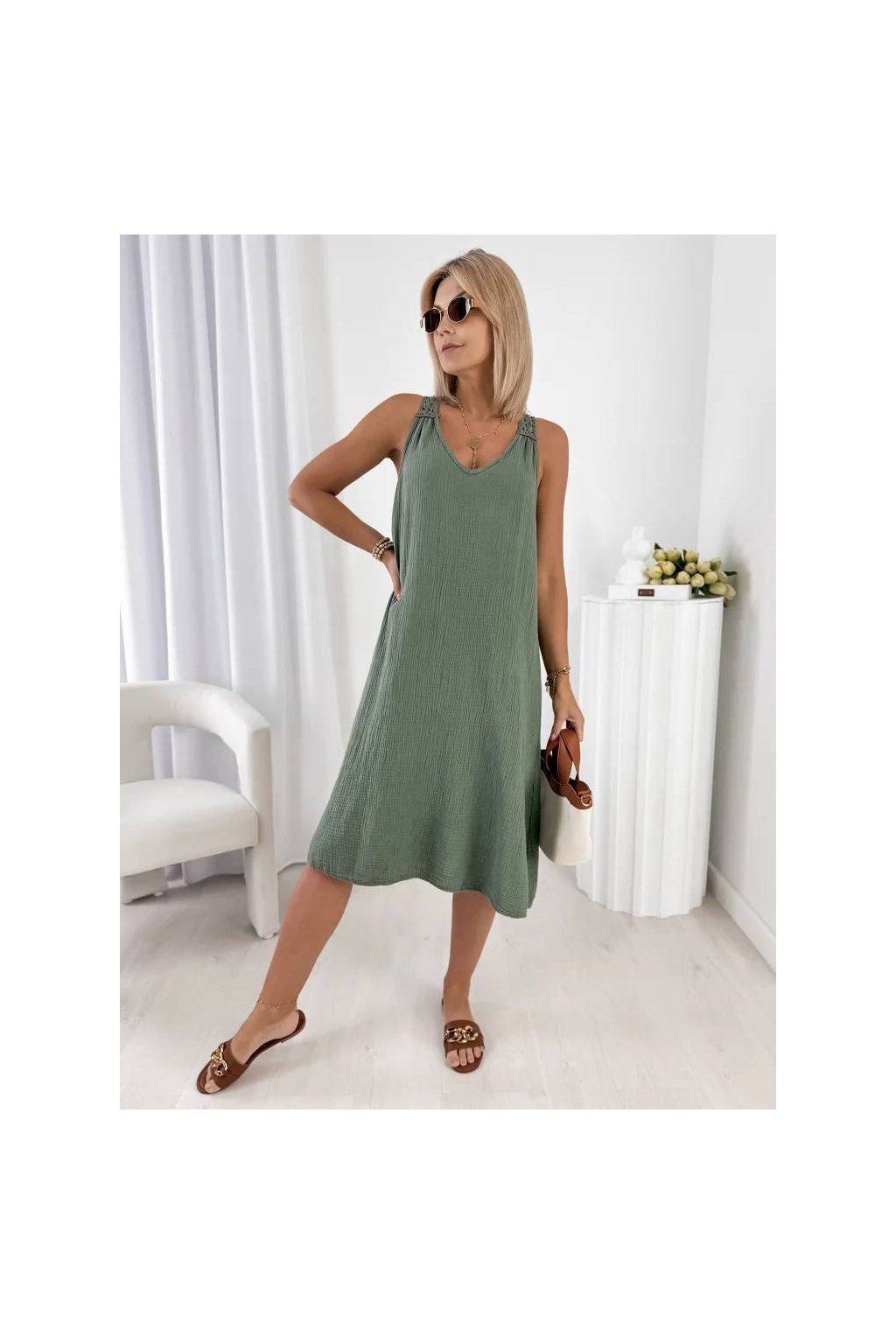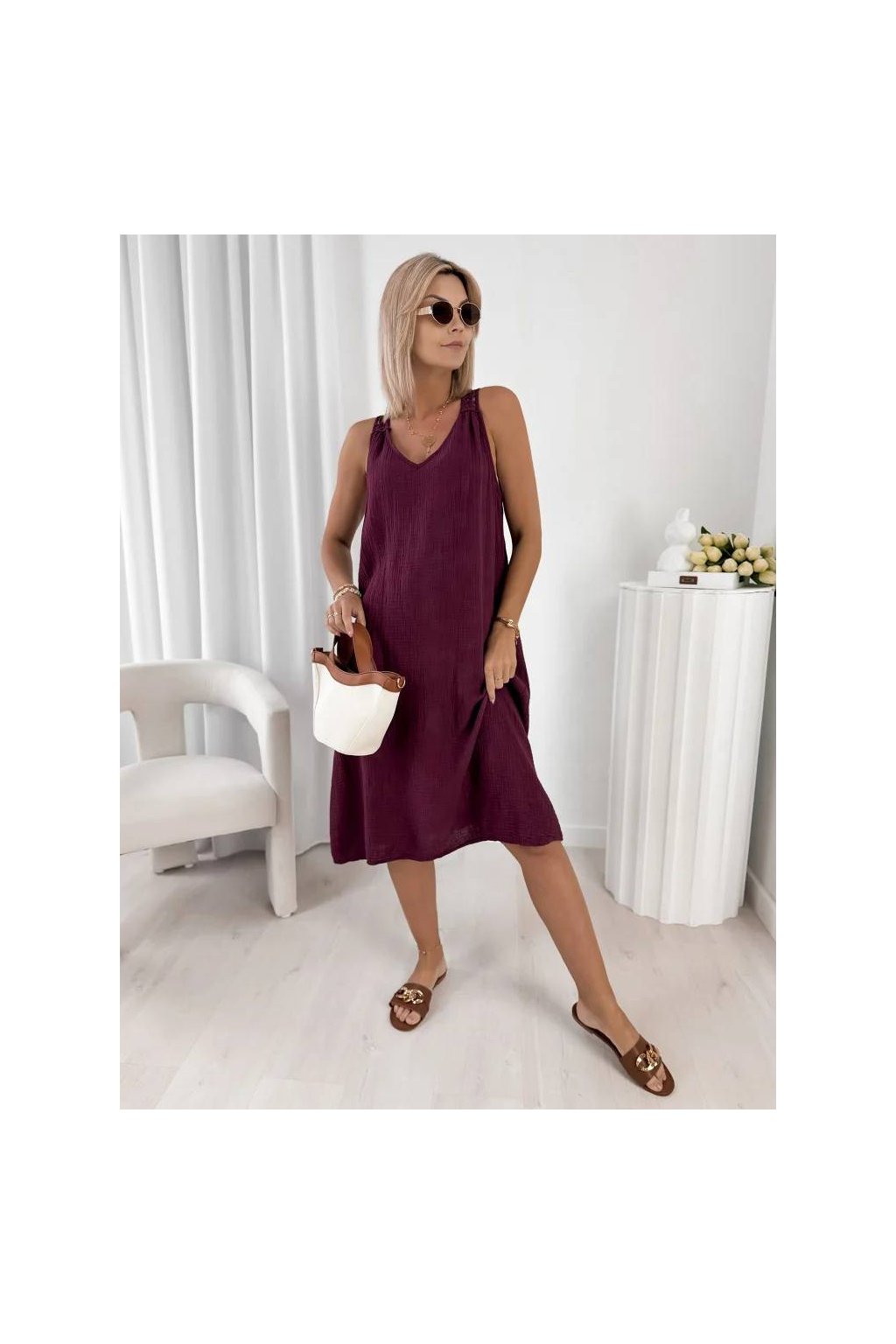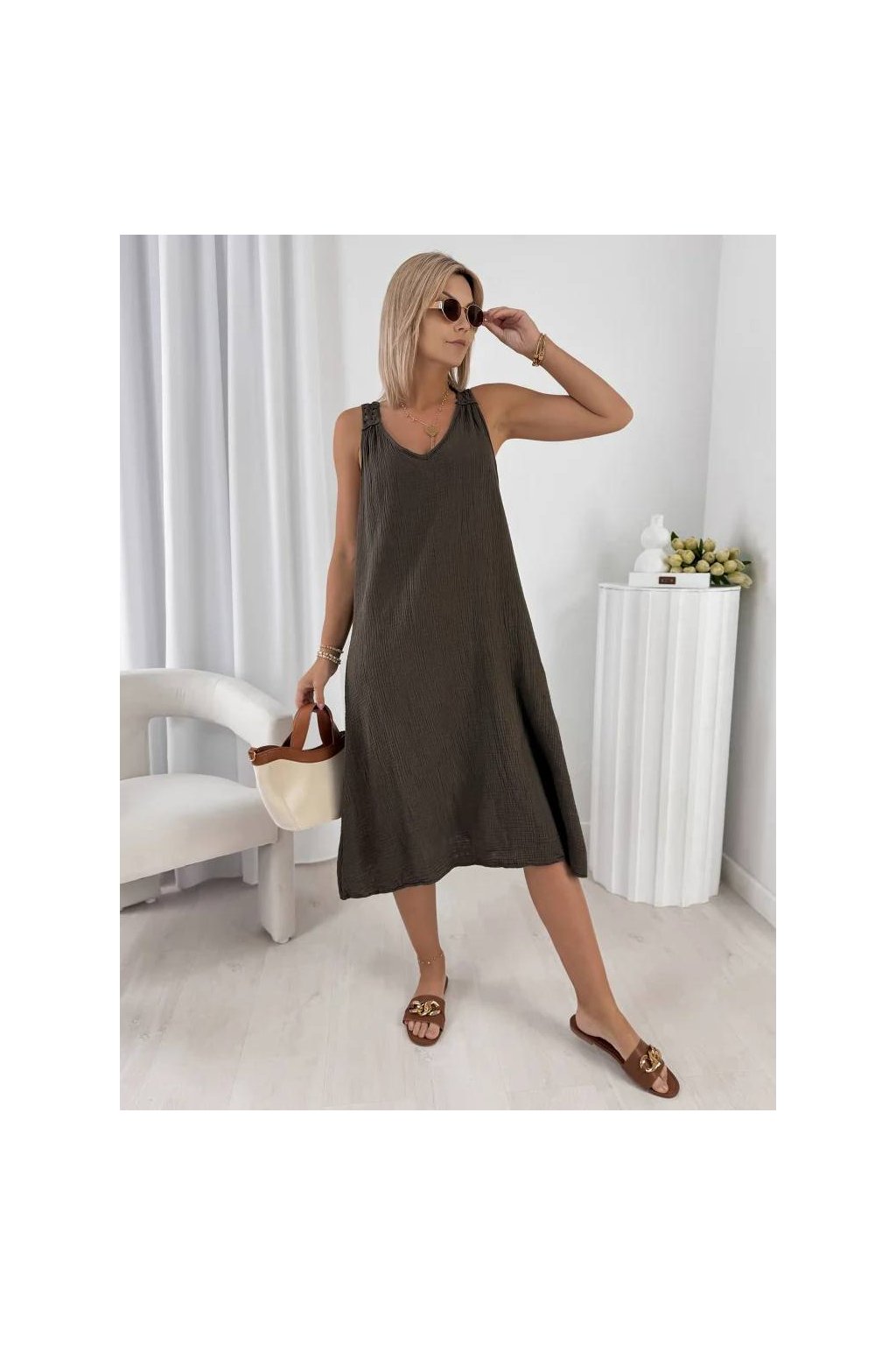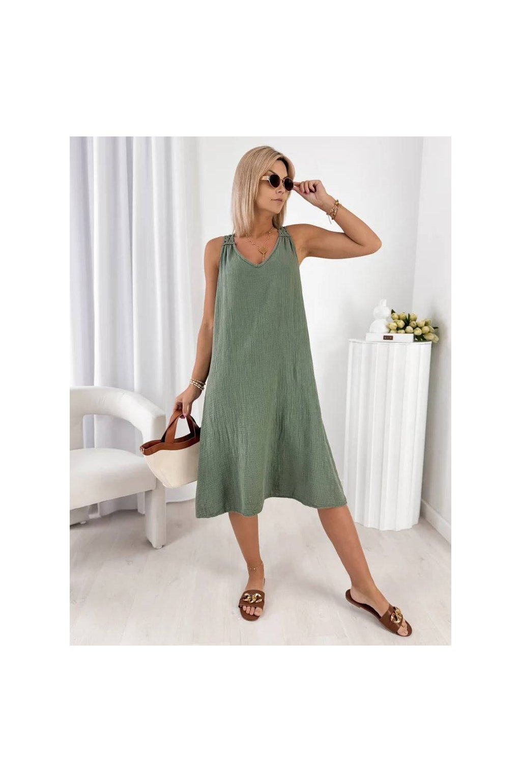 Stylové dámské midi šaty z přírodní bavlny jsou ideální volbou pro teplé dny.