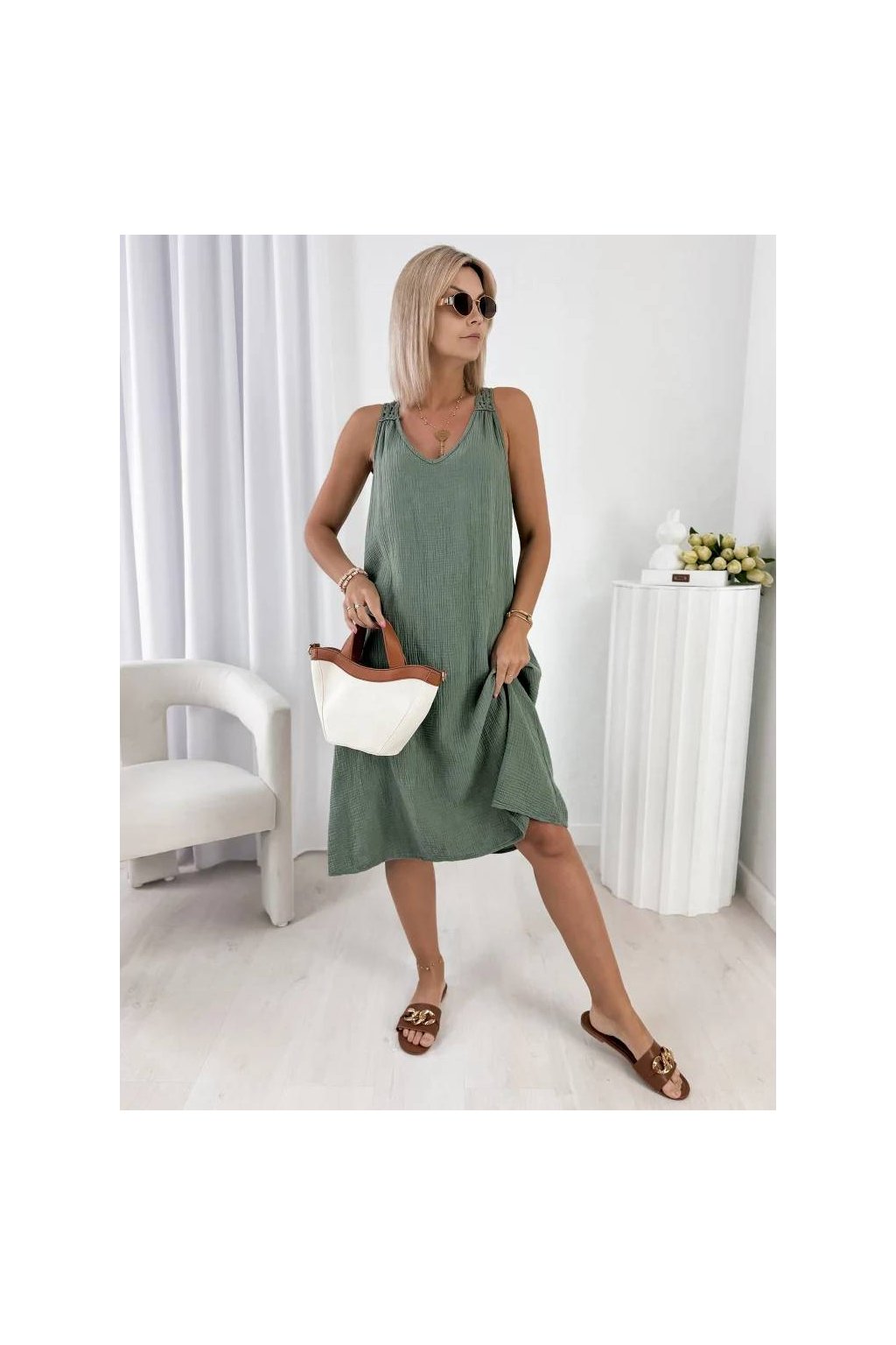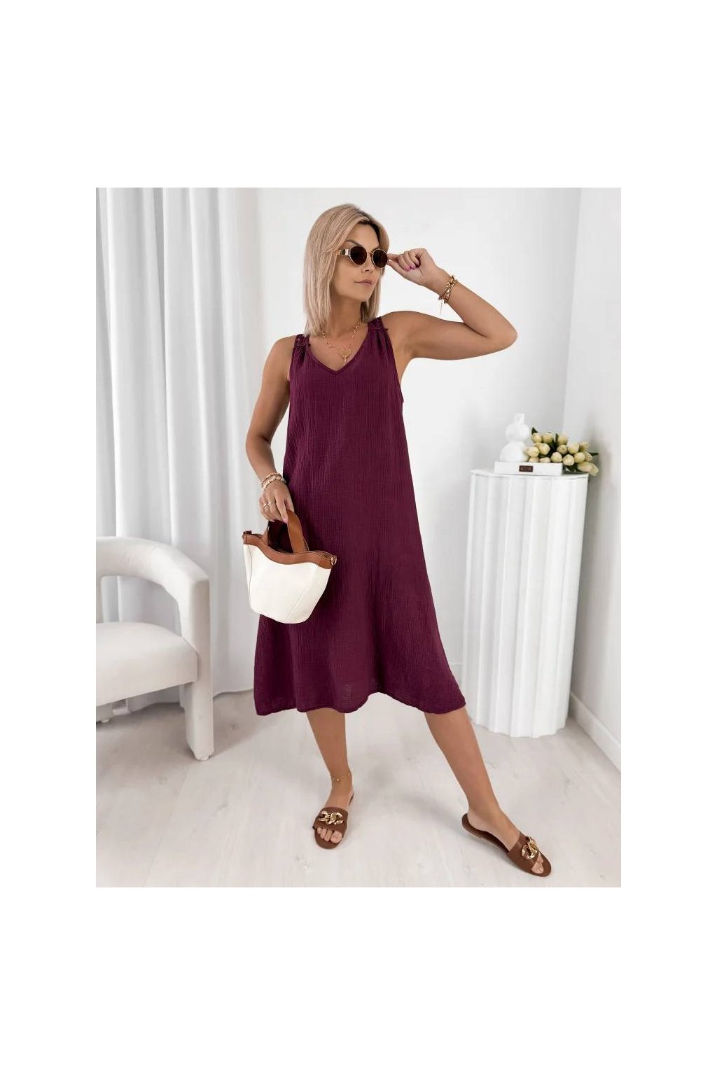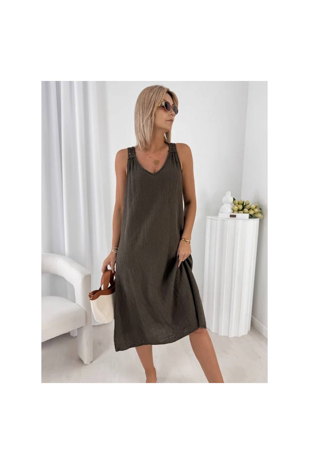 Stylové dámské midi šaty z přírodní bavlny jsou ideální volbou pro teplé dny.