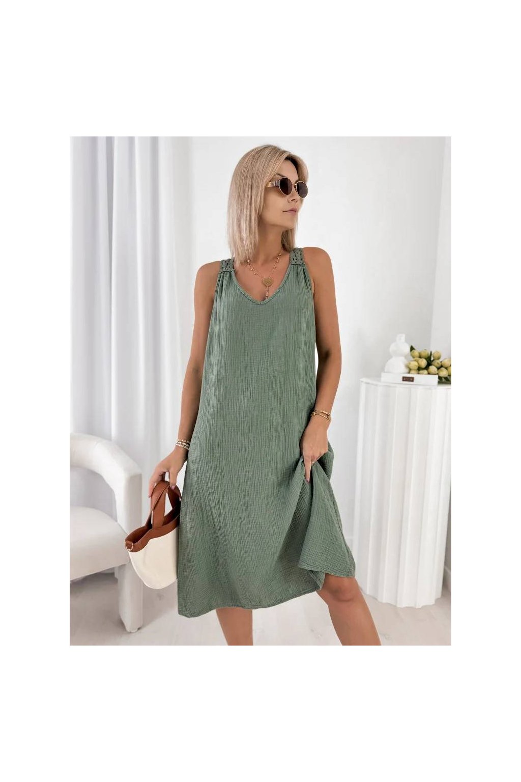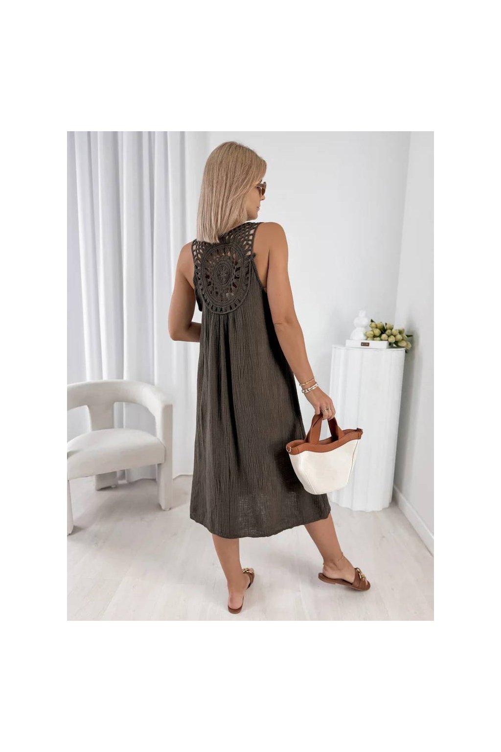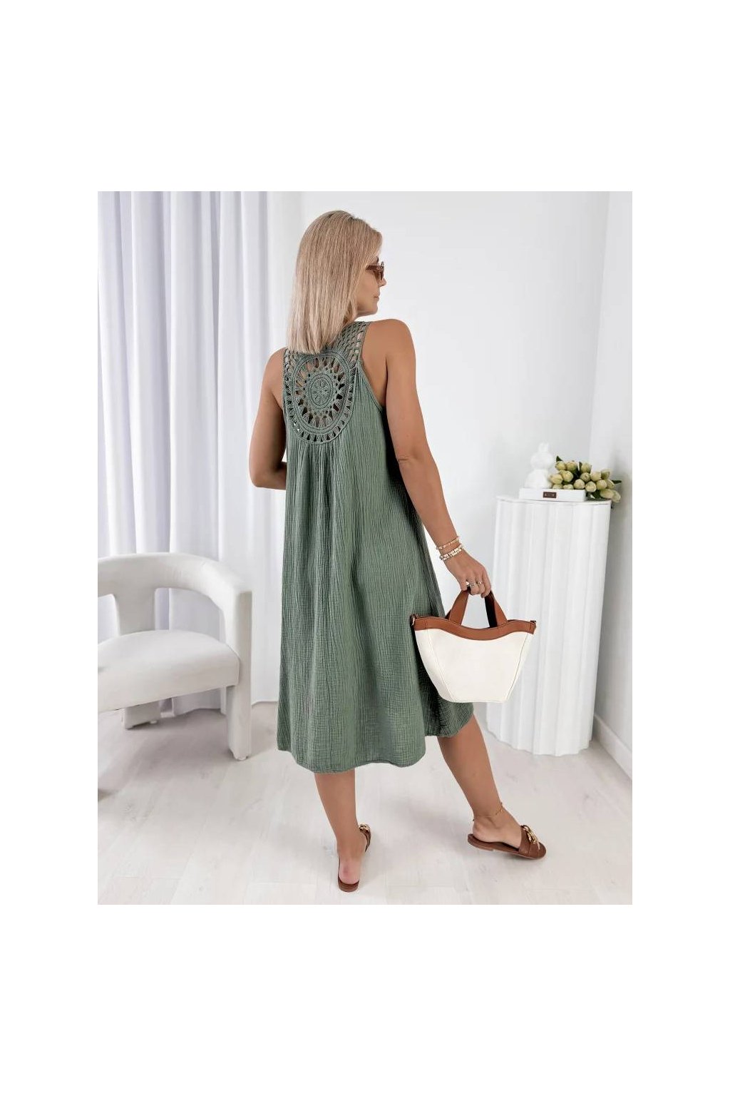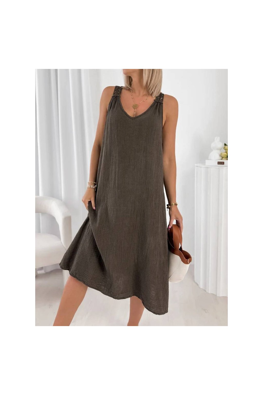 Stylové dámské midi šaty z přírodní bavlny jsou ideální volbou pro teplé dny.