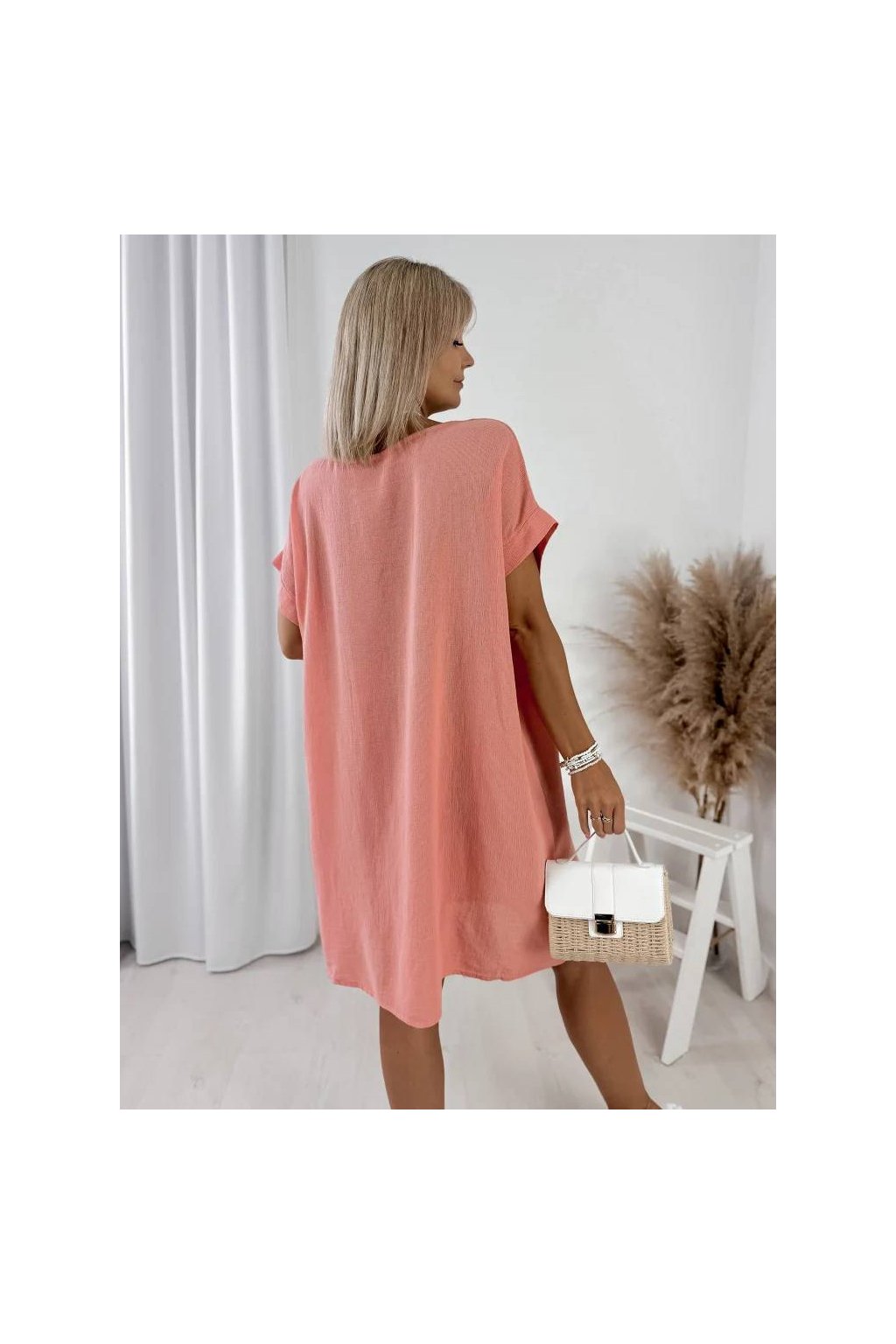 Tyto dámské volné šaty ze 100% bavlny jsou ideální volbou pro každodenní nošení během teplých dnů. Jemná výšivka s květinovým motivem dodává modelu romantický a svěží vzhled.