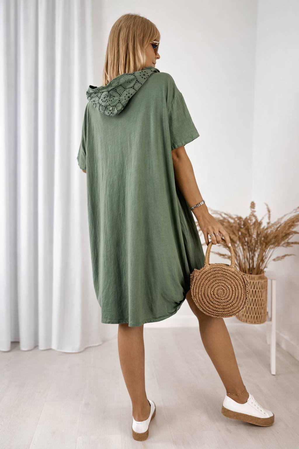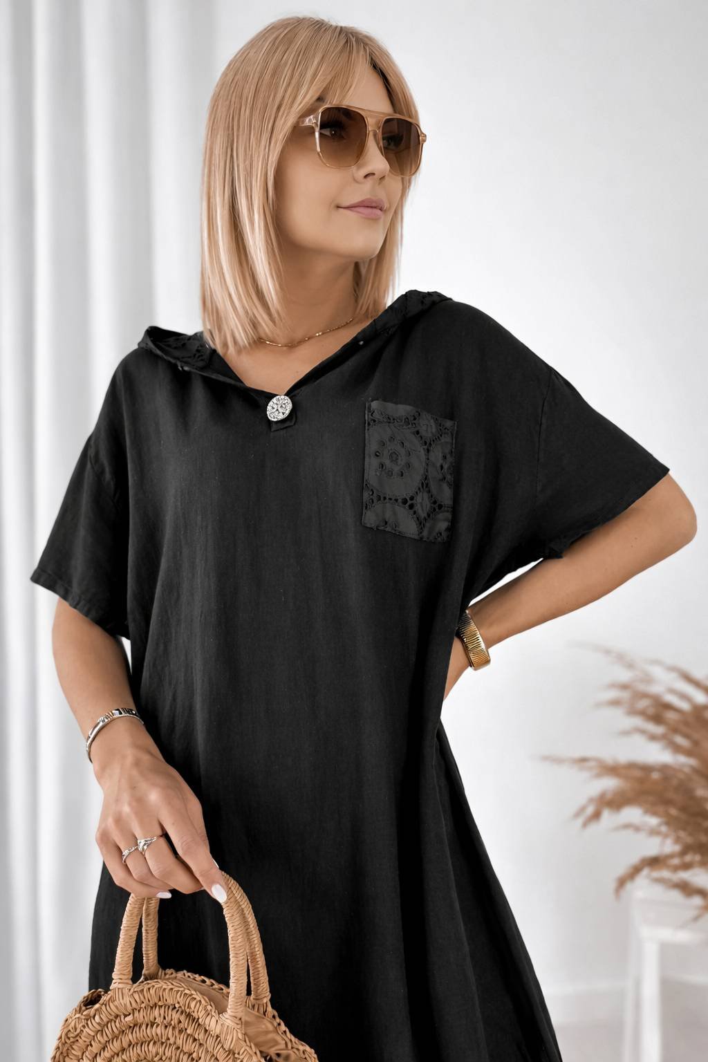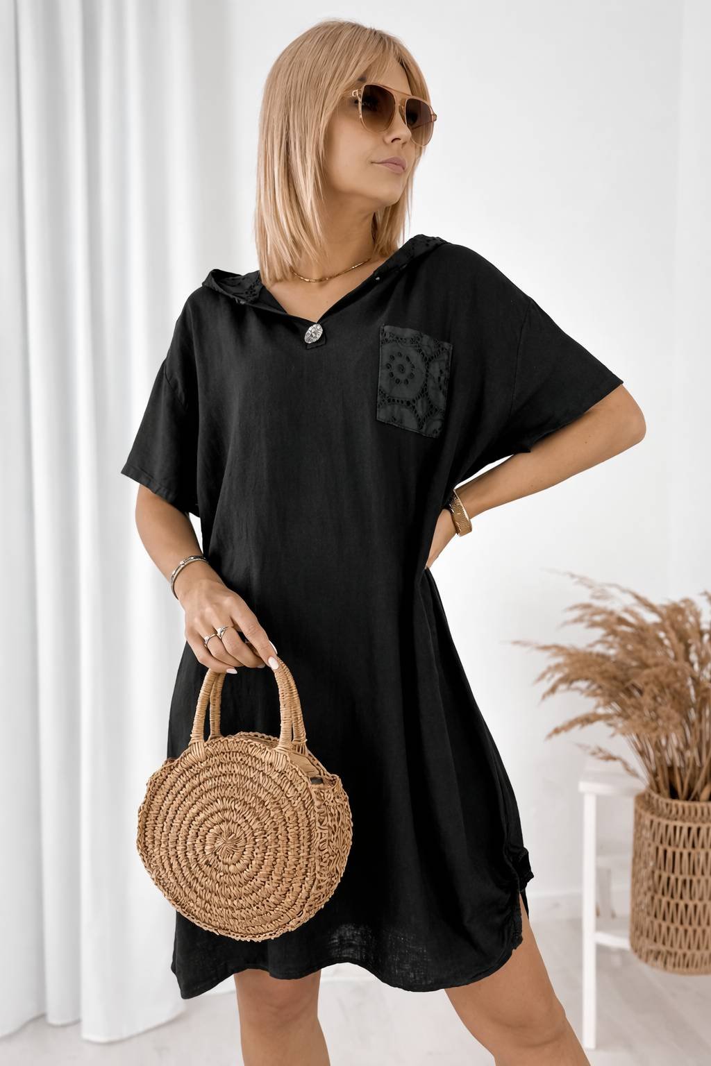 Vzdušné dámské šaty ideální na jarní a letní dny. Lehký lněno-bavlněný materiál zajišťuje maximální pohodlí i při vyšších teplotách. Volný, lehce áčkový střih krásně splývá na postavě a hodí se pro velikosti S–L.
