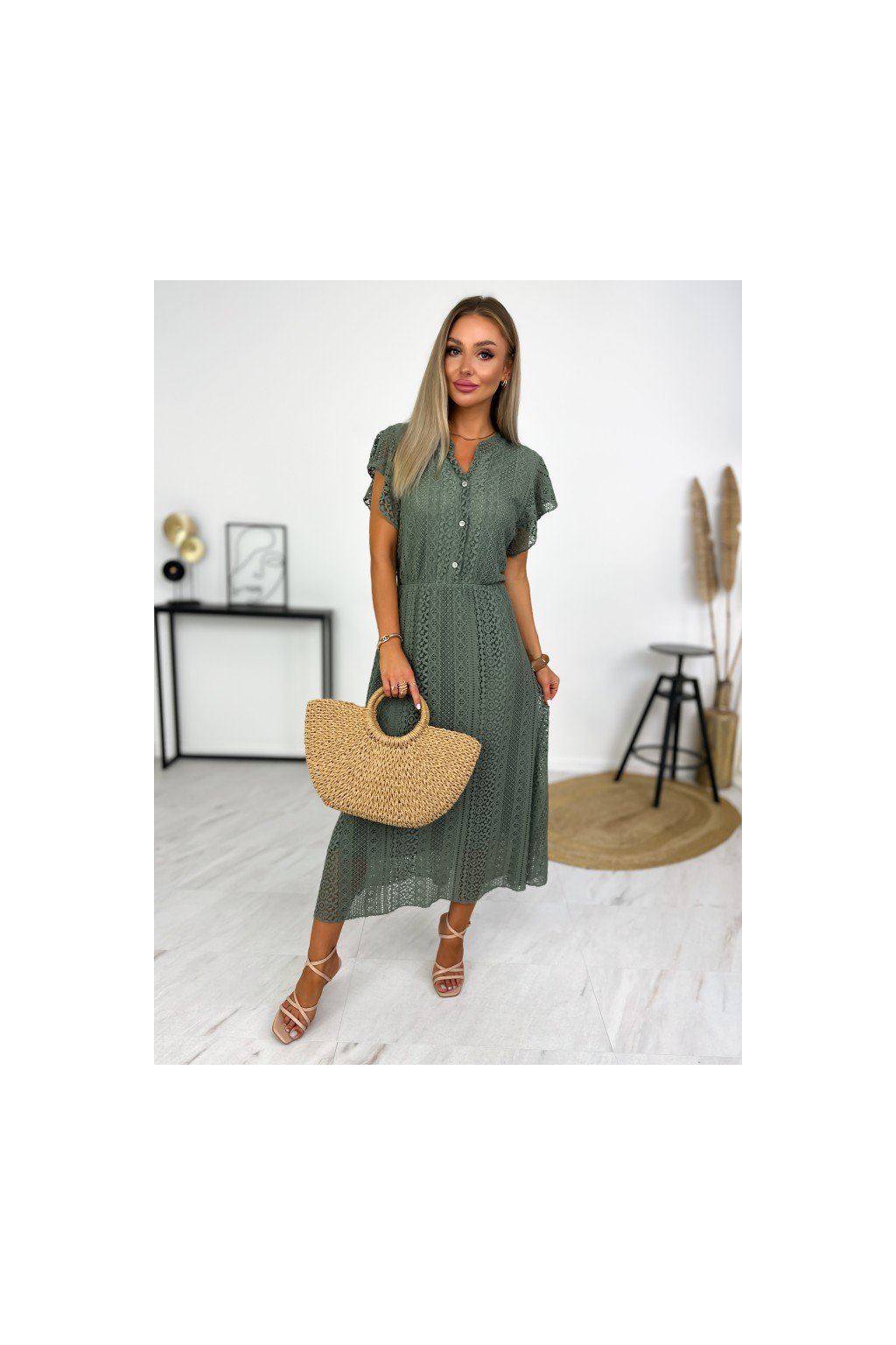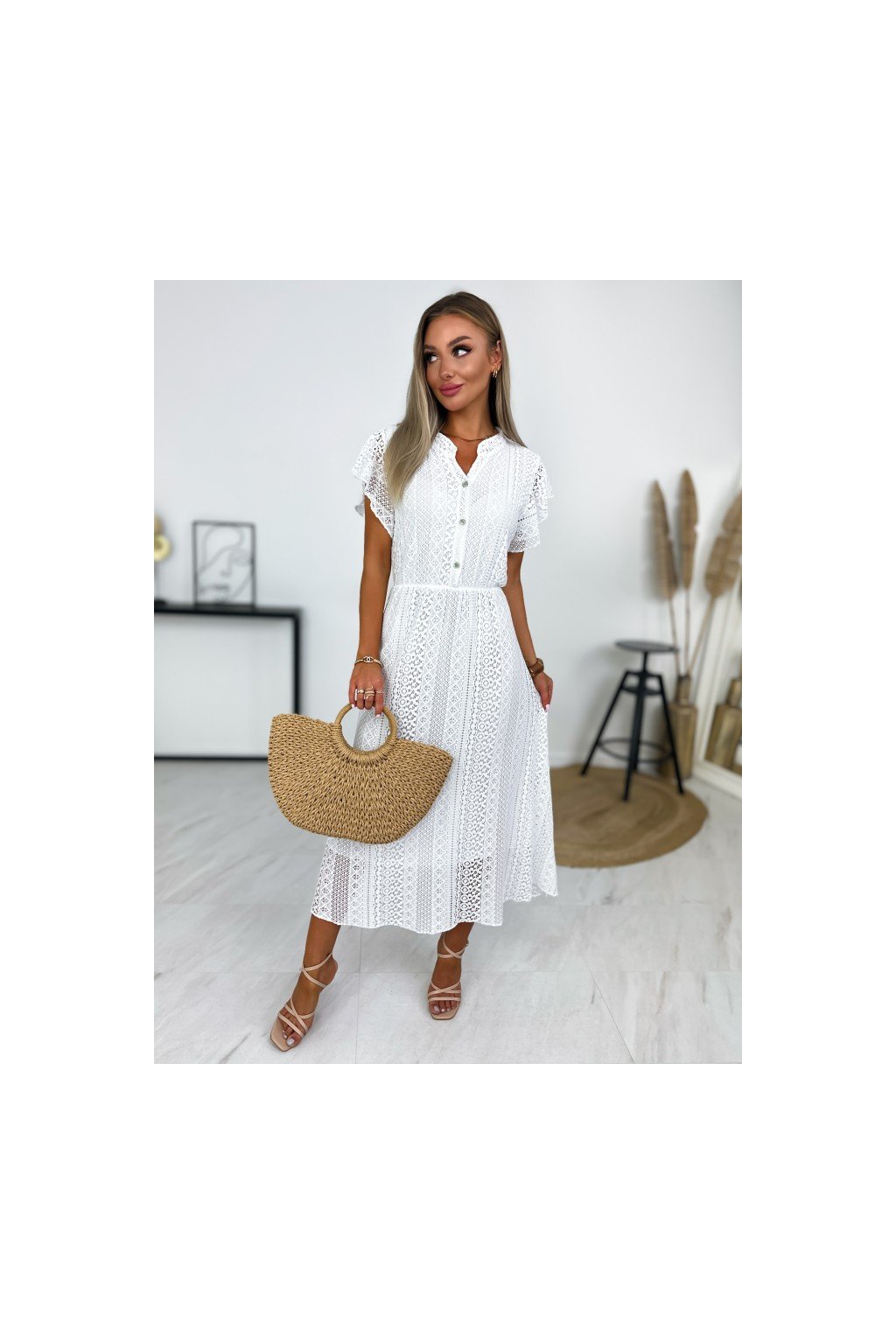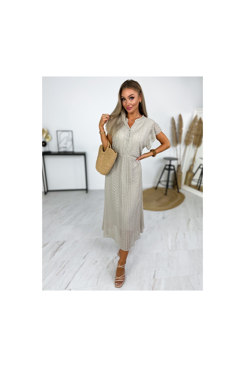 Nádherné krajkové midi šaty. Šaty mají elastický pas, díky čemuž vypadají skvěle na postavě. Horní část šatů se zapíná na knoflíky.Romantické šaty boho s podšívkou, kulatý výstřih, krátké rukávy. Jemné krajkové šaty jsou ztělesněním vytříbené a velice ženské módy, která se snadno nosí a skvěle vypadá. Navíc patří mezi top trendy letošní sezóny, takže pokud jste se s nimi ještě neseznámili, je nejvyšší čas.