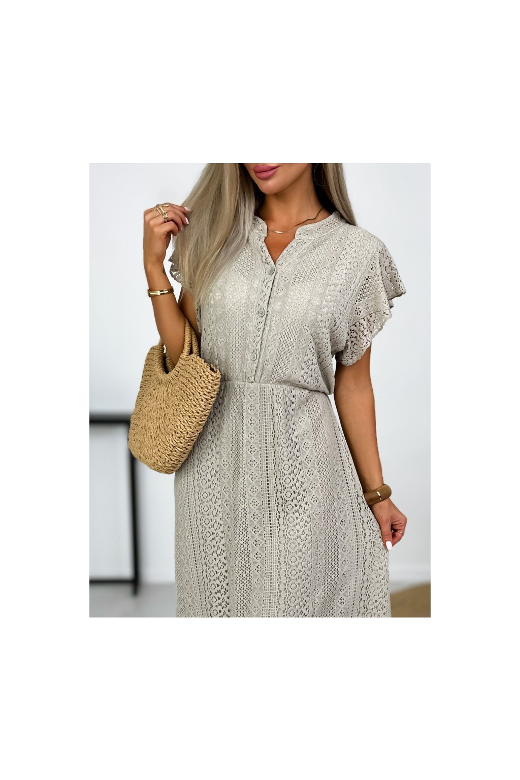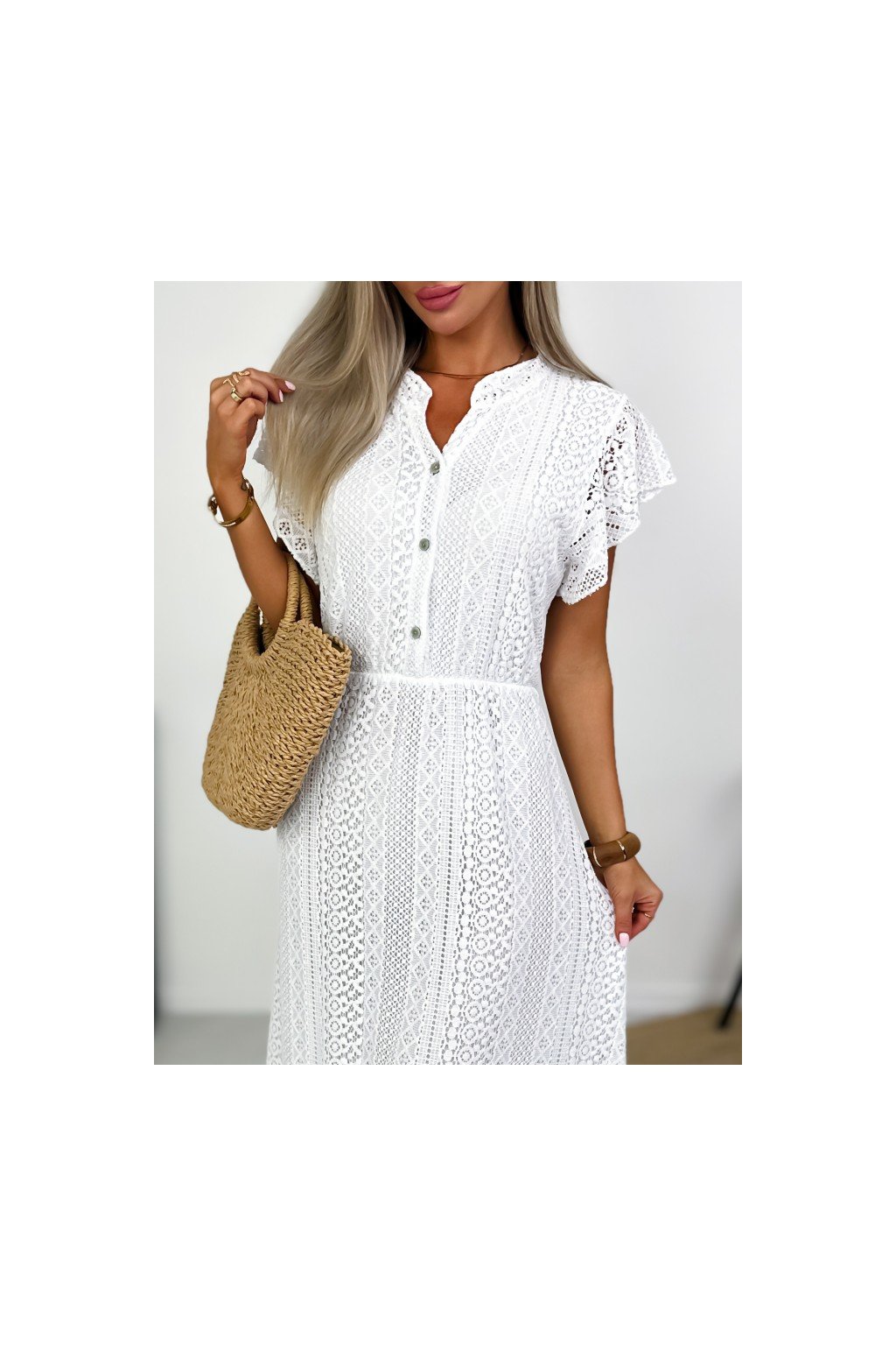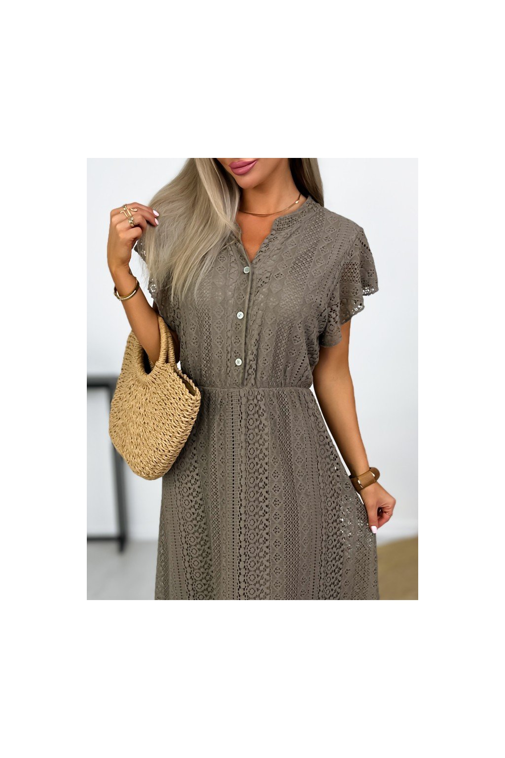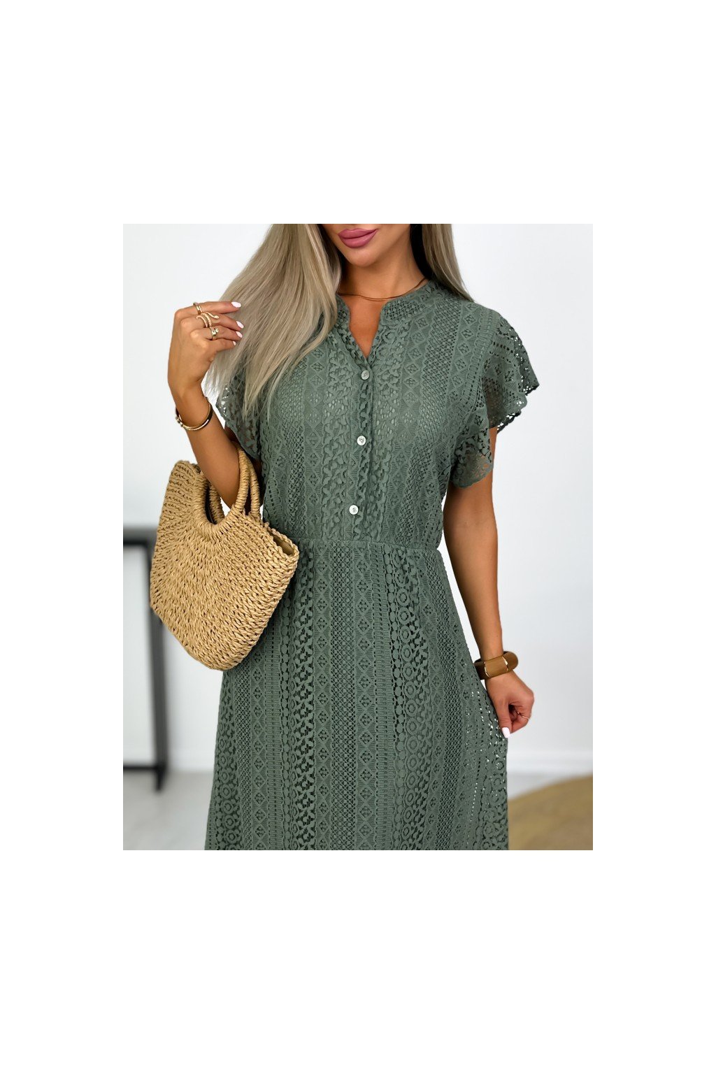 Nádherné krajkové midi šaty. Šaty mají elastický pas, díky čemuž vypadají skvěle na postavě. Horní část šatů se zapíná na knoflíky.Romantické šaty boho s podšívkou, kulatý výstřih, krátké rukávy. Jemné krajkové šaty jsou ztělesněním vytříbené a velice ženské módy, která se snadno nosí a skvěle vypadá. Navíc patří mezi top trendy letošní sezóny, takže pokud jste se s nimi ještě neseznámili, je nejvyšší čas.