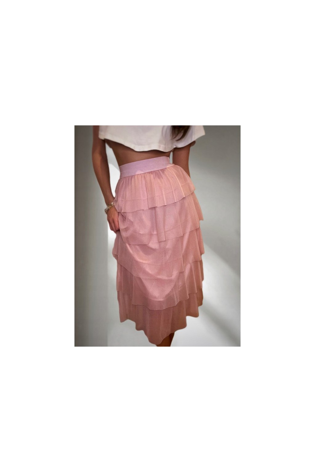 Lehký a vzdušný tyl krásně splývá při chůzi a dodává siluetě jemnost a pohyb. Elastický pas pohodlně drží na místě a zároveň zvýrazňuje pas. Všitá spodní sukně zajišťuje komfort při nošení a neprůhlednost.