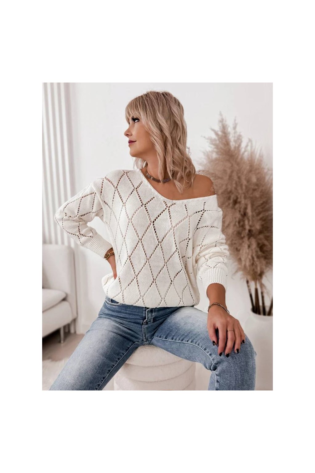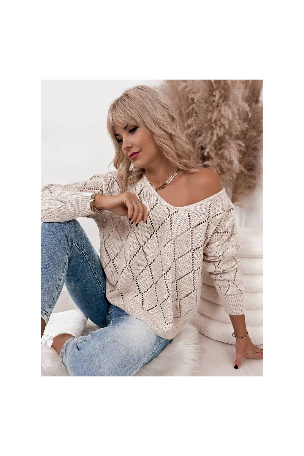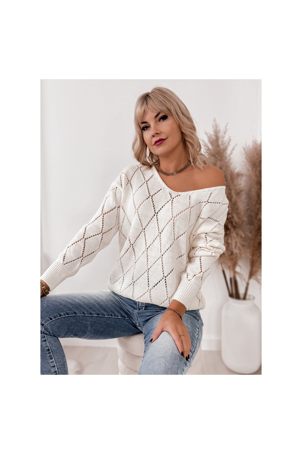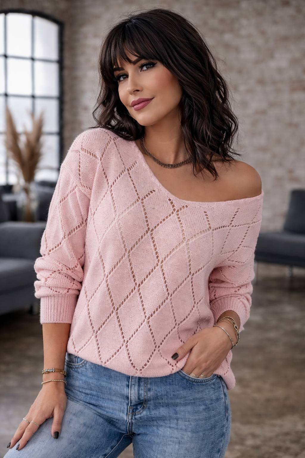 Dámský pletený svetr s jemným vzorem je stylovým a pohodlným kouskem pro každodenní nošení. Lehký a příjemný materiál zajišťuje komfort po celý den, zatímco volnější střih krásně přizpůsobí postavu. Výstřih do V působí elegantně a opticky prodlužuje siluetu. Svetr je ideální k džínům i elegantním kalhotám a snadno vytvoří nadčasový, ženský outfit. Vyrobeno v Itálii.