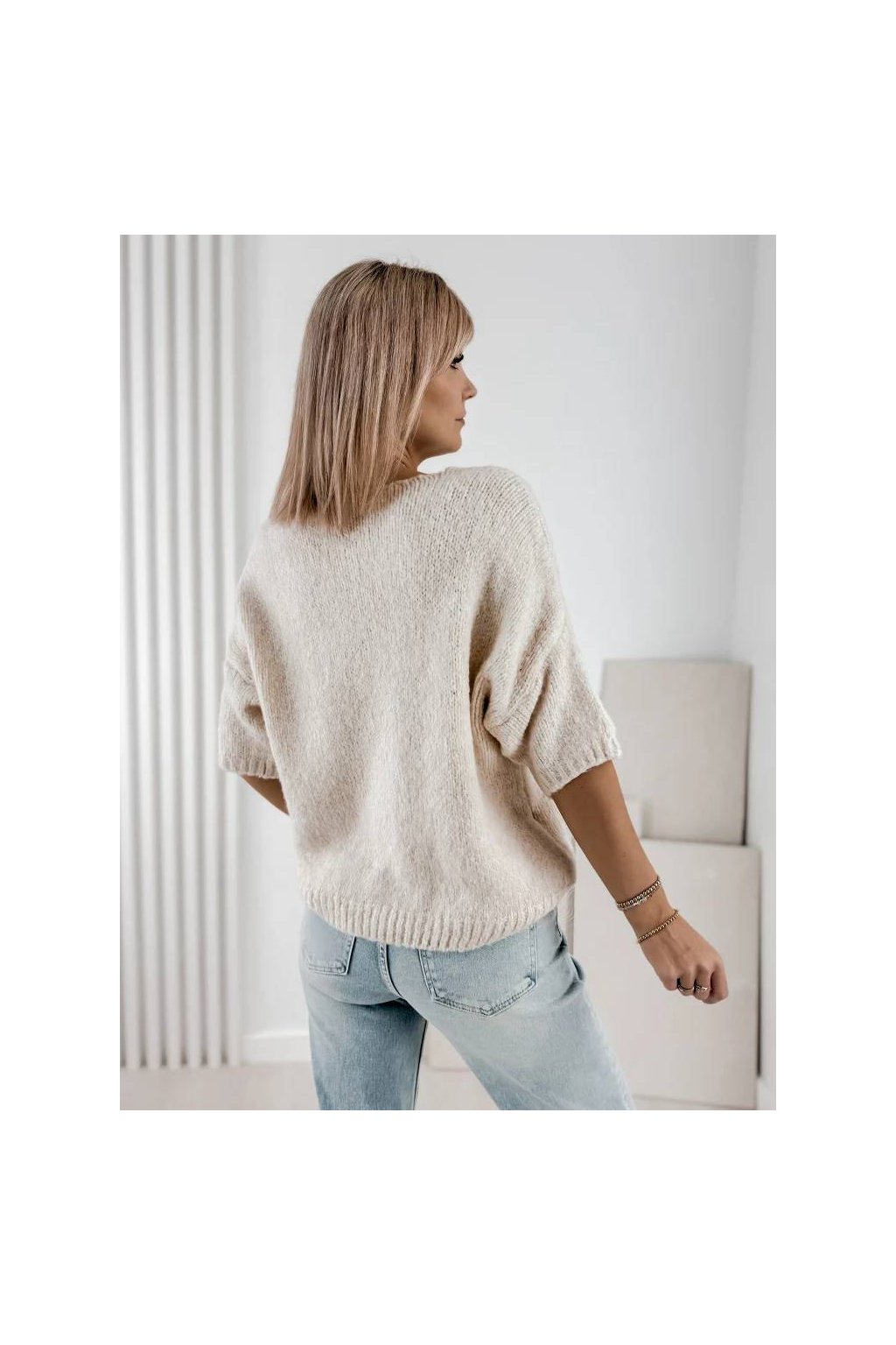 Svetr je vyroben z elastického, příjemného materiálu, který se dokonale přizpůsobí postavě a poskytuje maximální komfort při nošení. Volnější střih umožňuje snadné kombinování – hodí se k džínům, sukním i elegantním kalhotám.